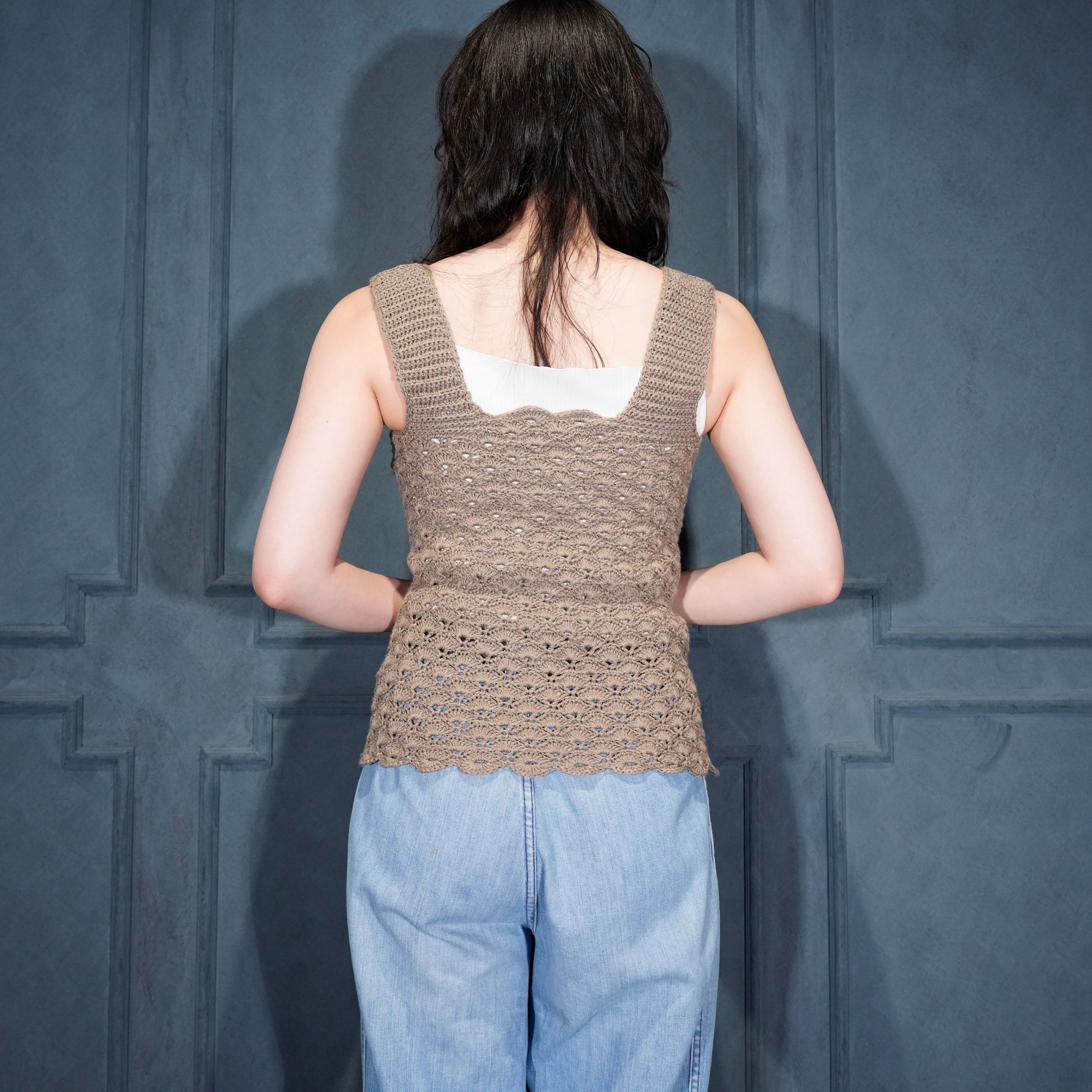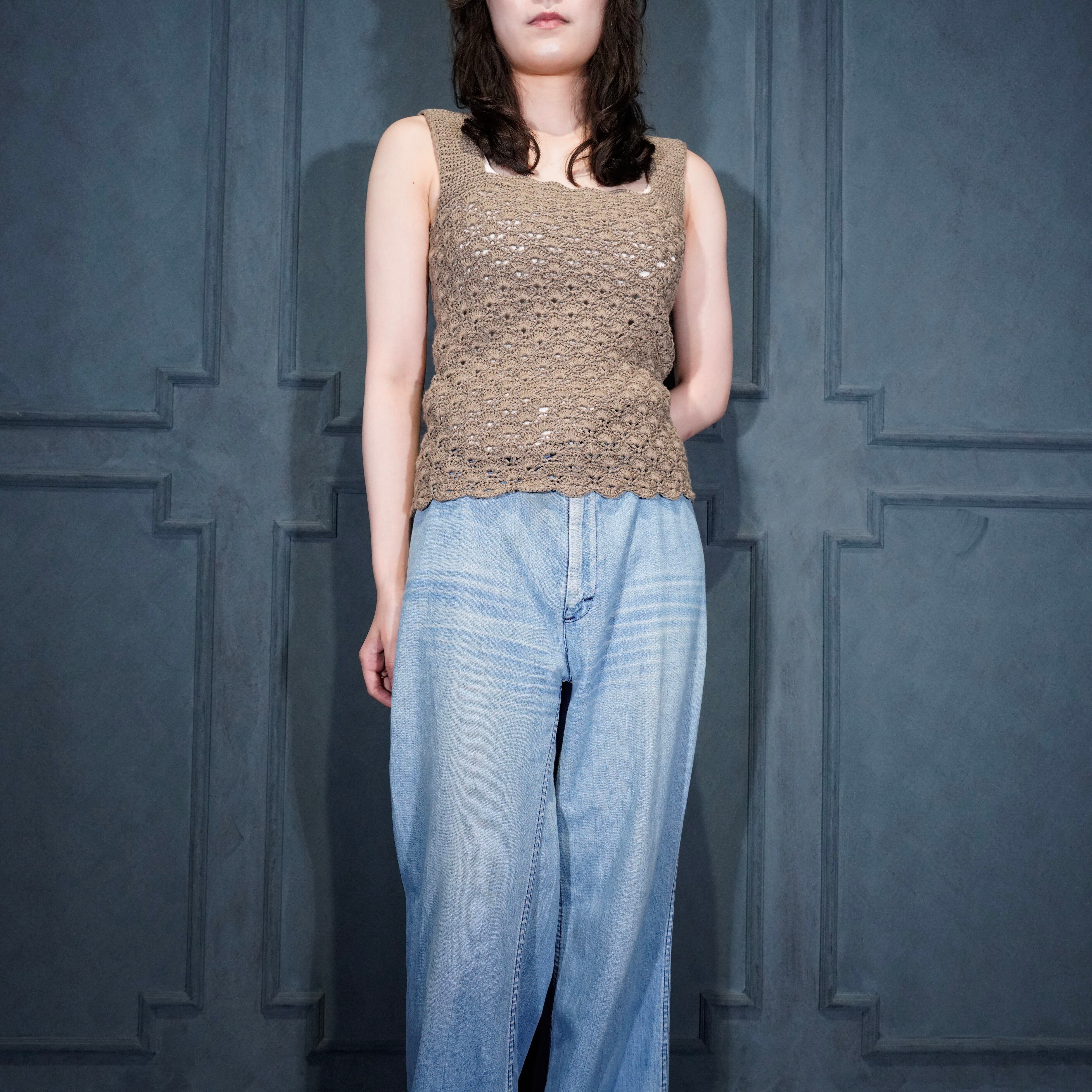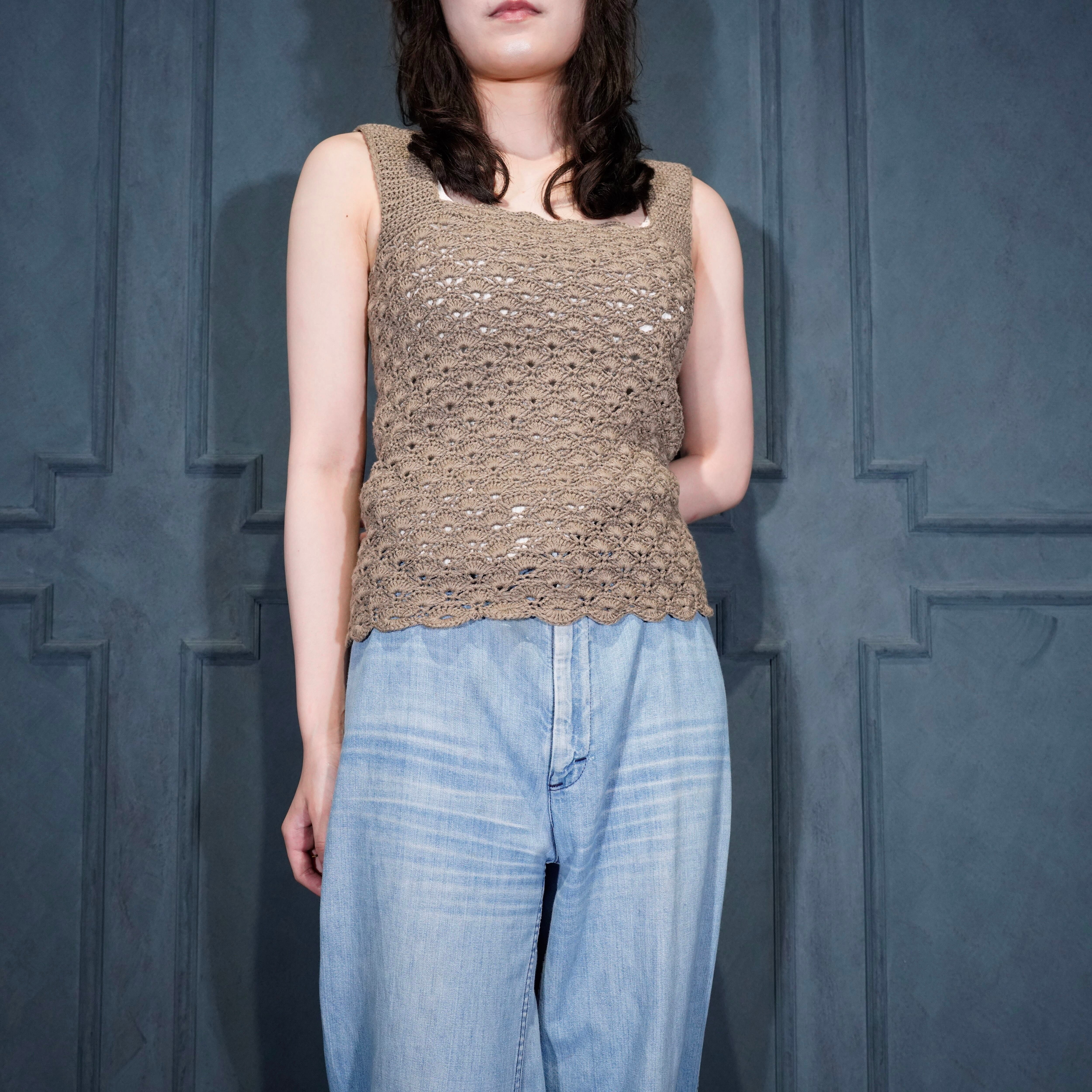 USA VINTAGE SCALLOPED DESIGN SUMMER KNIT CAMISOLE/アメリカ古着スカラップデザインサマーニットキャミソール(ノースリーブ/タンクトップ)
