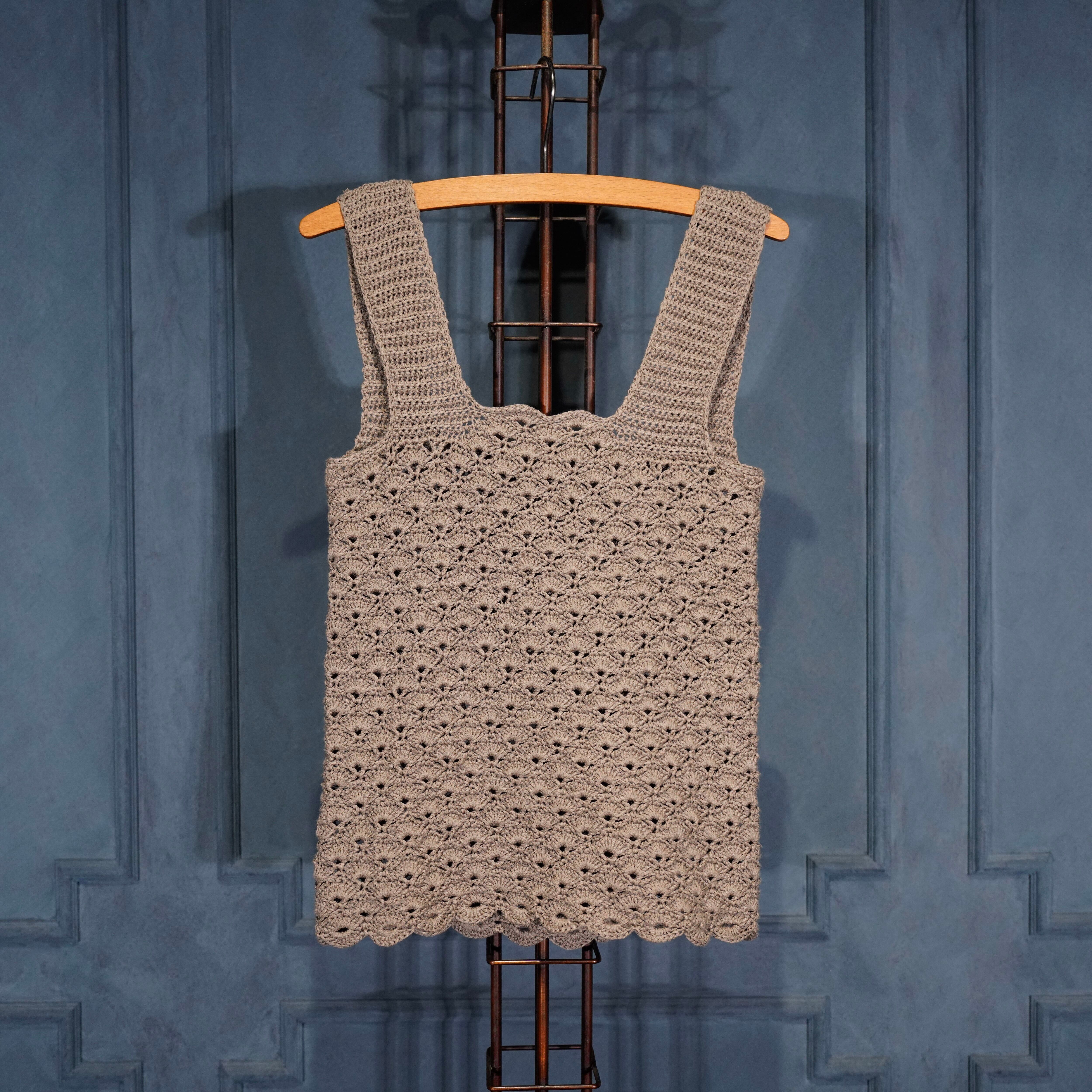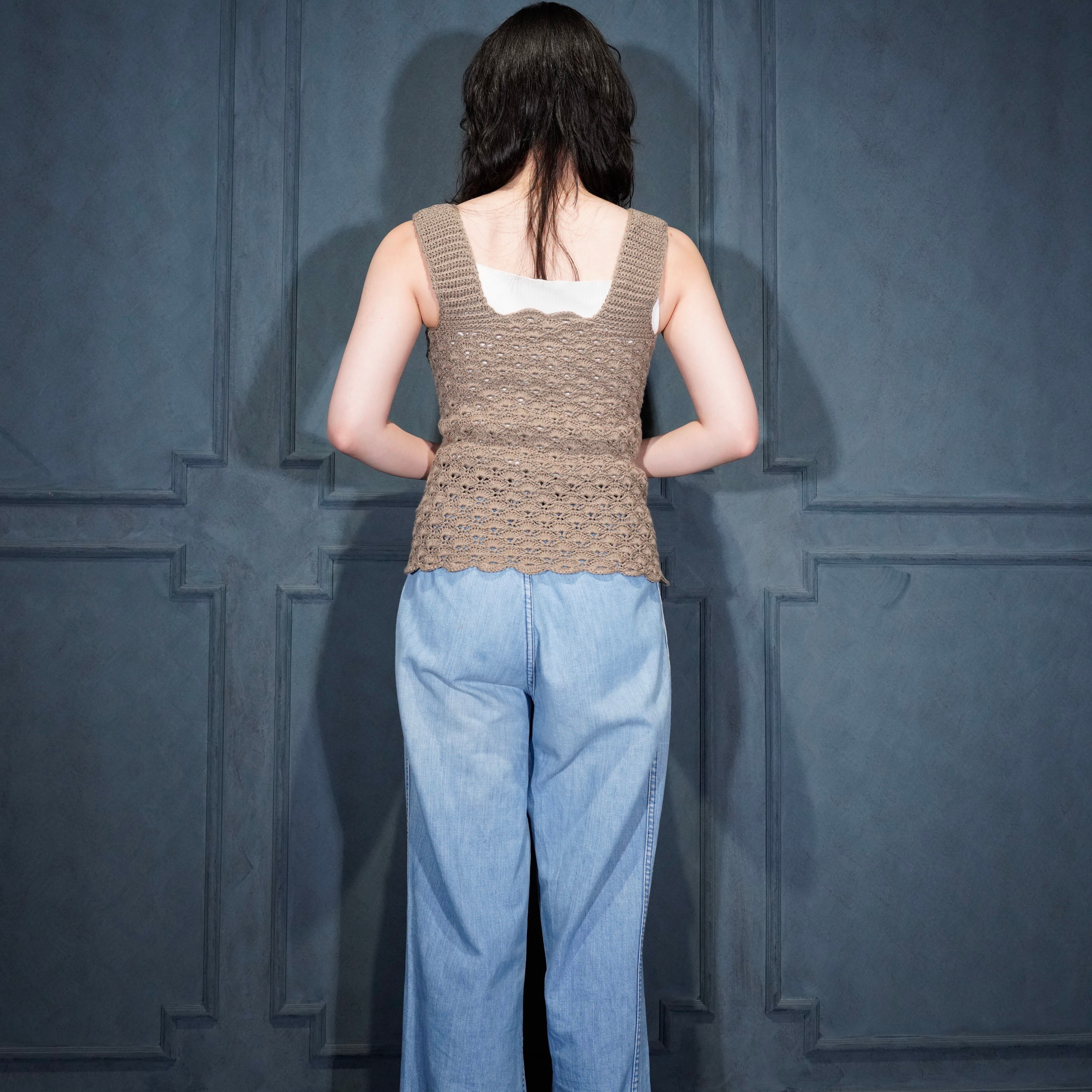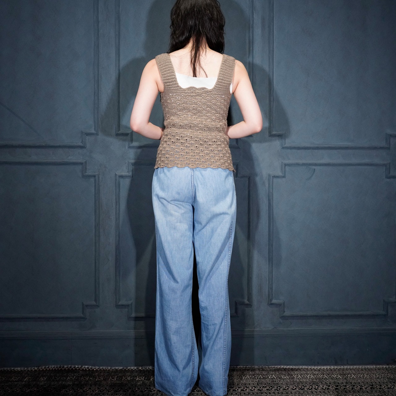 USA VINTAGE SCALLOPED DESIGN SUMMER KNIT CAMISOLE/アメリカ古着スカラップデザインサマーニットキャミソール(ノースリーブ/タンクトップ)