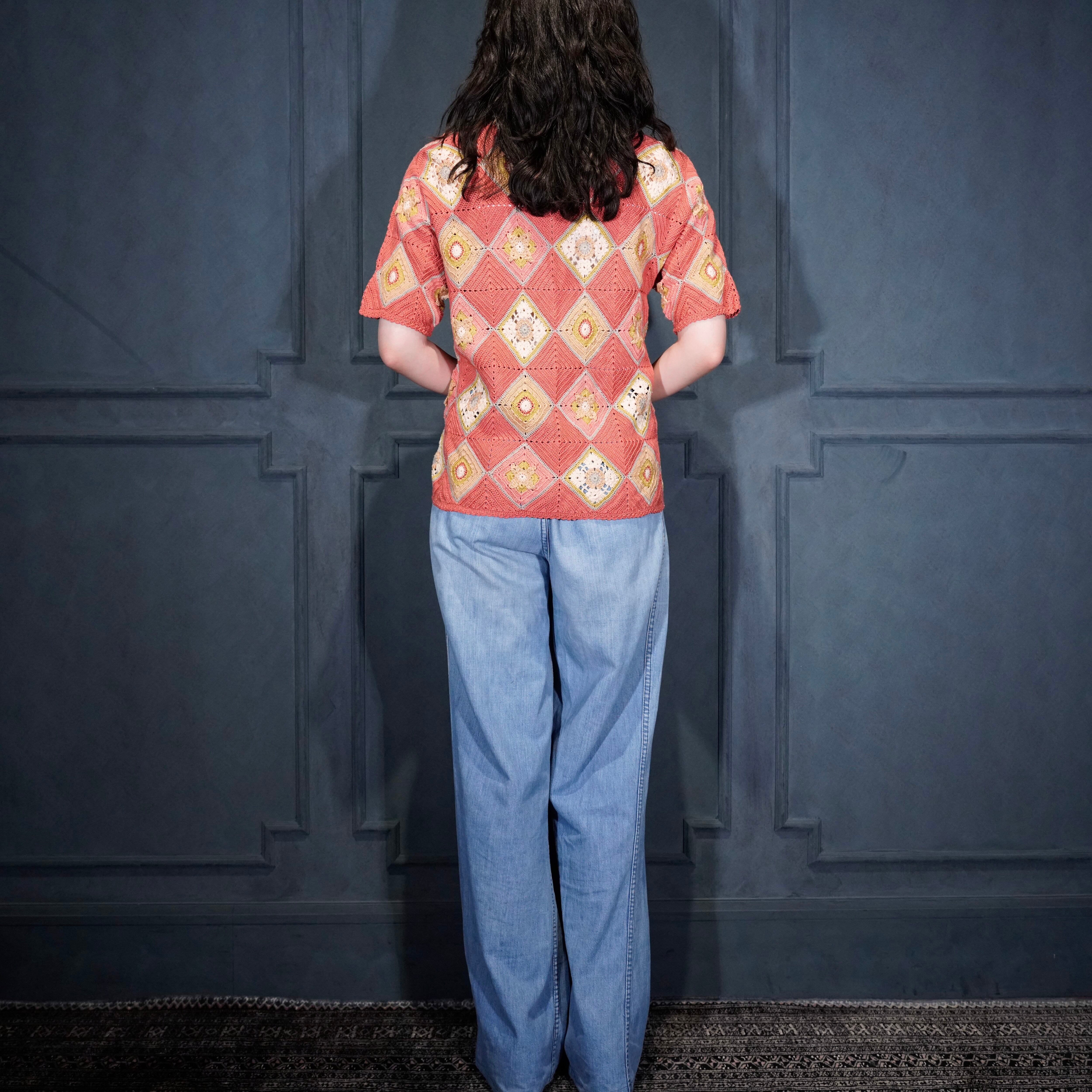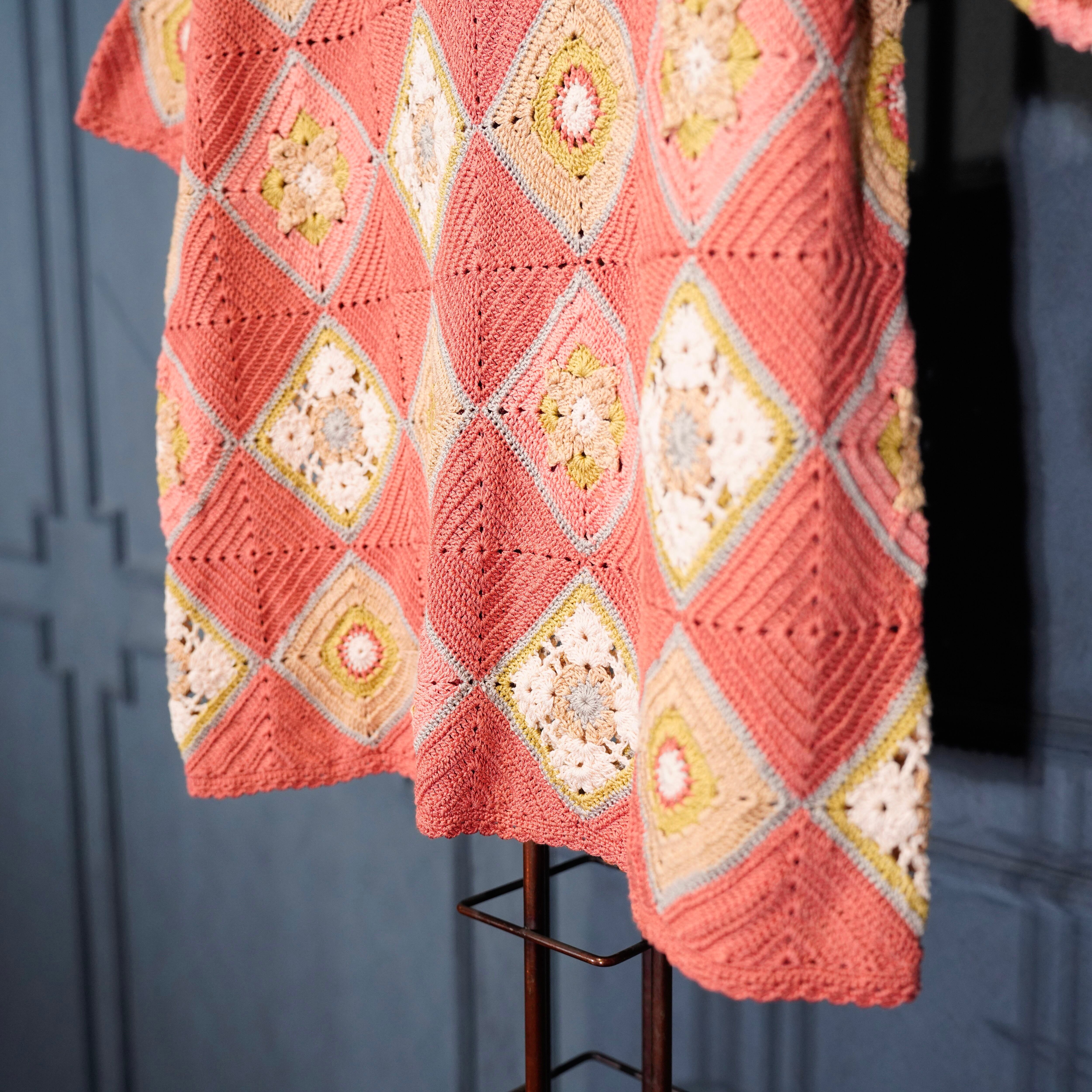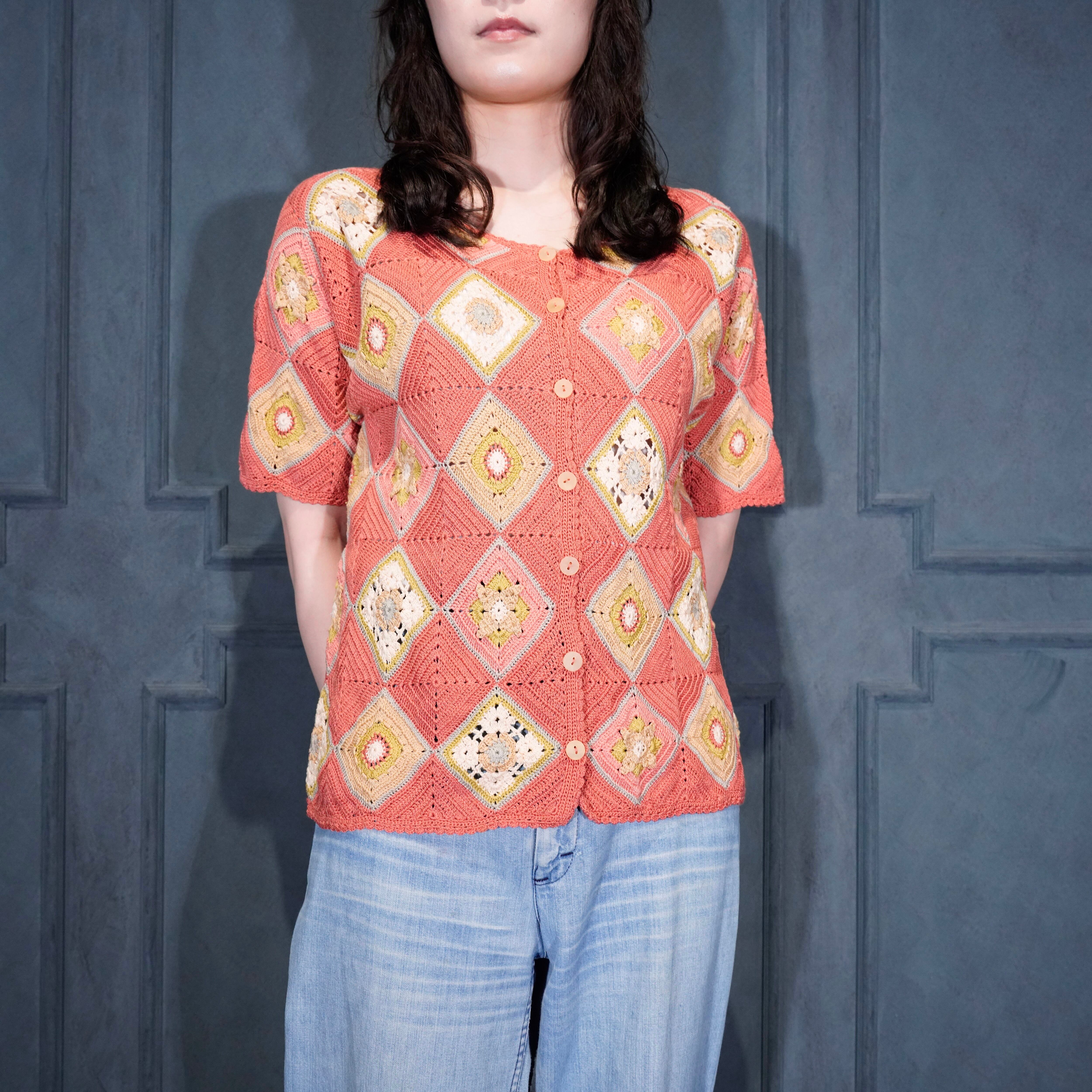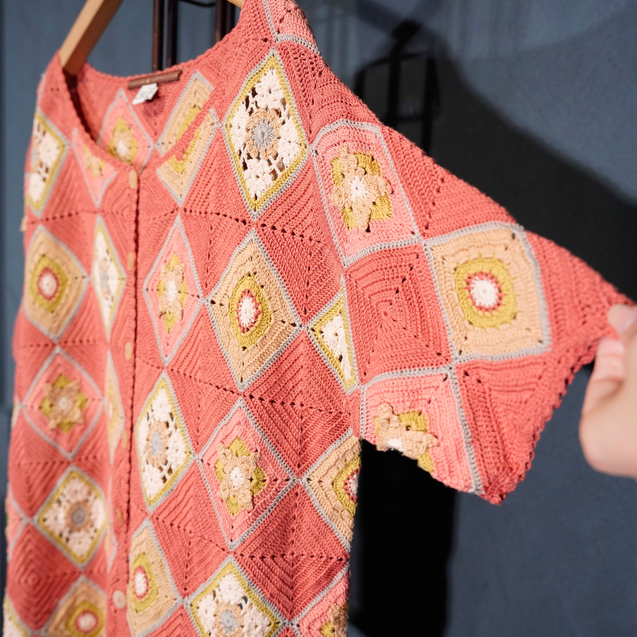 USA VINTAGE PERUVIAN CONNECTION EMBROIDERY WOVEN DESIGN PIMA COTTON SUMMER KNIT CARDIGAN/アメリカ古着織刺繍デザインピマコットンサマーニットカーディガン