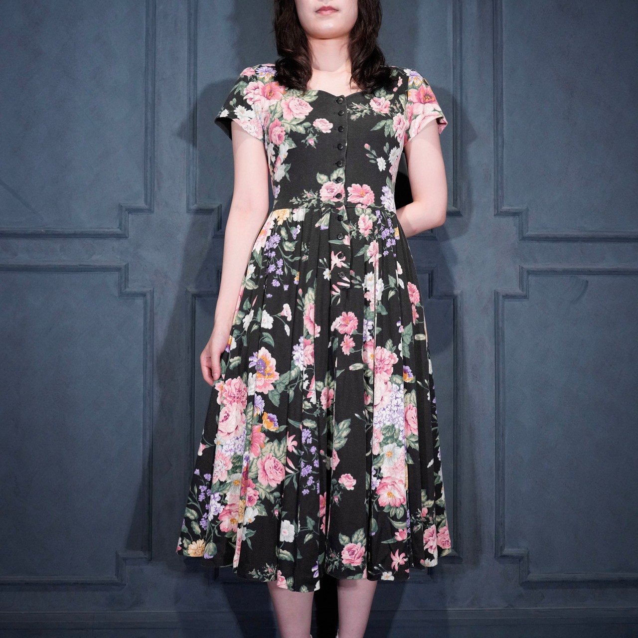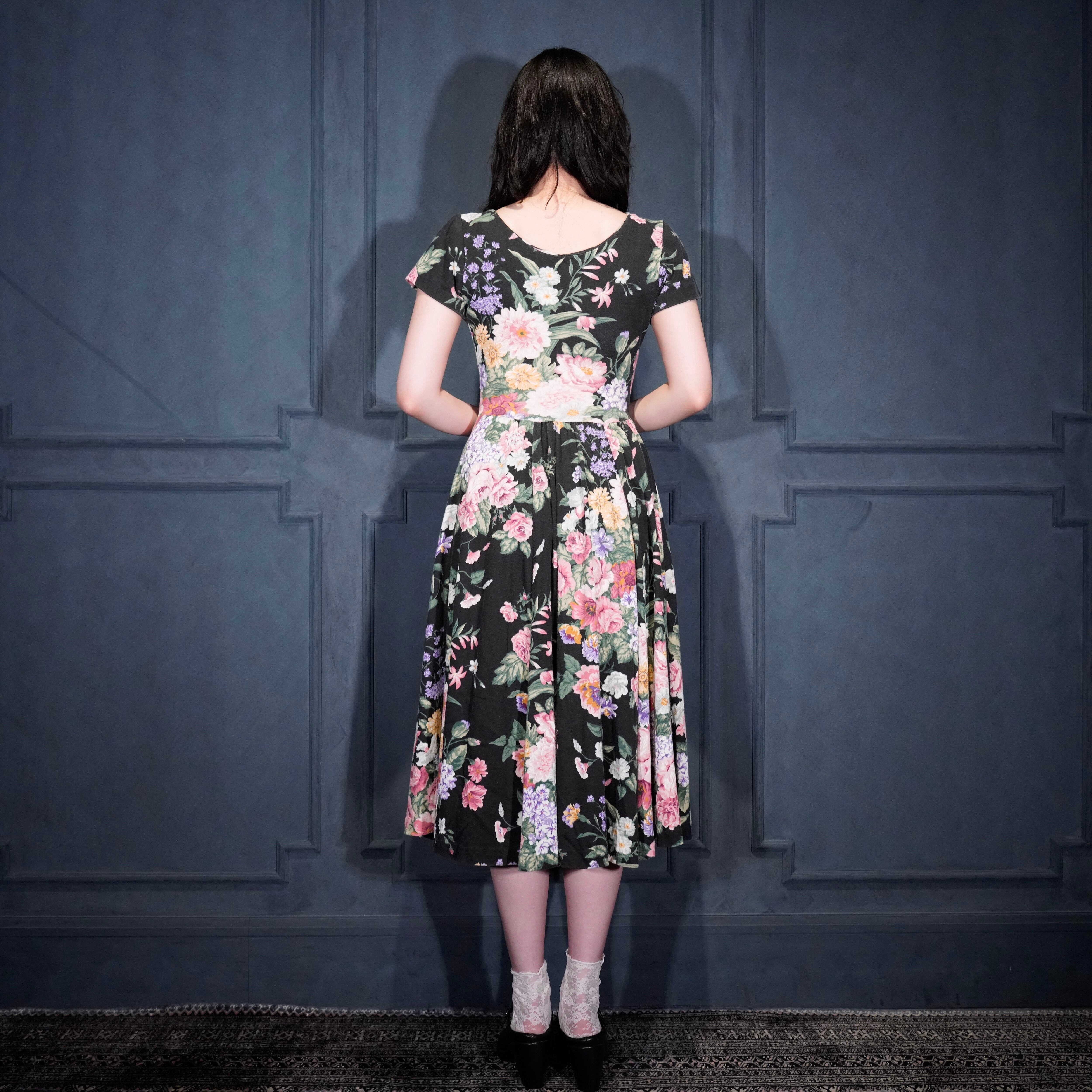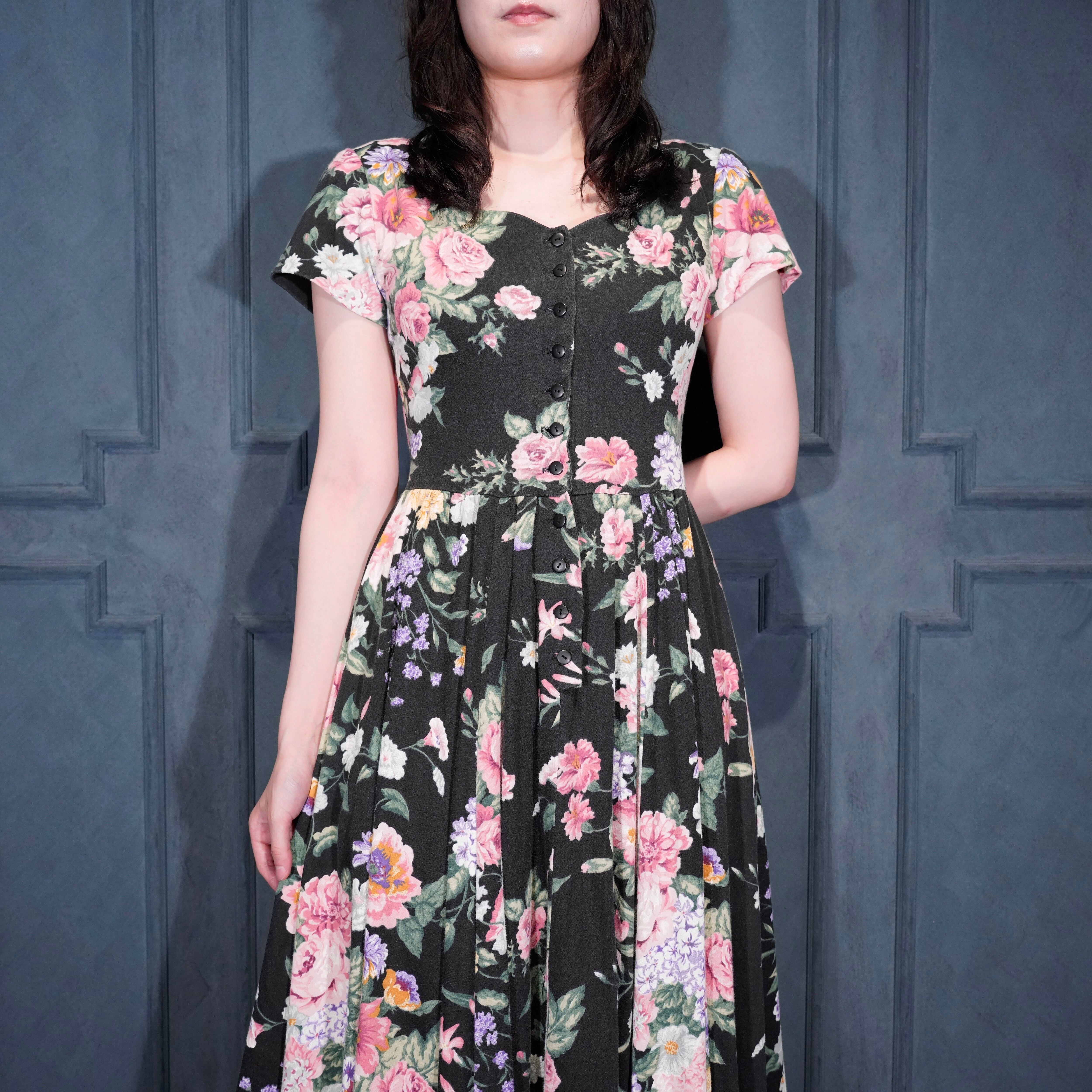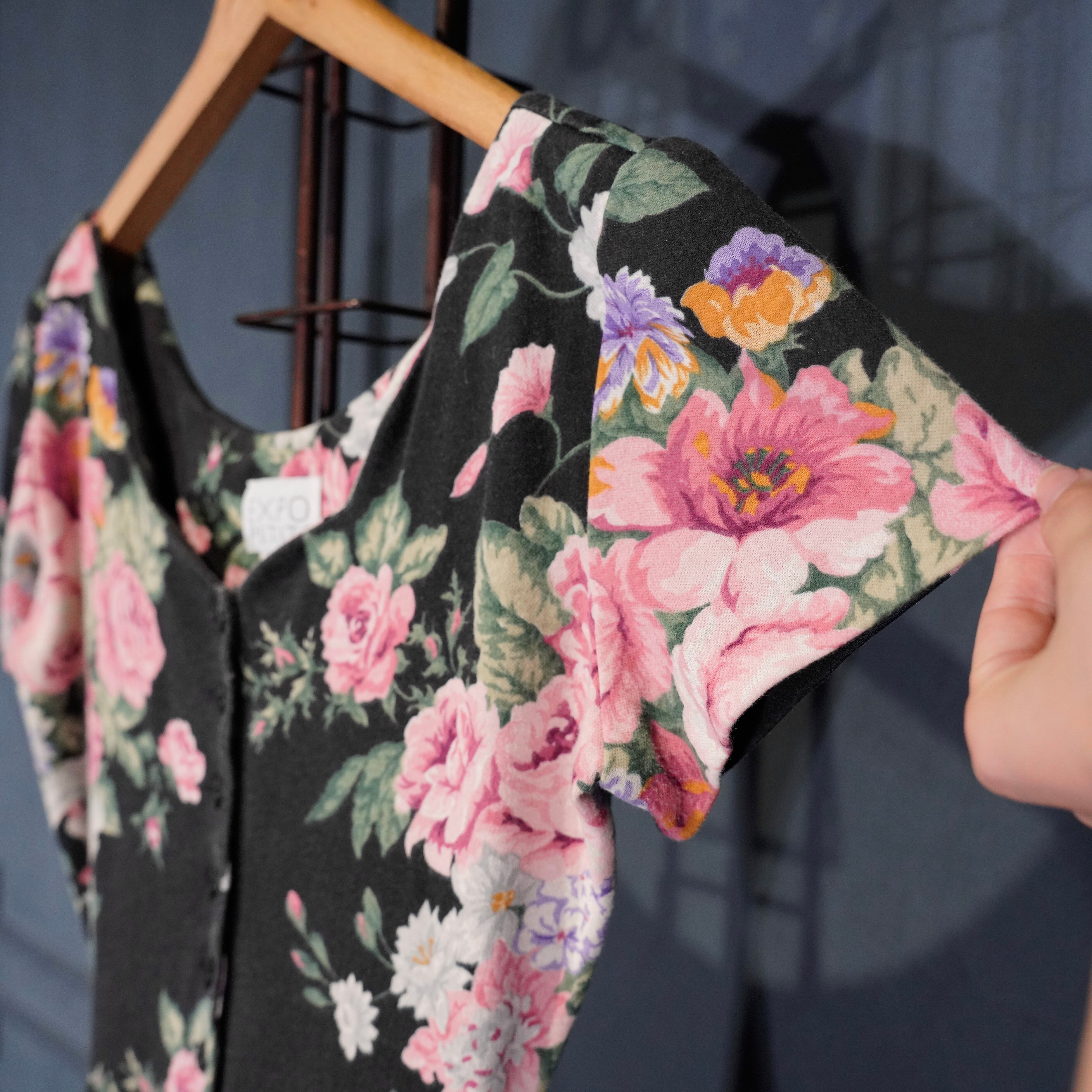 USA VINTAGE EXPO PETITE FLOWER PATTERNED HALF SLEEVE DESIGN ONE PIECE/アメリカ古着お花柄半袖デザインワンピース