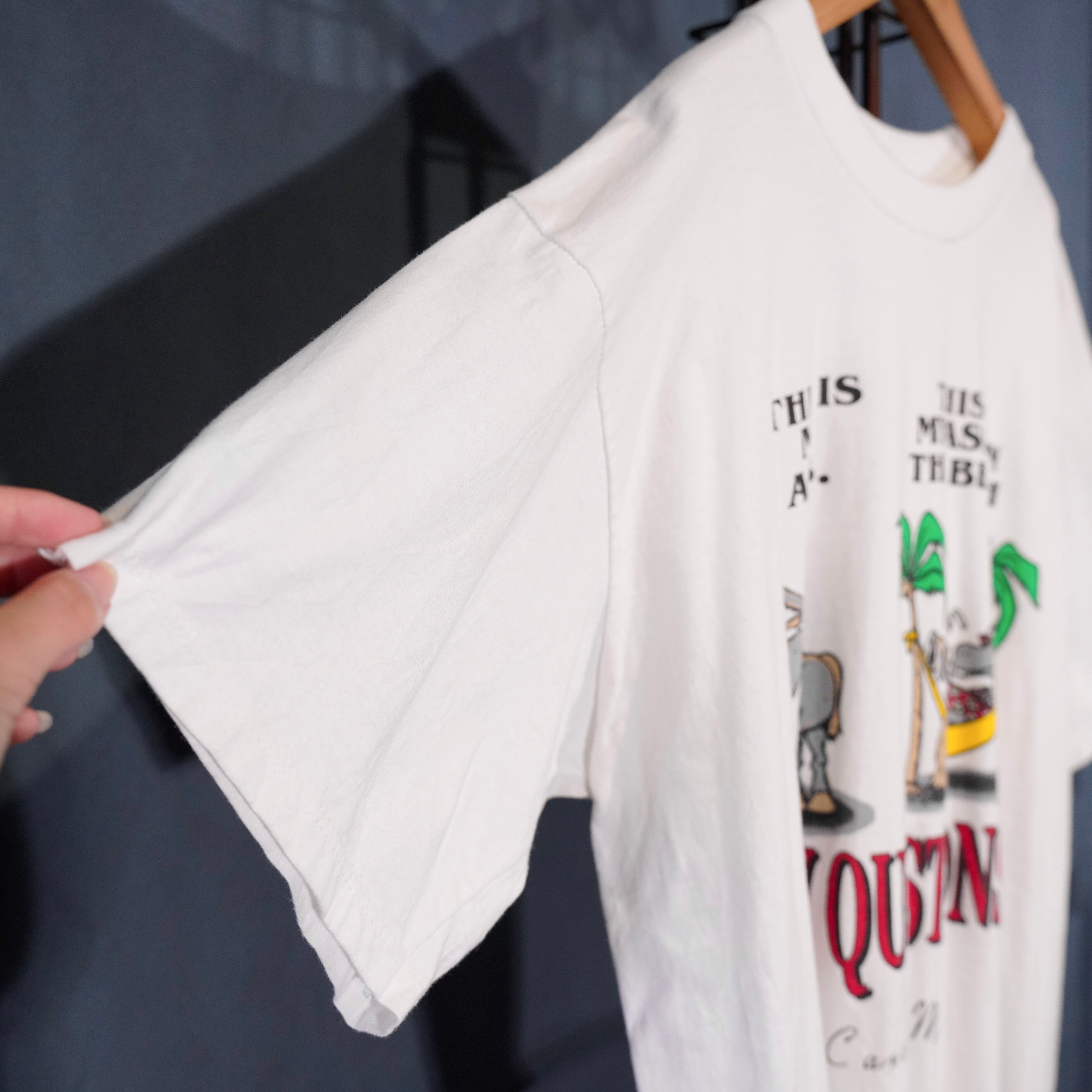 USA VINTAGE CANCUN CUZUMEL REEF ANY QUESTIONS? SLANG PRINT DESIGN T SHIRT/アメリカ古着スラングプリントデザインTシャツ