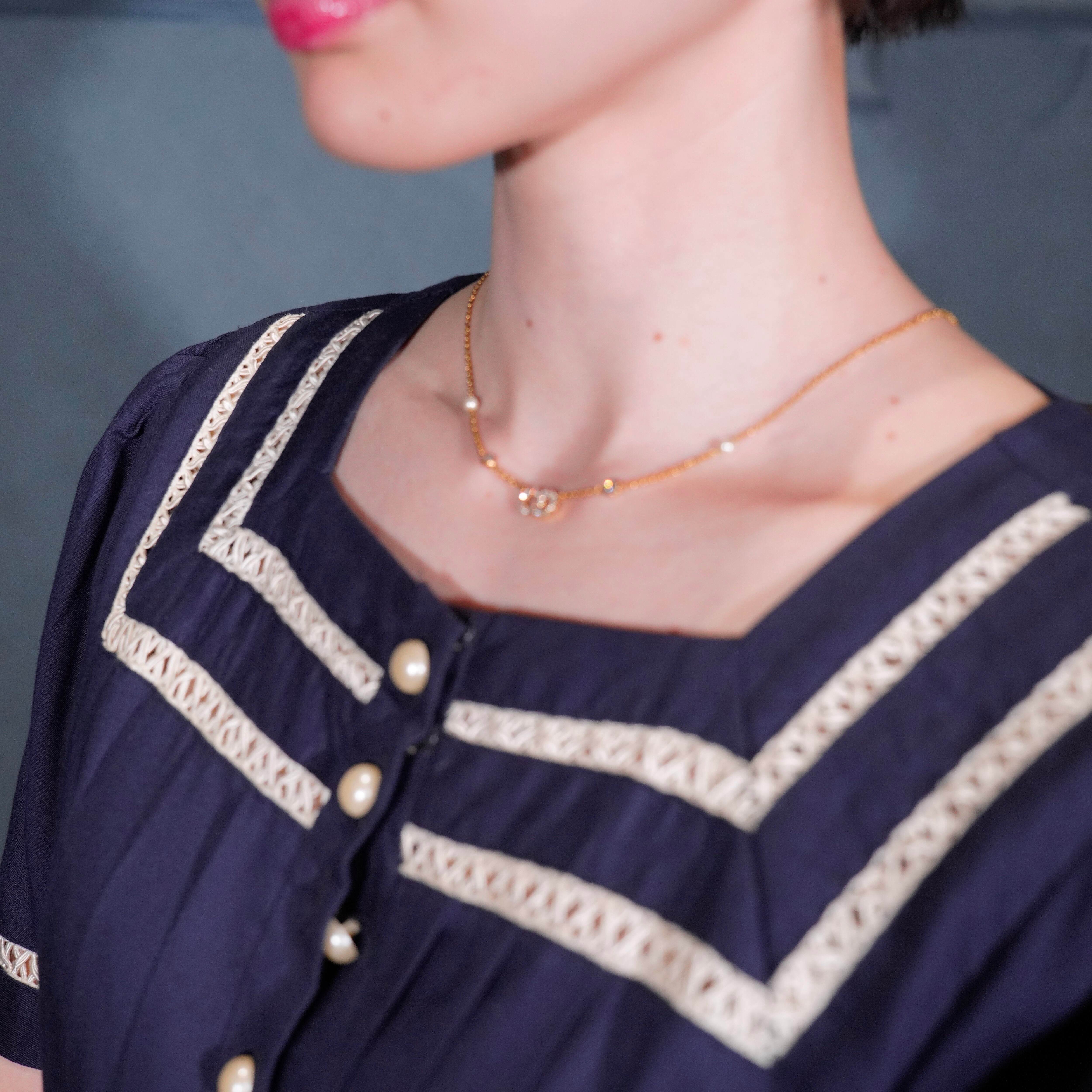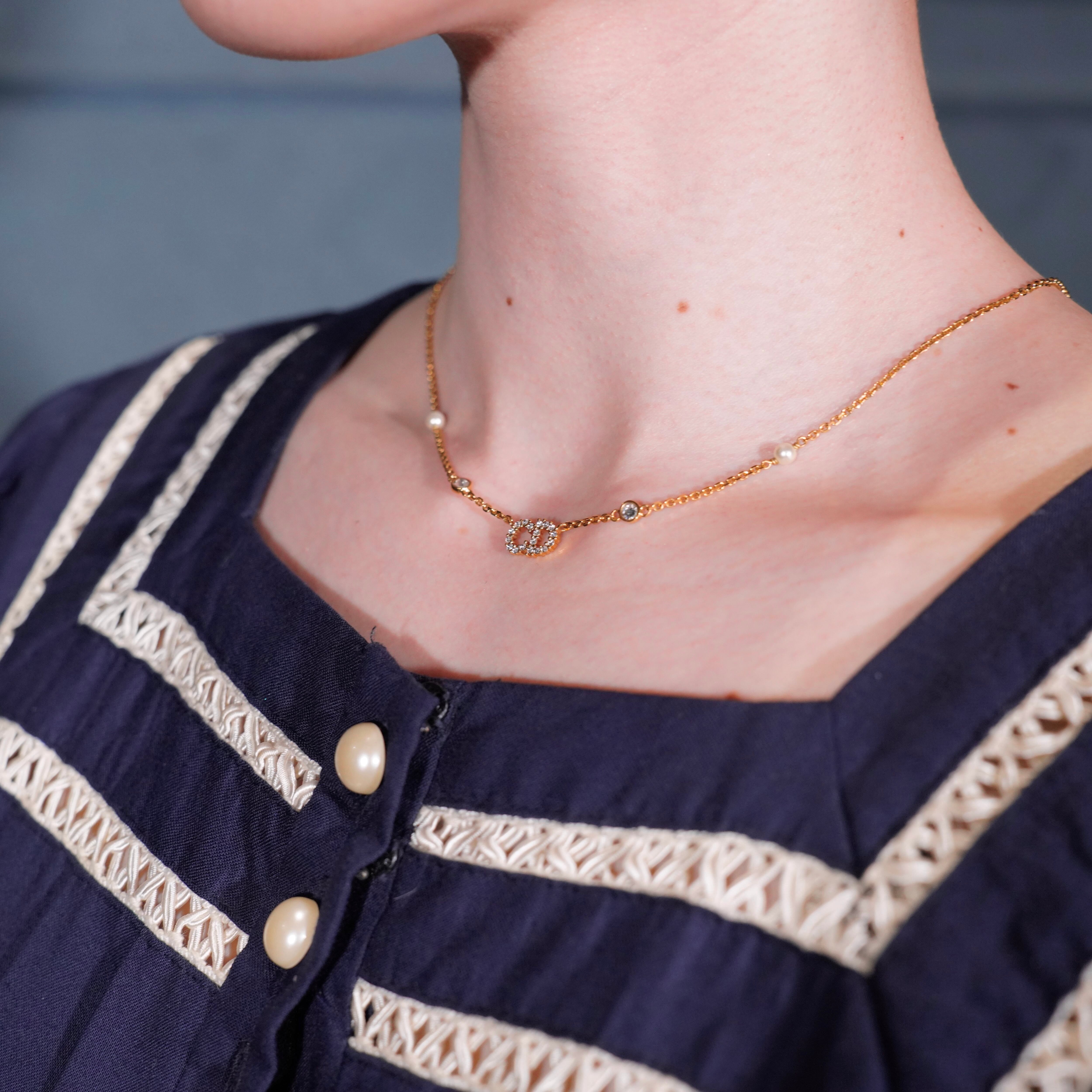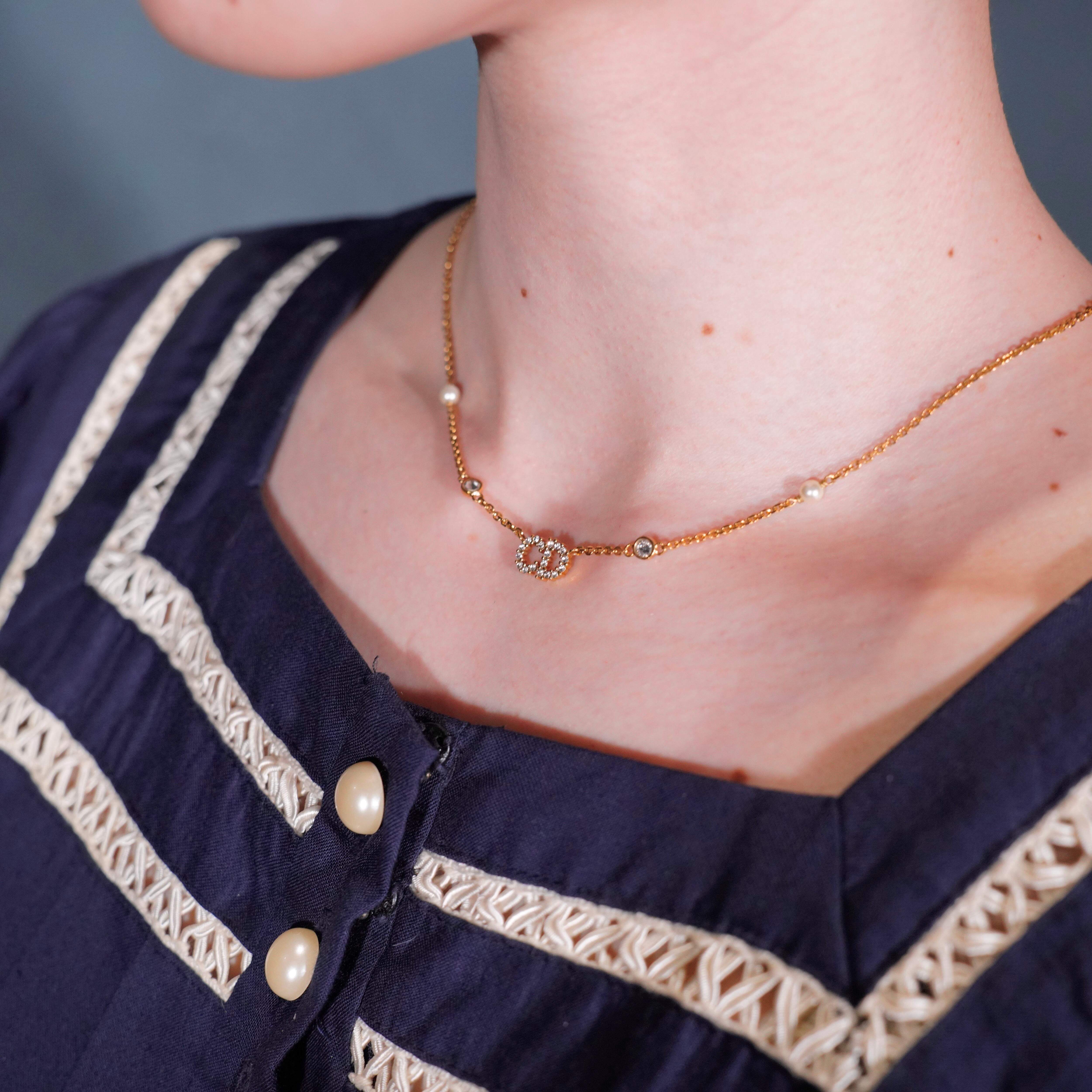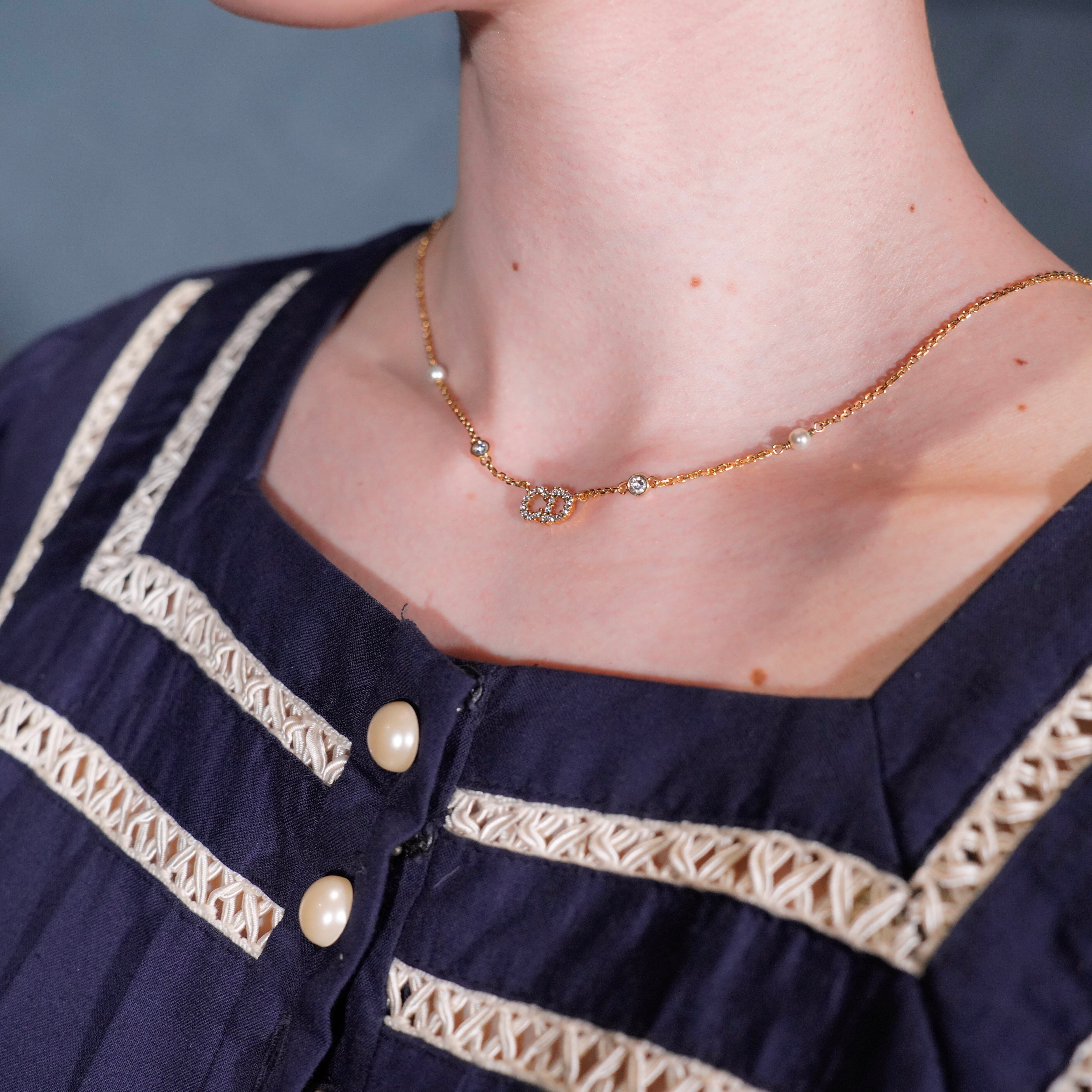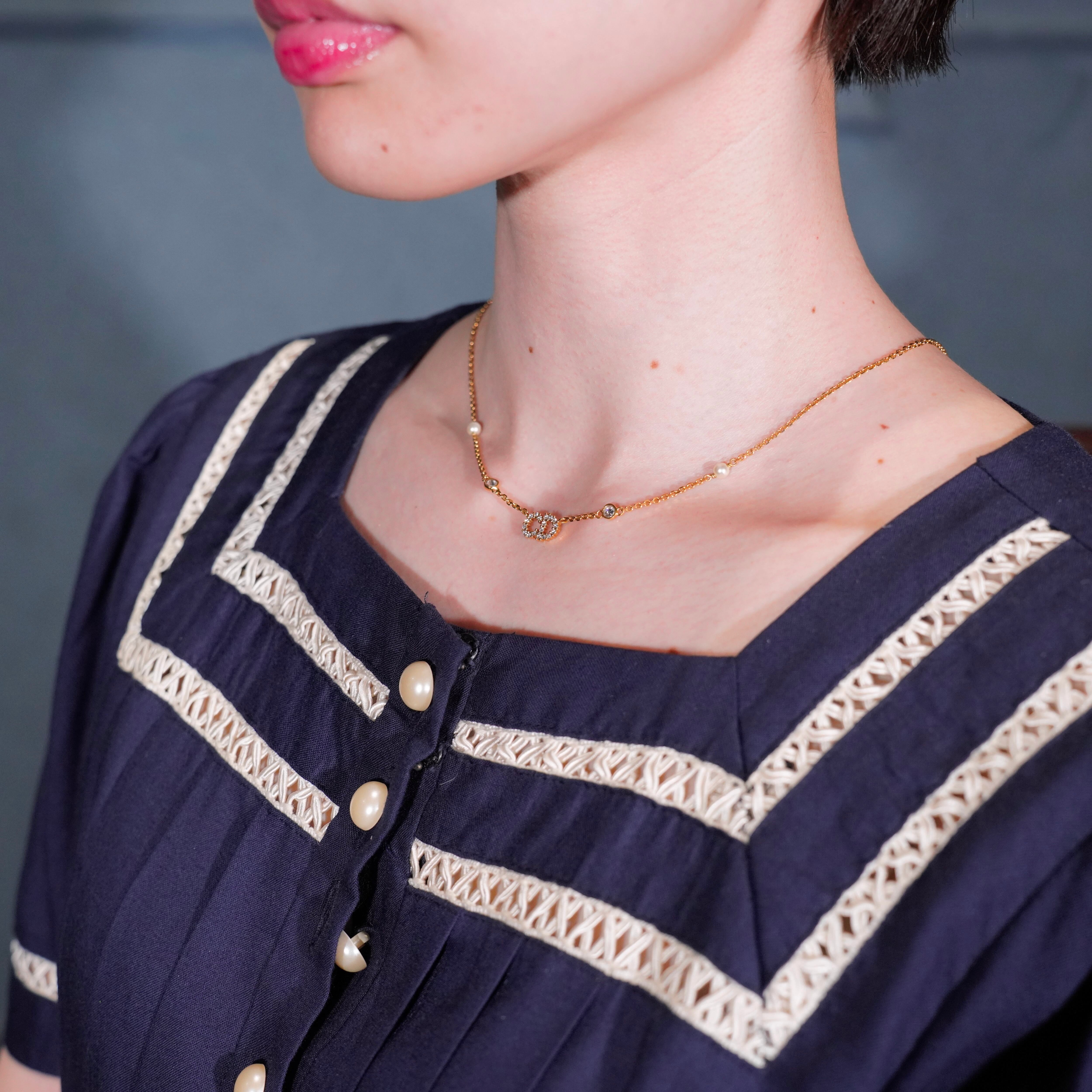 Christian Dior CLAIR D lune CD LOGO CLEAR STONE DESIGN NECKLACE/クリスチャンディオールCDロゴクリアストーンデザインネックレス