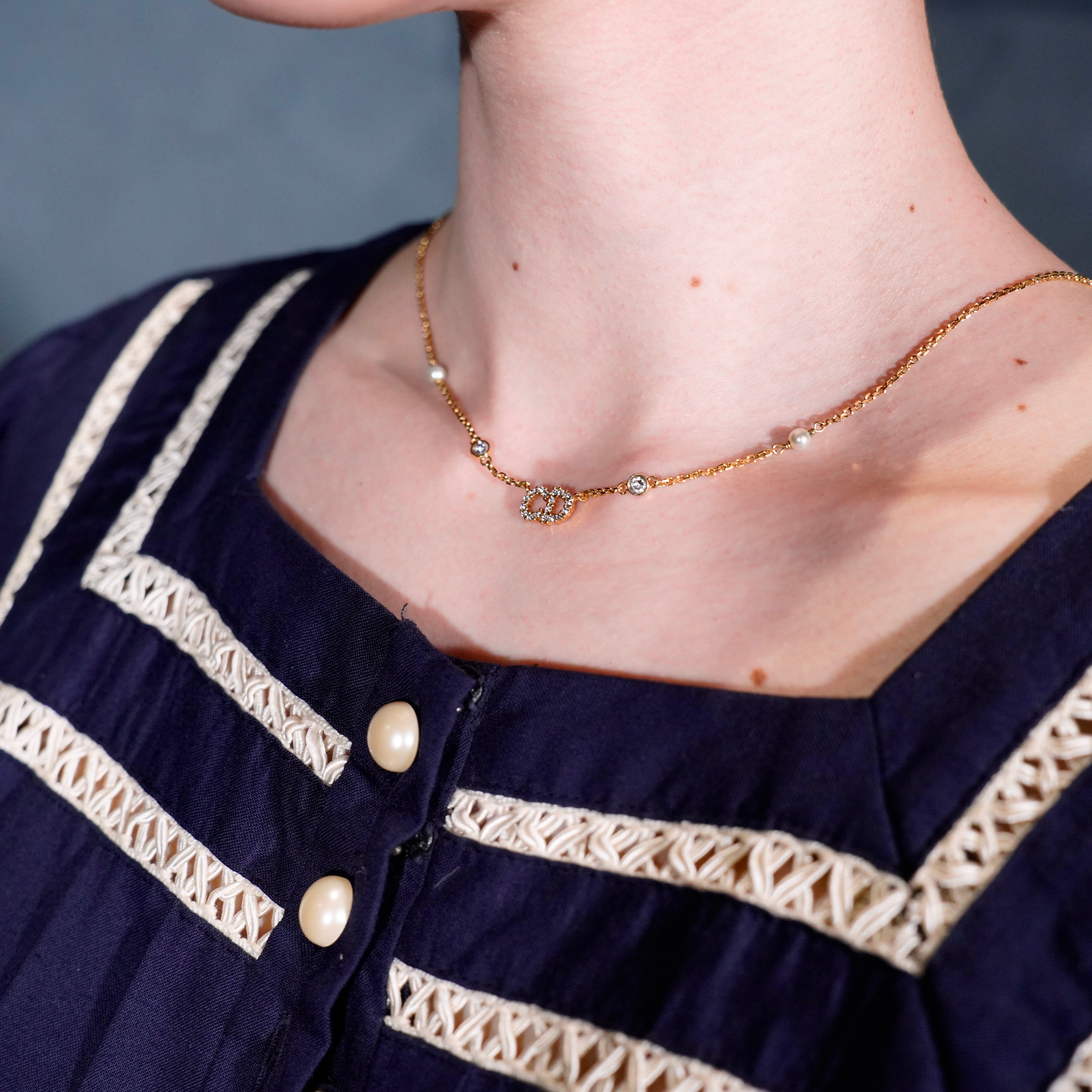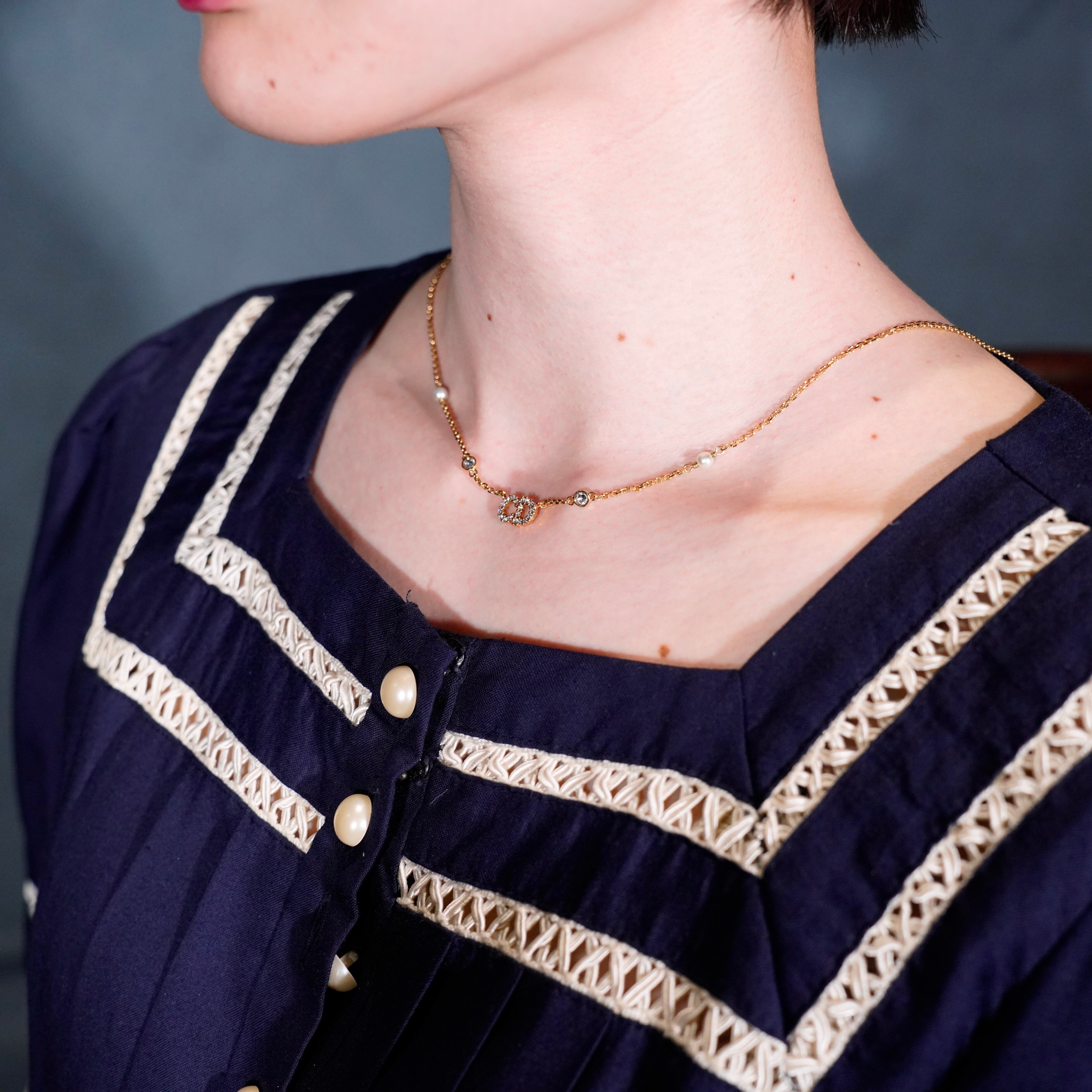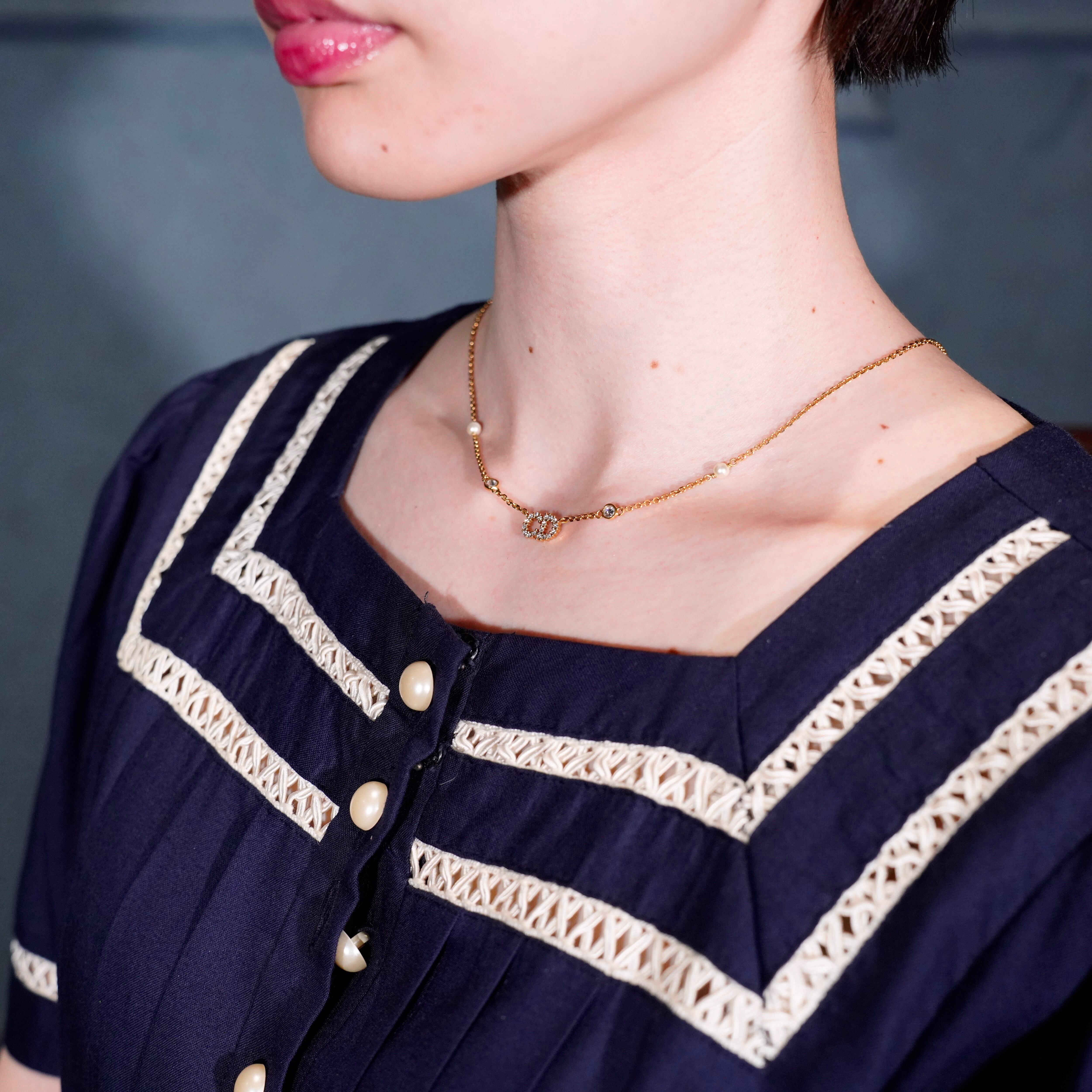 Christian Dior CLAIR D LINE lune CD LOGO CLEAR STONE DESIGN NECKLACE/クリスチャンディオールCDロゴクリアストーンデザインネックレス
