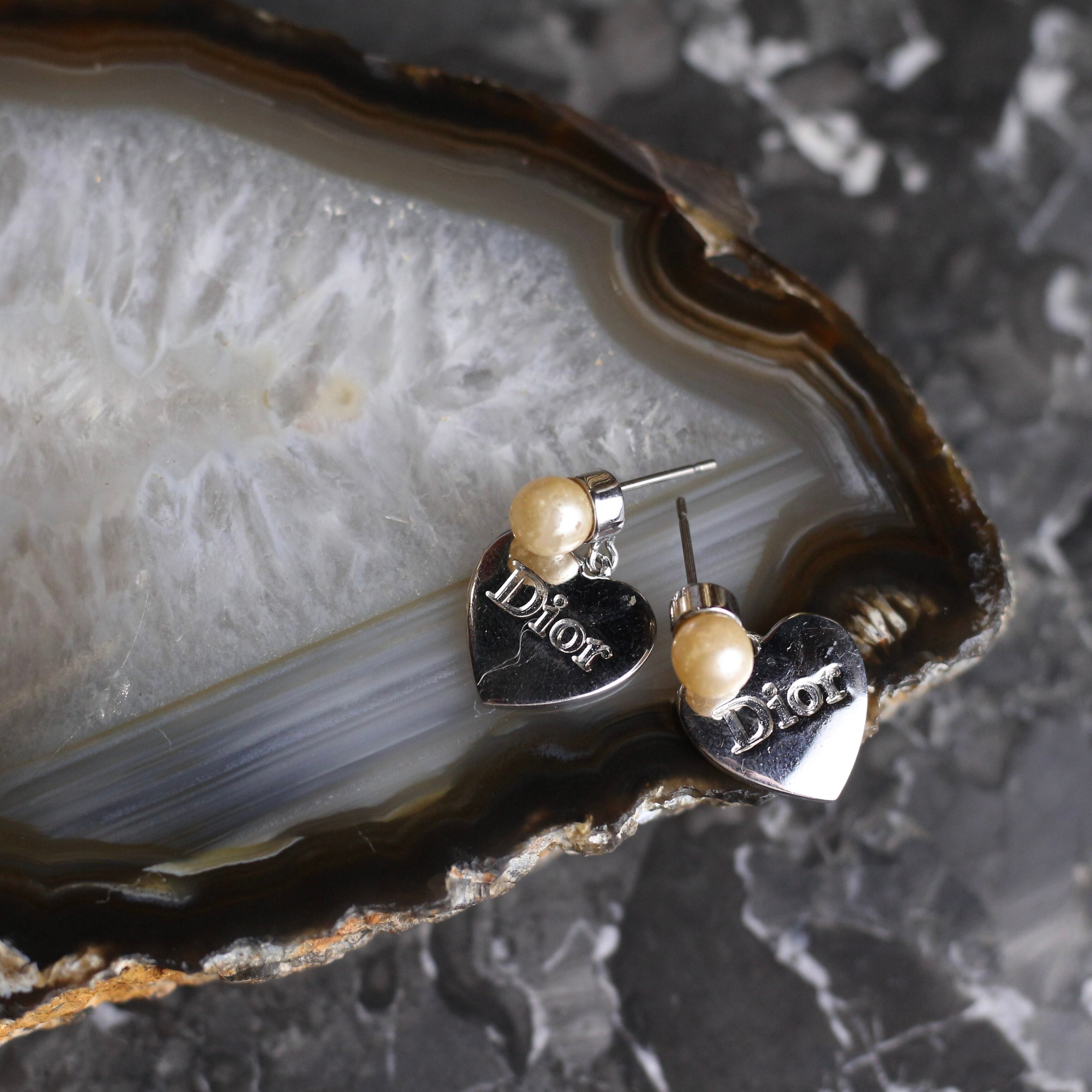 Christian Dior HEART LOGO PEARL DESIGN EARRING/クリスチャンディオールハートロゴパールデザインピアス