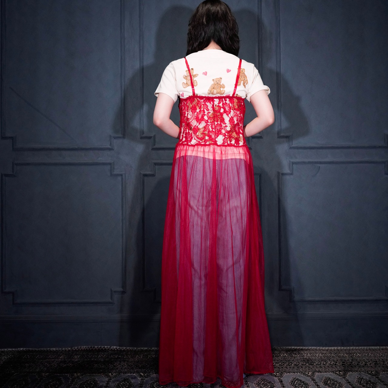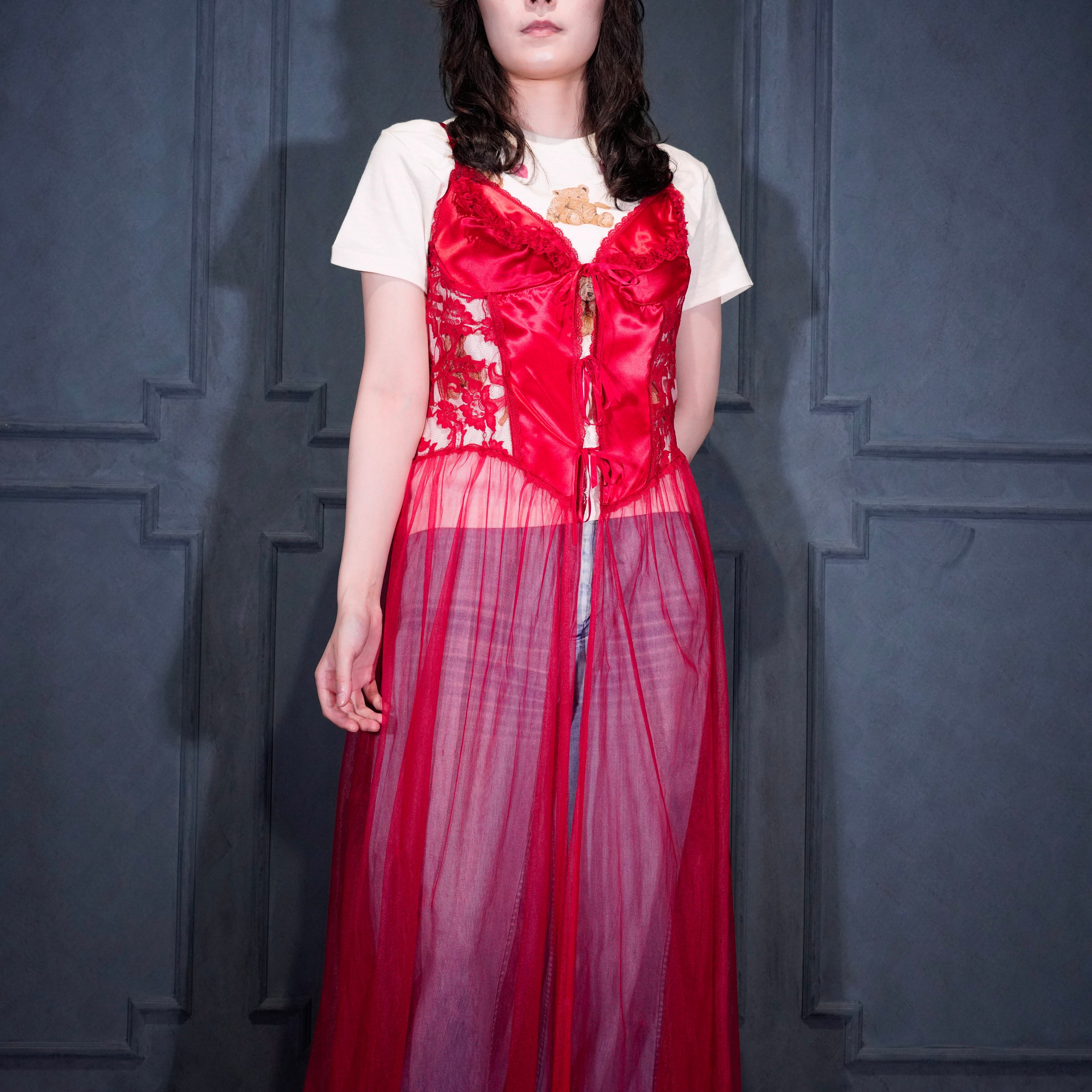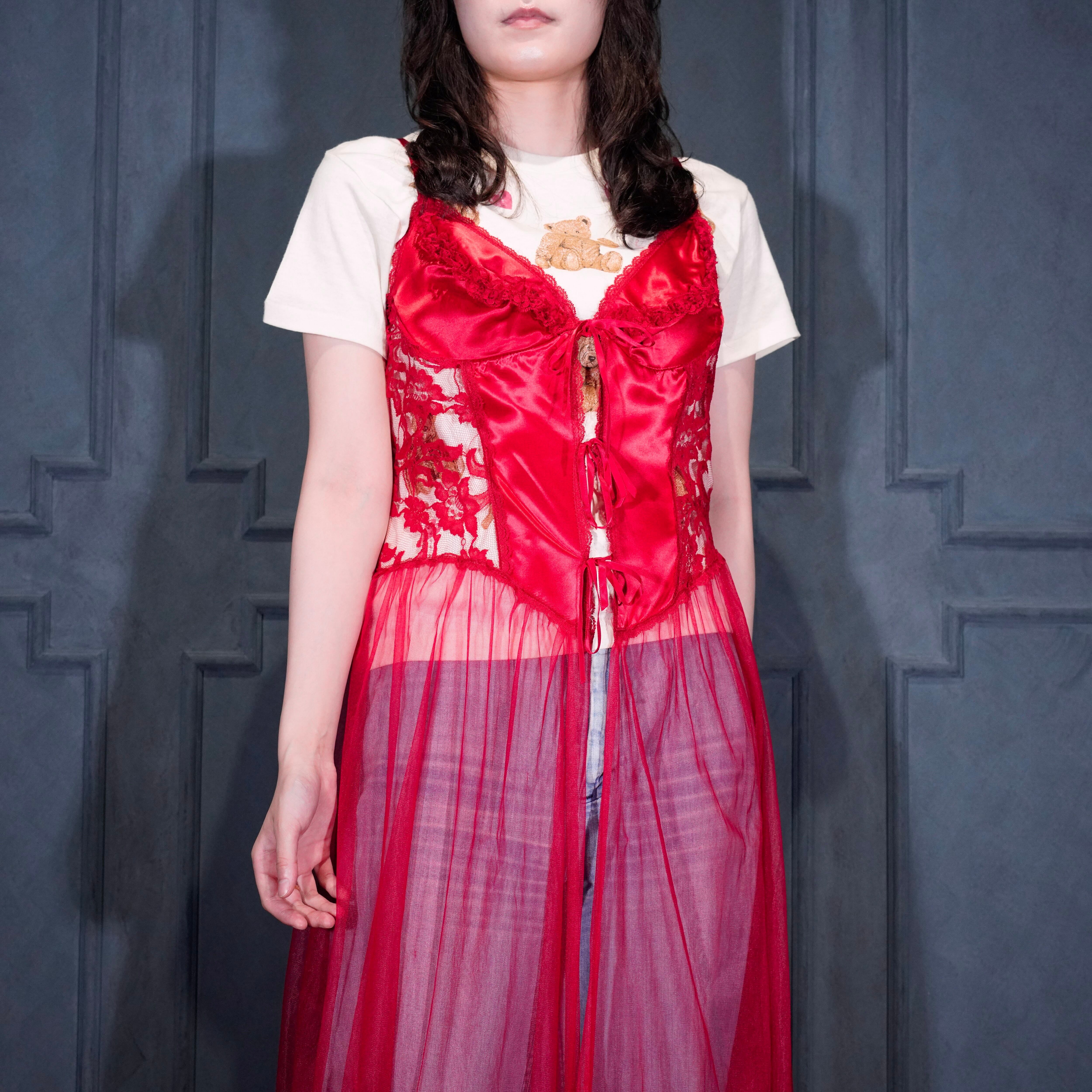 90’s USA VINTAGE frederick's of Hollywood LACE DESIGN LINGERIE NIGHTY DRESS NO SLEEVE ONE PIECE/90年代アメリカ古着レースデザインランジェリーナイティドレスノースリーブワンピース(ナイトドレス)