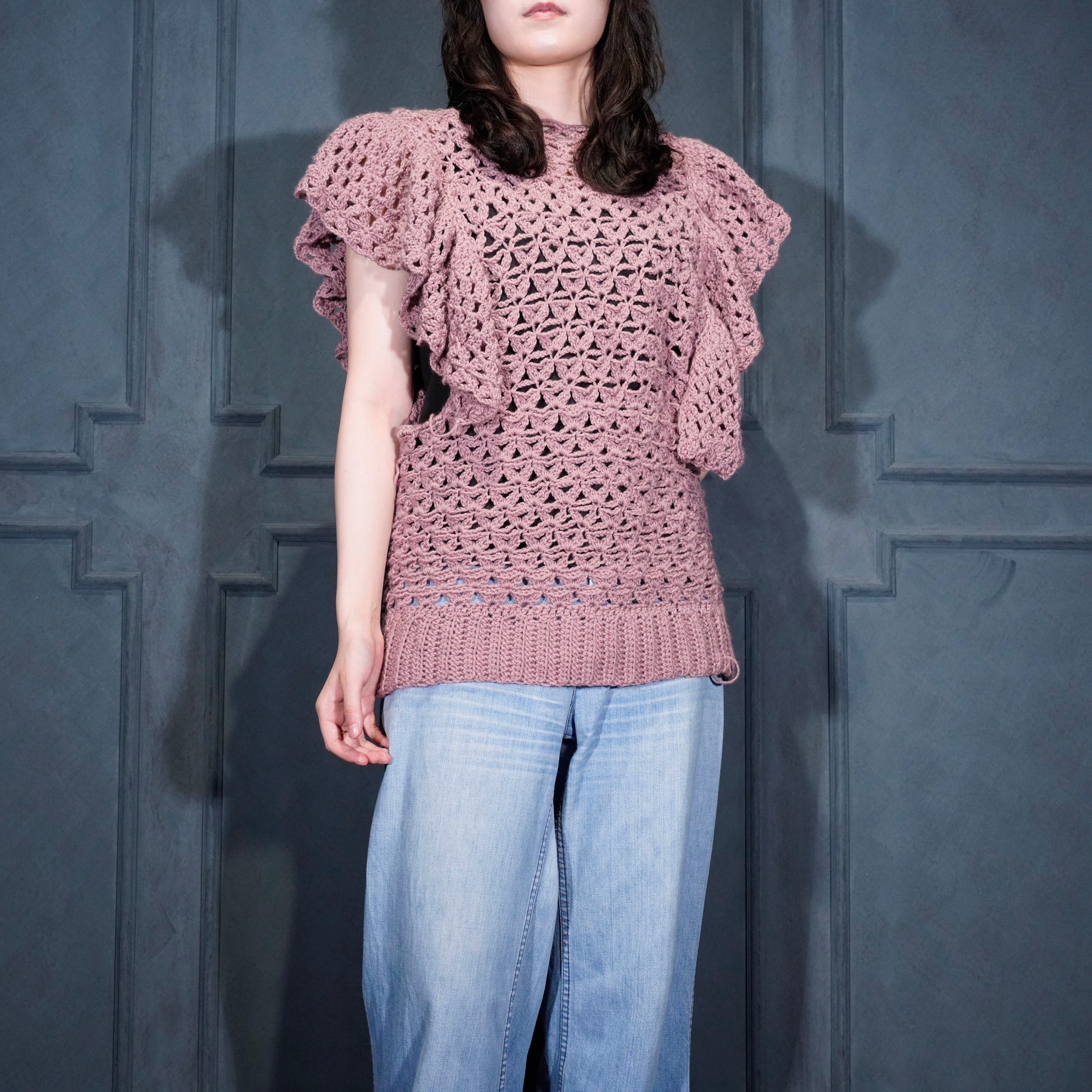 USA VINTAGE PEPLUM SLEEVE DESIGN KNIT CUT&SEWN/アメリカ古着ペプラムスリーブデザインニットカットソー(ニットソー)