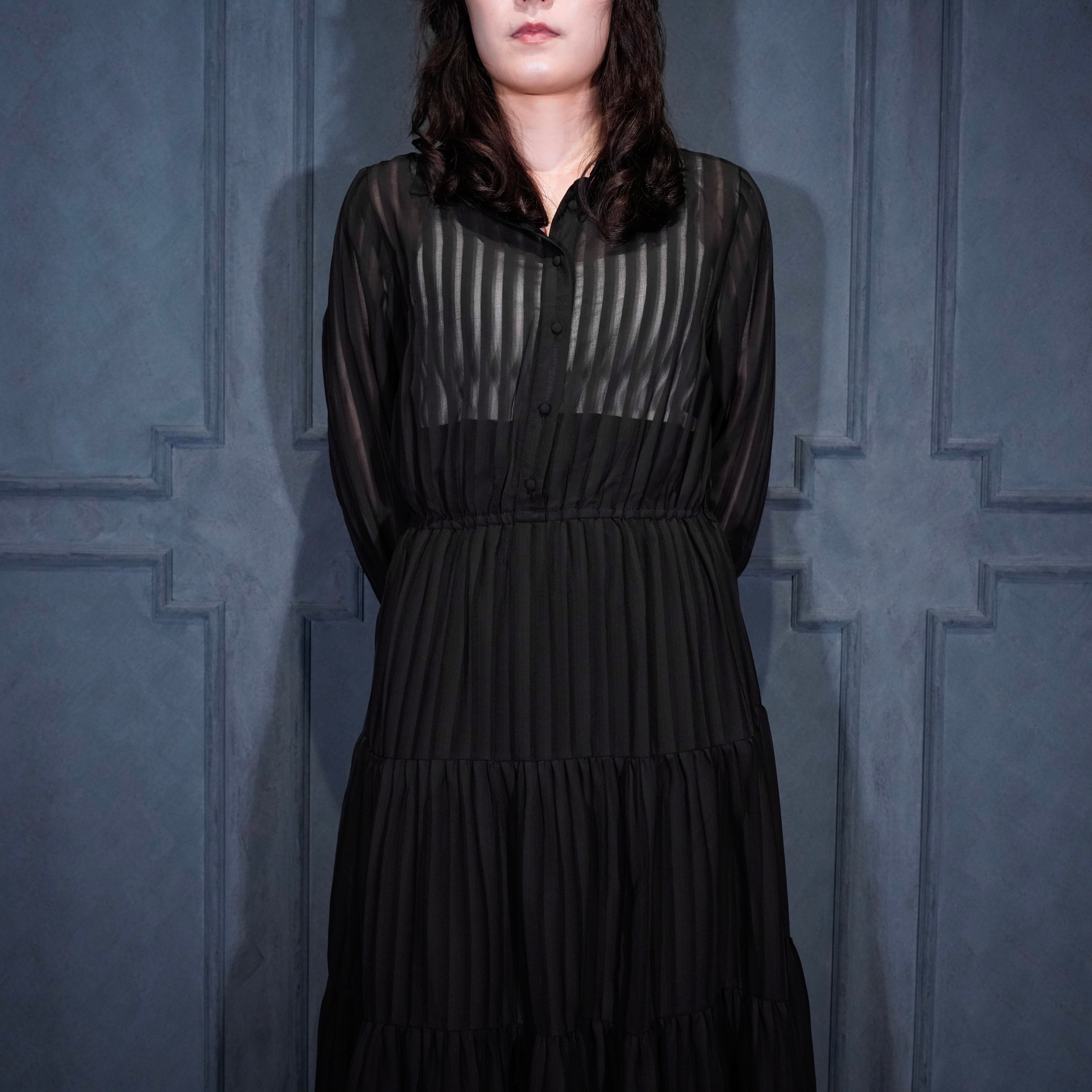 USA VINTAGE nanette NANETTE LEPORE SHADOW STRIPE PATTERNED SHEER DESIGN ONE PIECE/アメリカ古着シャドーストライプ柄シアーデザインワンピース