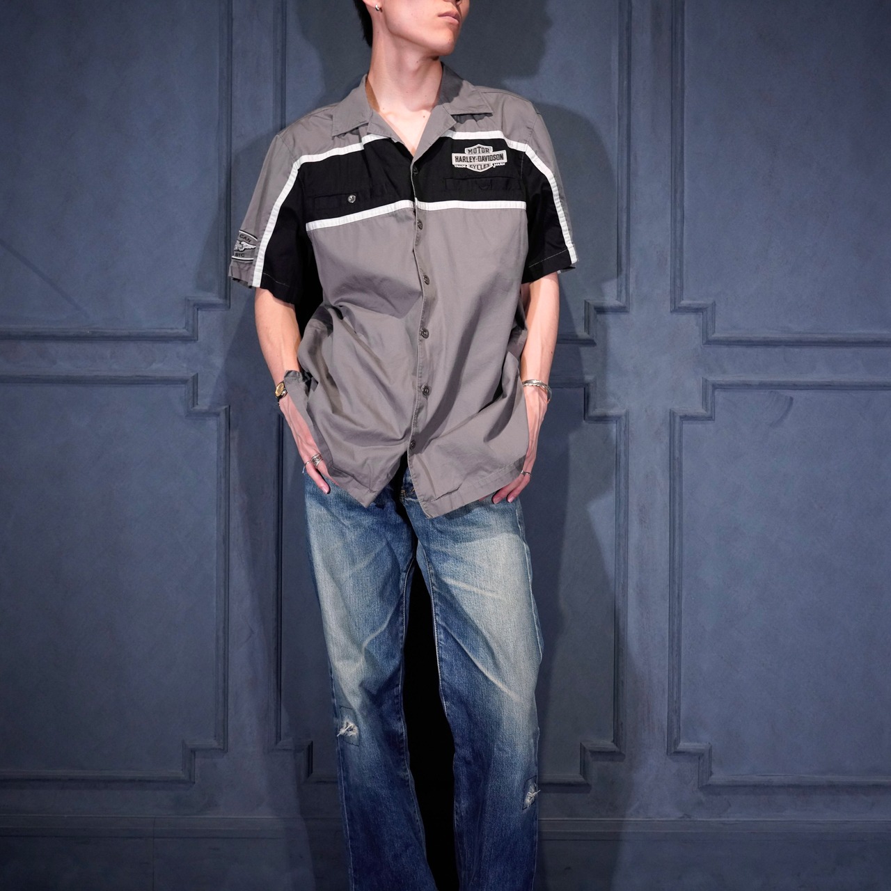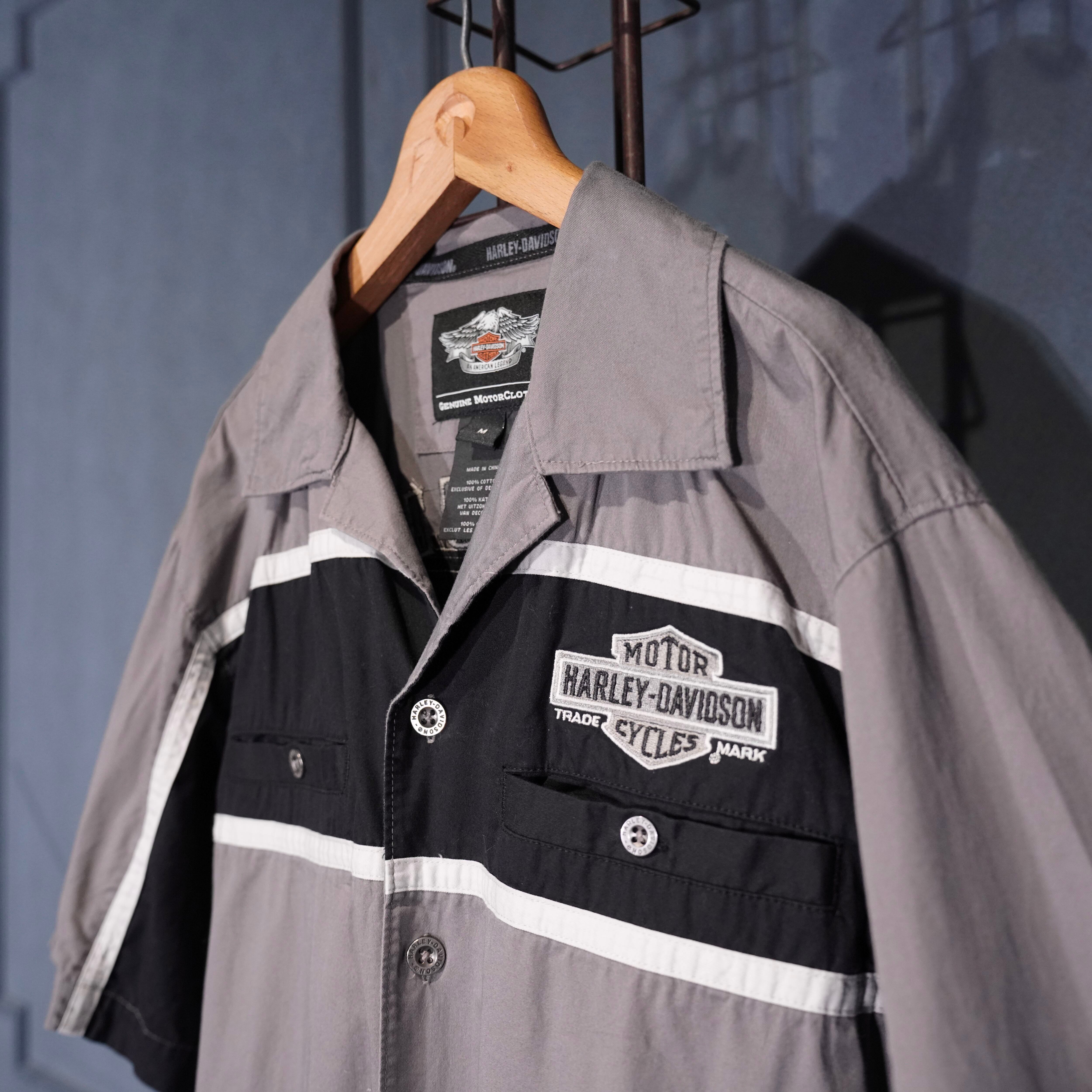 USA VINTAGE HARLEY DAVIDSON LOGO EMBROIDERY DESIGN HALF SLEEVE SHIRT/アメリカ古着ハーレーダヴィッドソンロゴ刺繍デザイン半袖シャツ