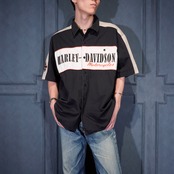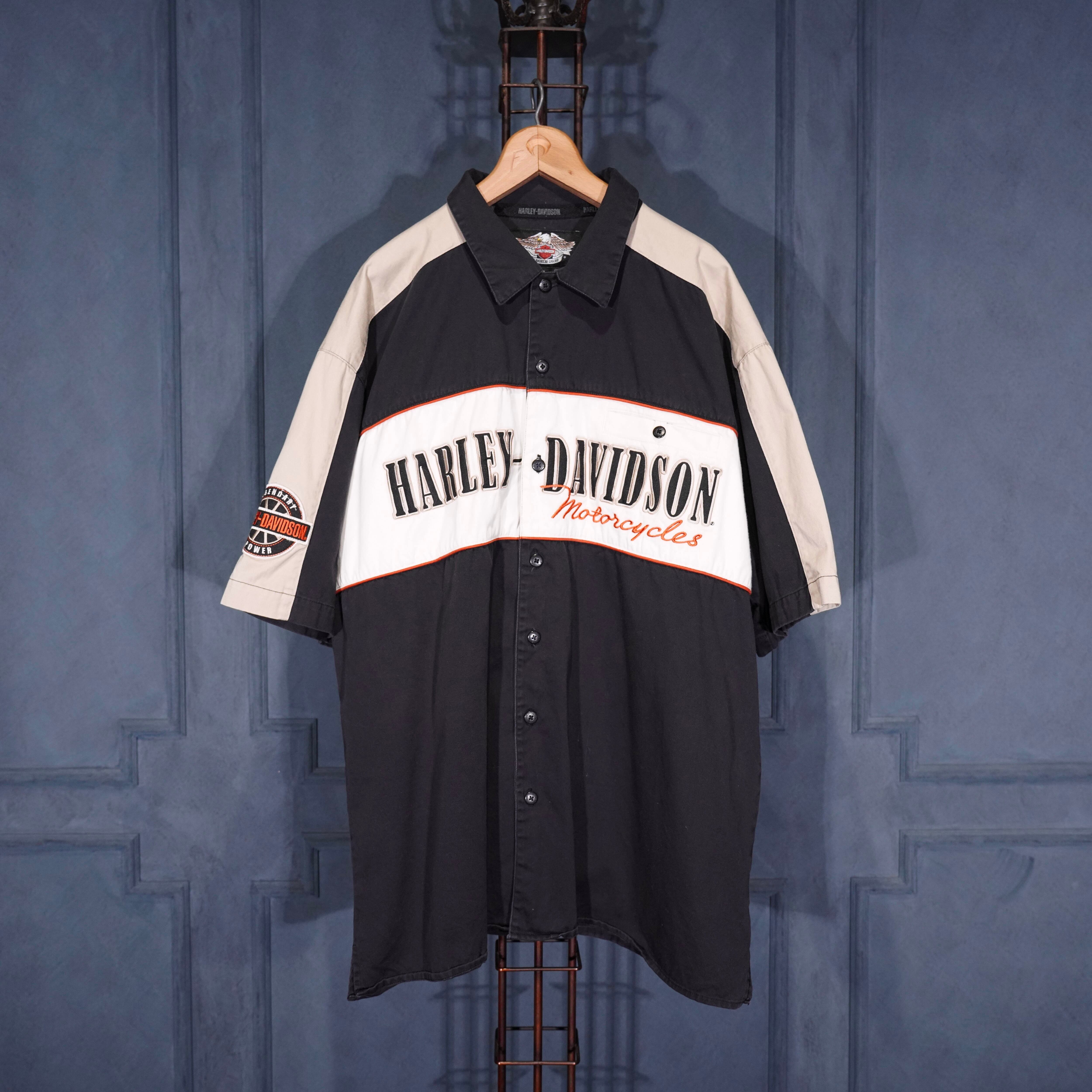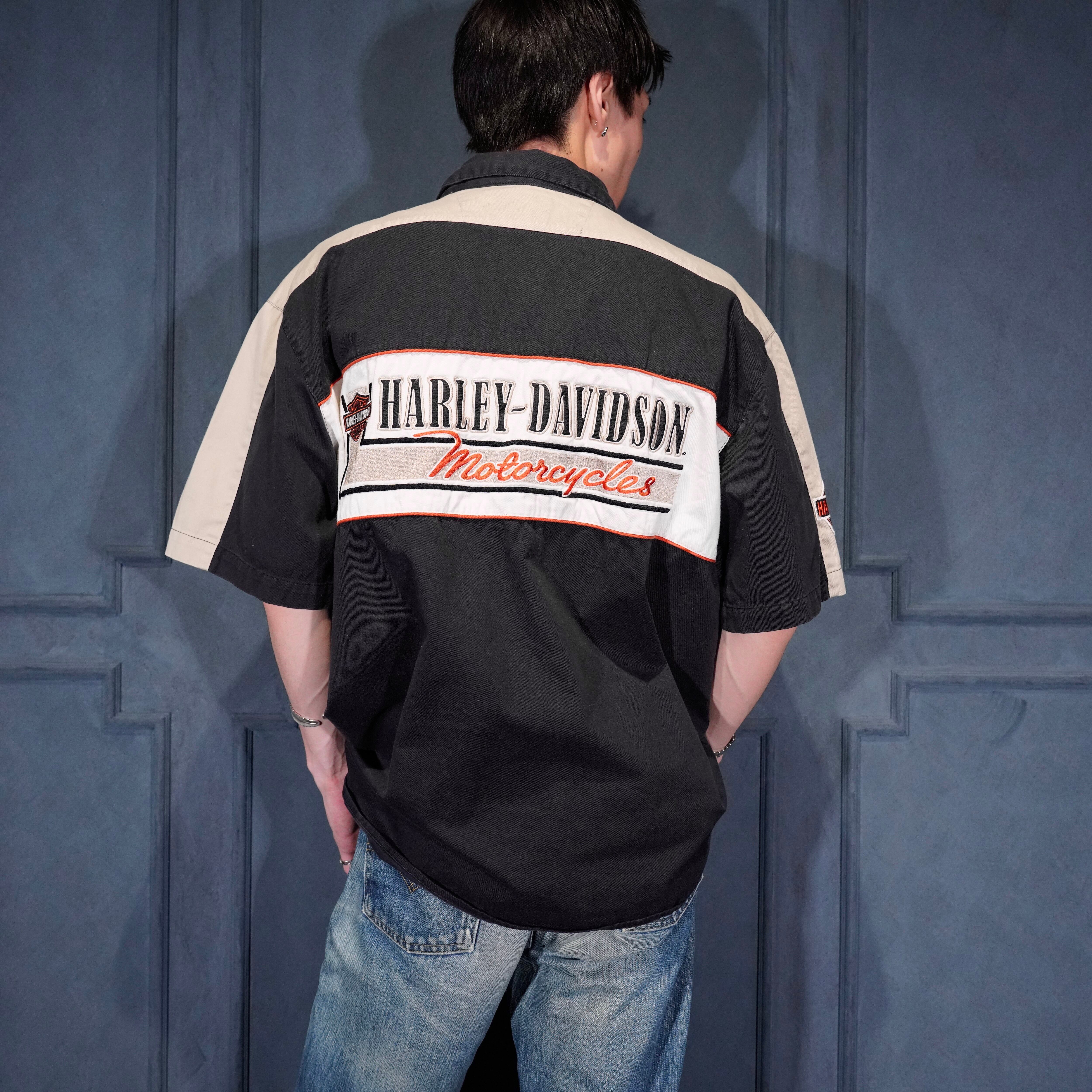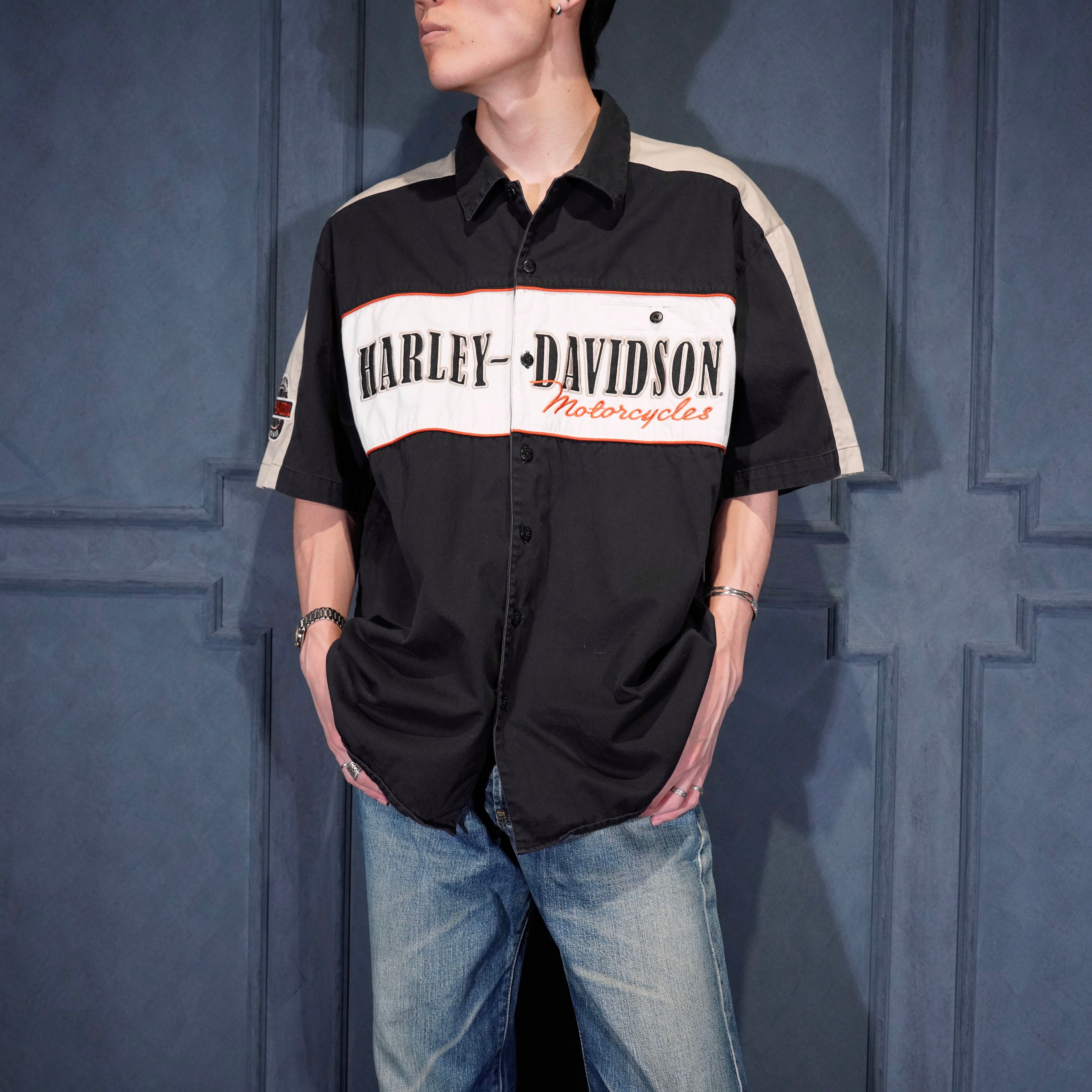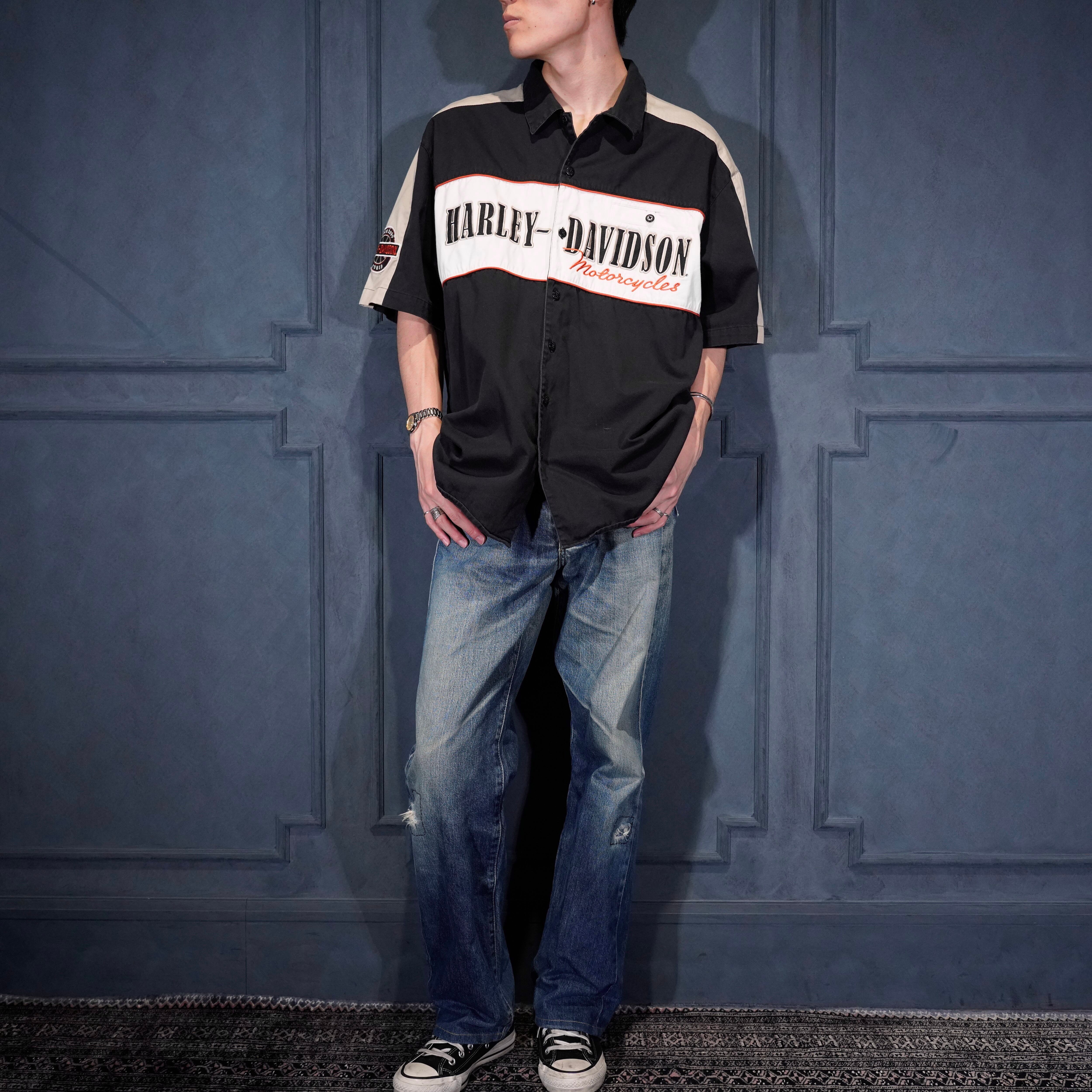 USA VINTAGE HARLEY DAVIDSON AN AMERICAN LEGEND LOGO EMBROIDERY DESIGN HALF SLEEVE SHIRT/アメリカ古着ハーレーダヴィッドソンロゴ刺繍デザイン半袖シャツ