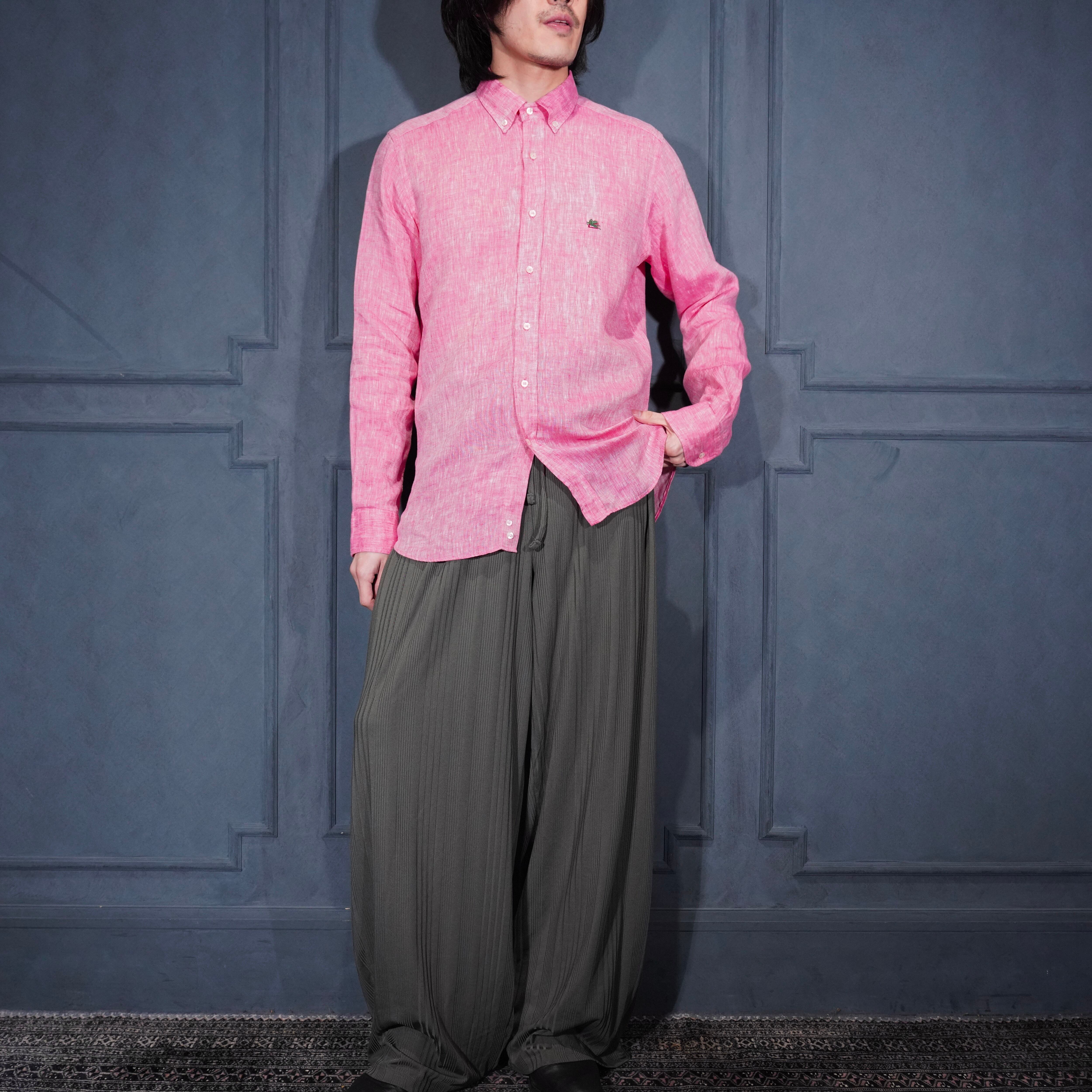 .ETRO LOGO EMBROIDERY DESIGN LINEN COLOR SHIRT/エトロロゴ刺繍デザインリネンカラーシャツ 2000000073507