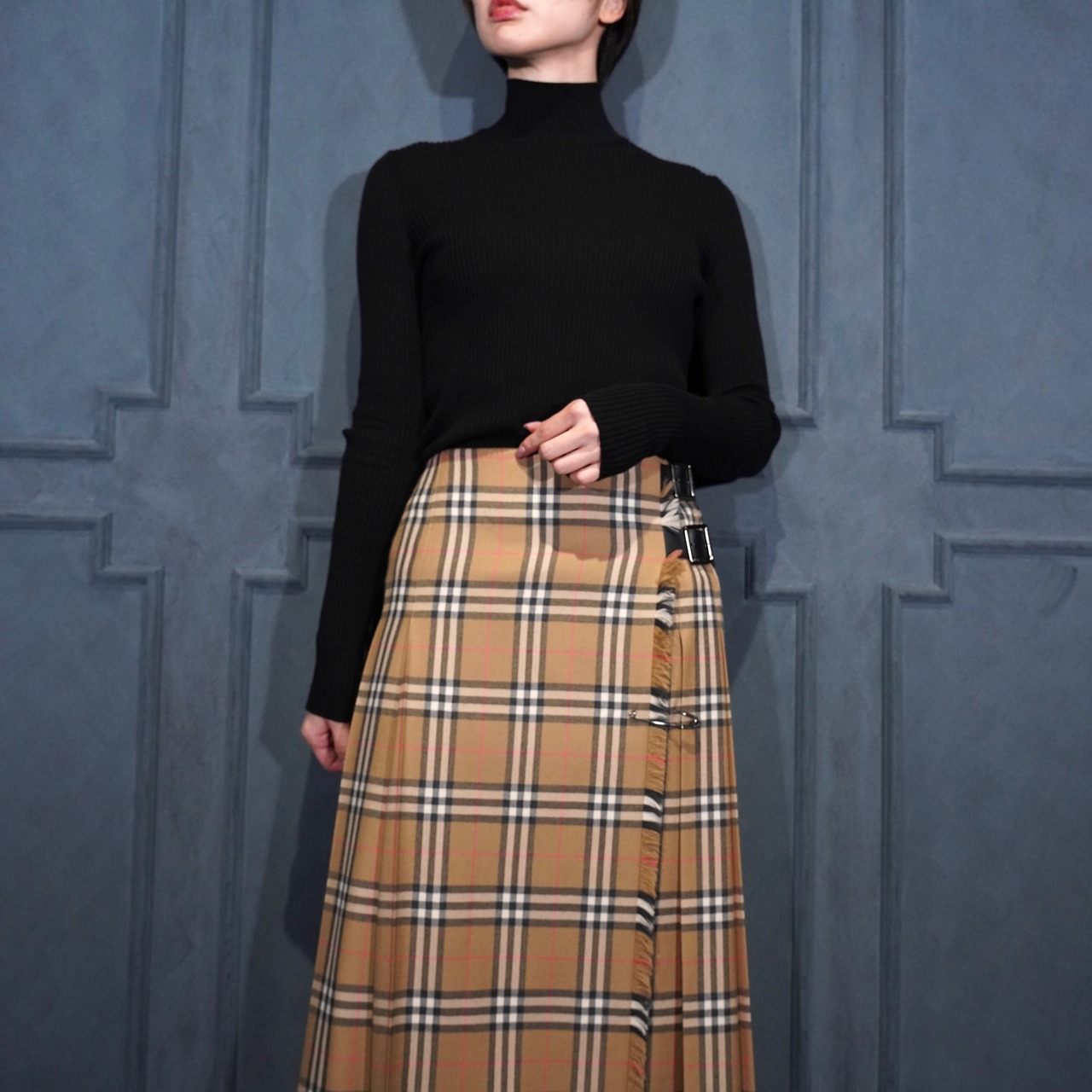 .BURBERRY LONDON CHECK PATTERNED WOOL WRAP LONG SKIRT/バーバリーロンドンチェック柄ウール巻きスカート 2000000072784