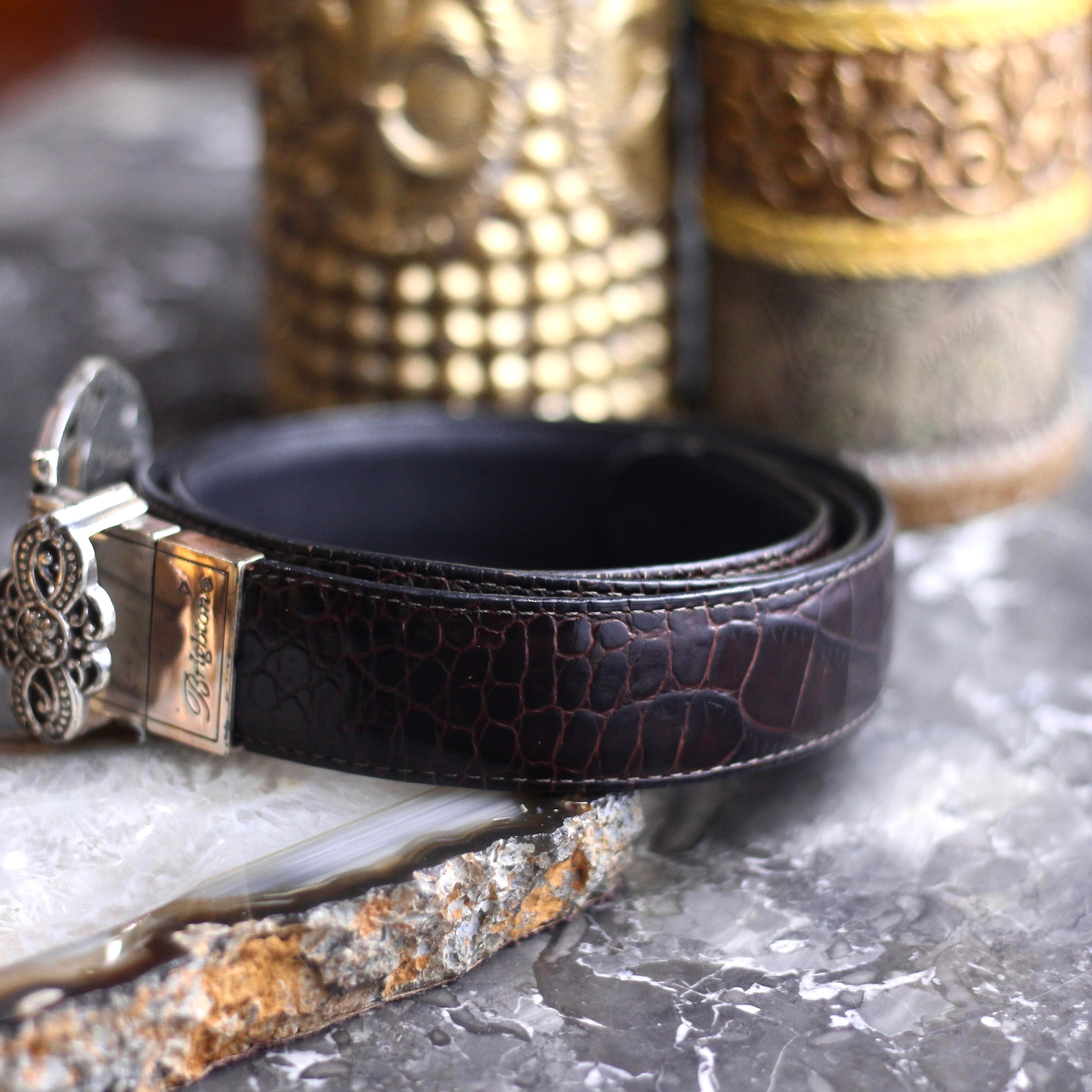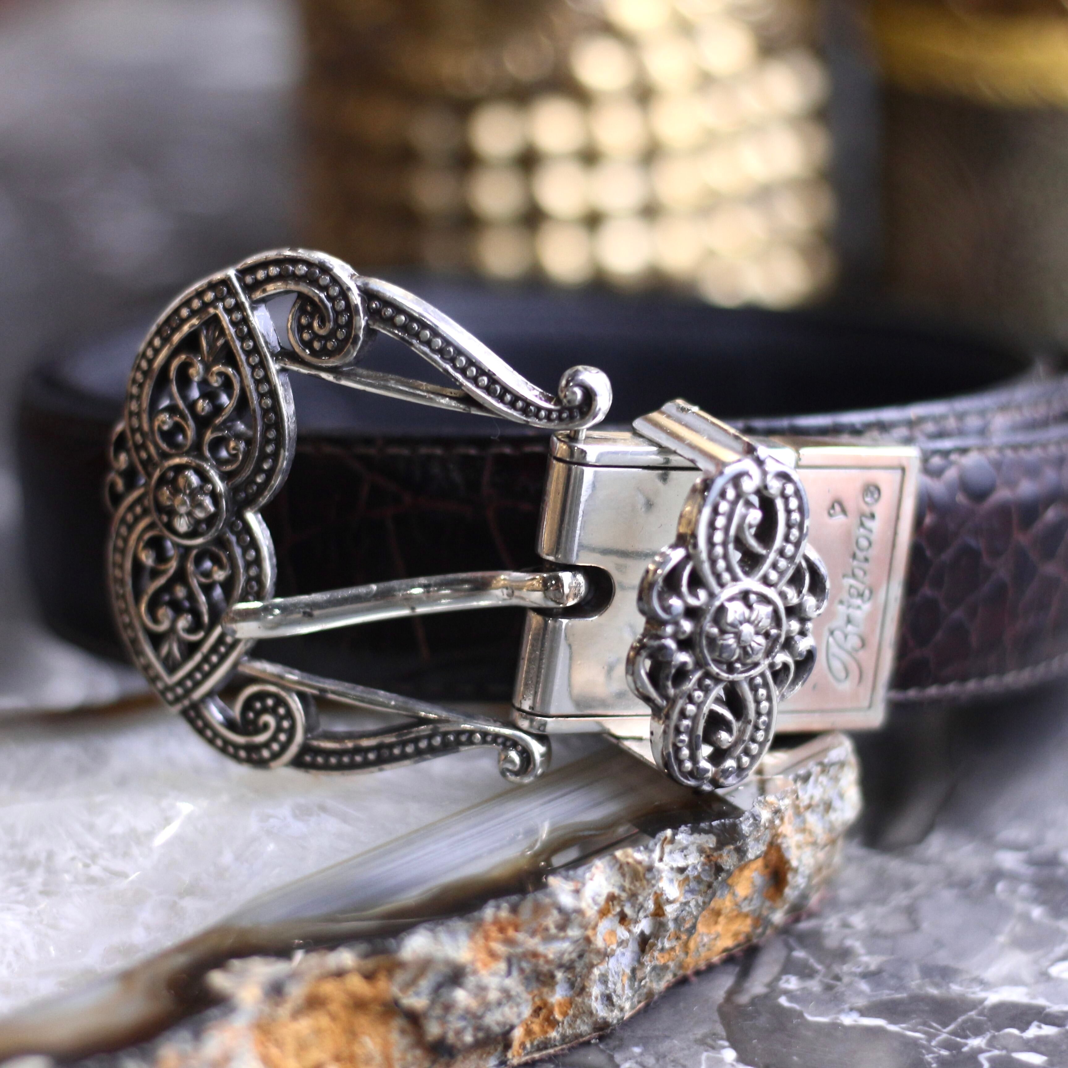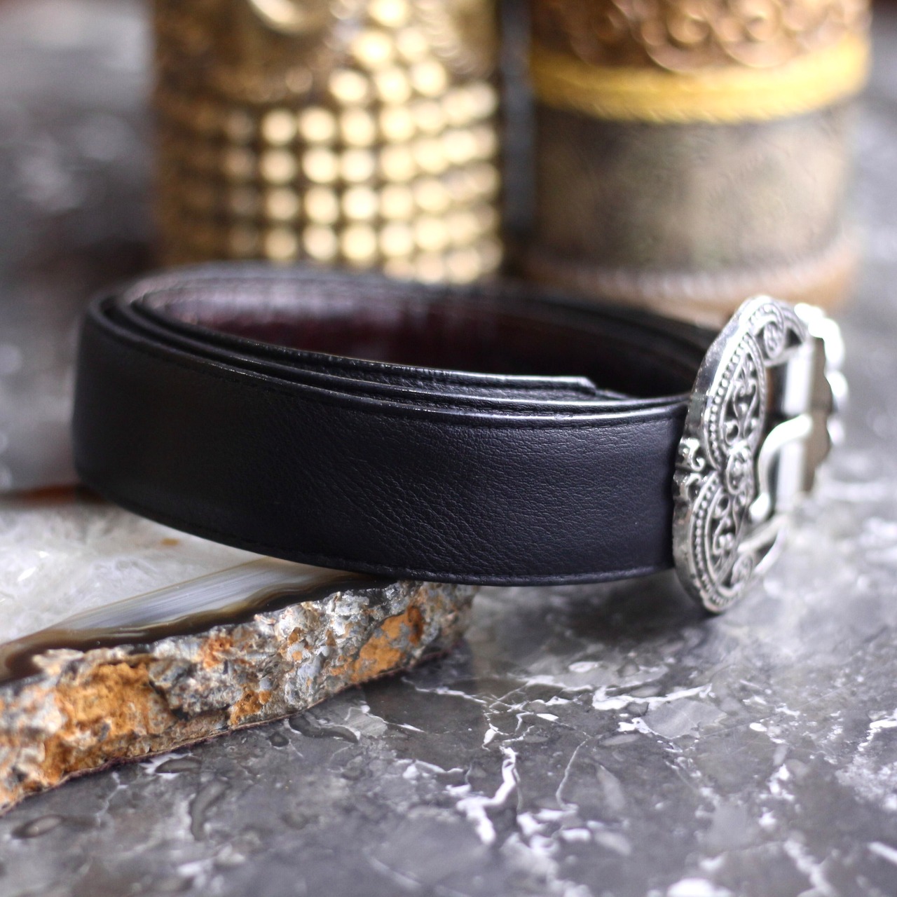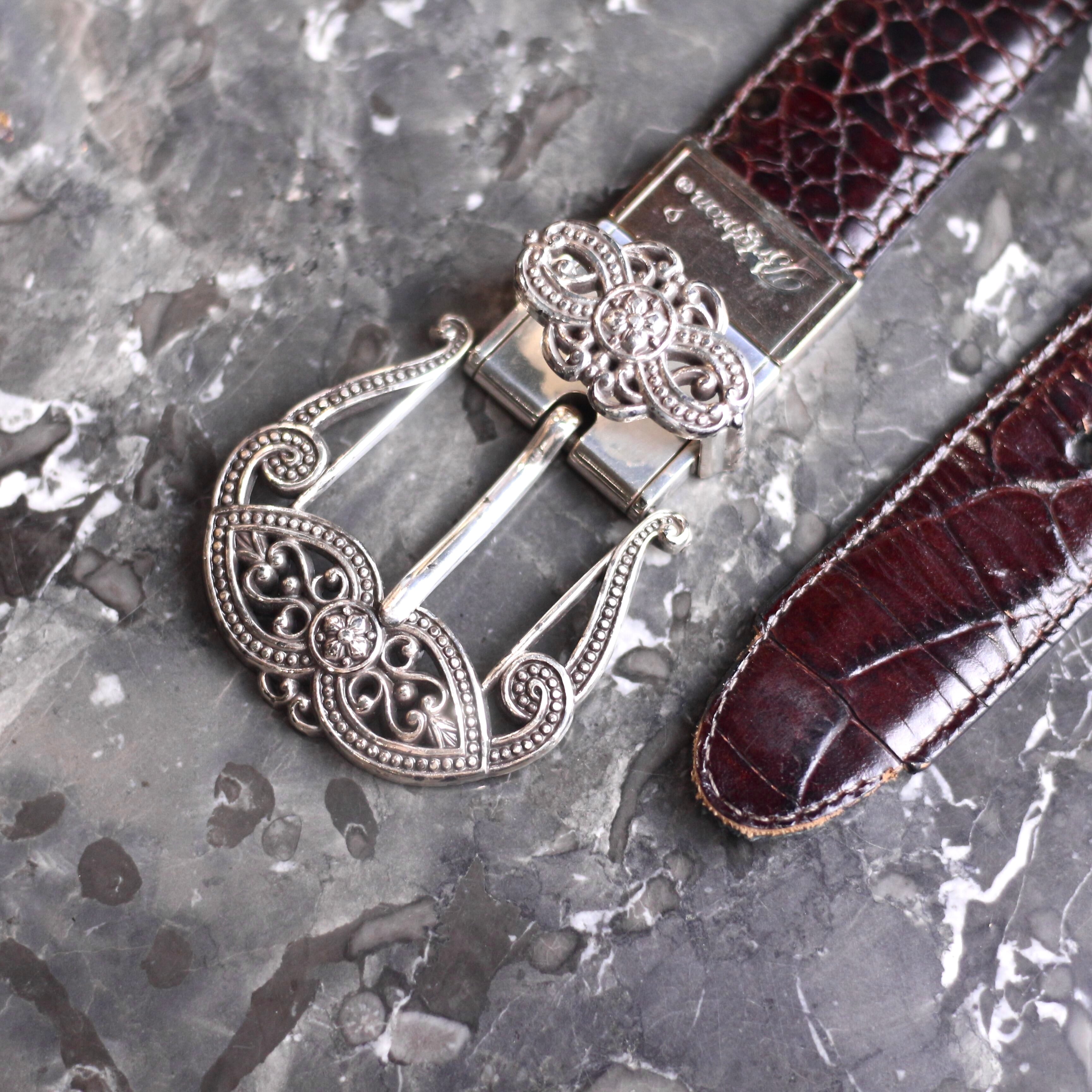 USA VINTAGE BRIGHTON BUCKLE DESIGN DOUBLE FACE LEATHER BELT/アメリカ古着ブライトンバックルデザインダブルフェイスレザーベルト