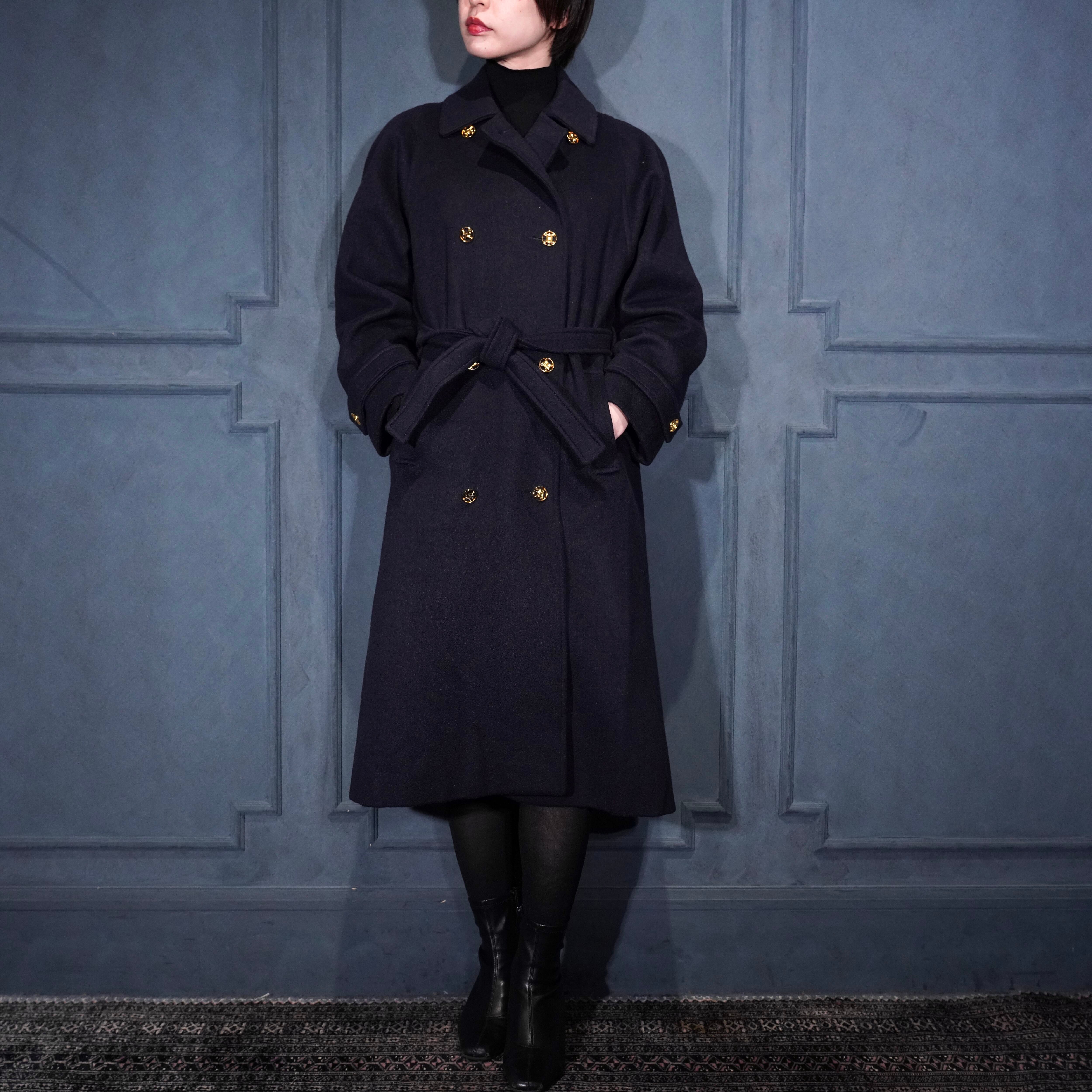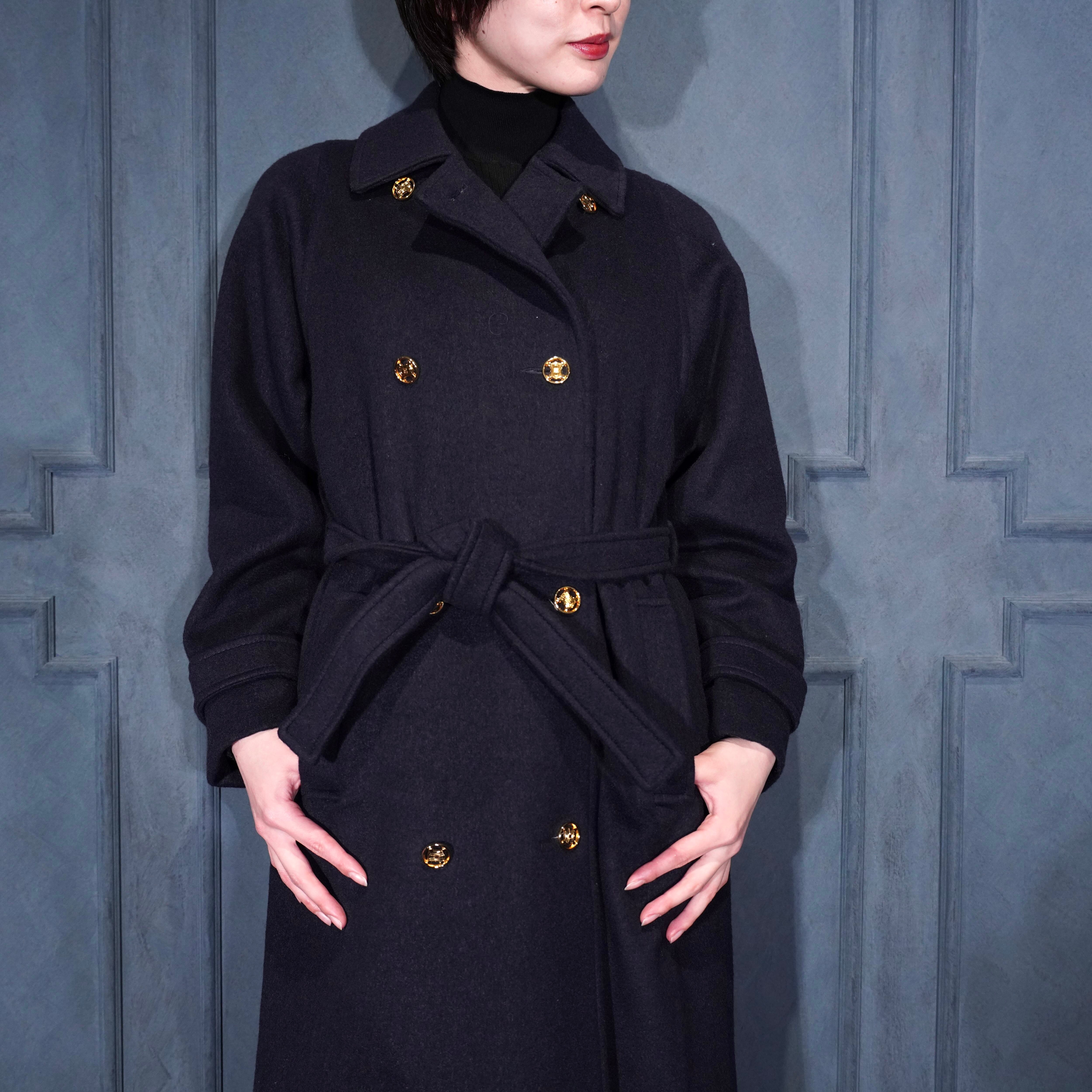 CELINE GOLD LOGO BUTTON DESIGN BELTED COAT/オールドセリーヌ金ロゴボタンデザインベルテッドコート