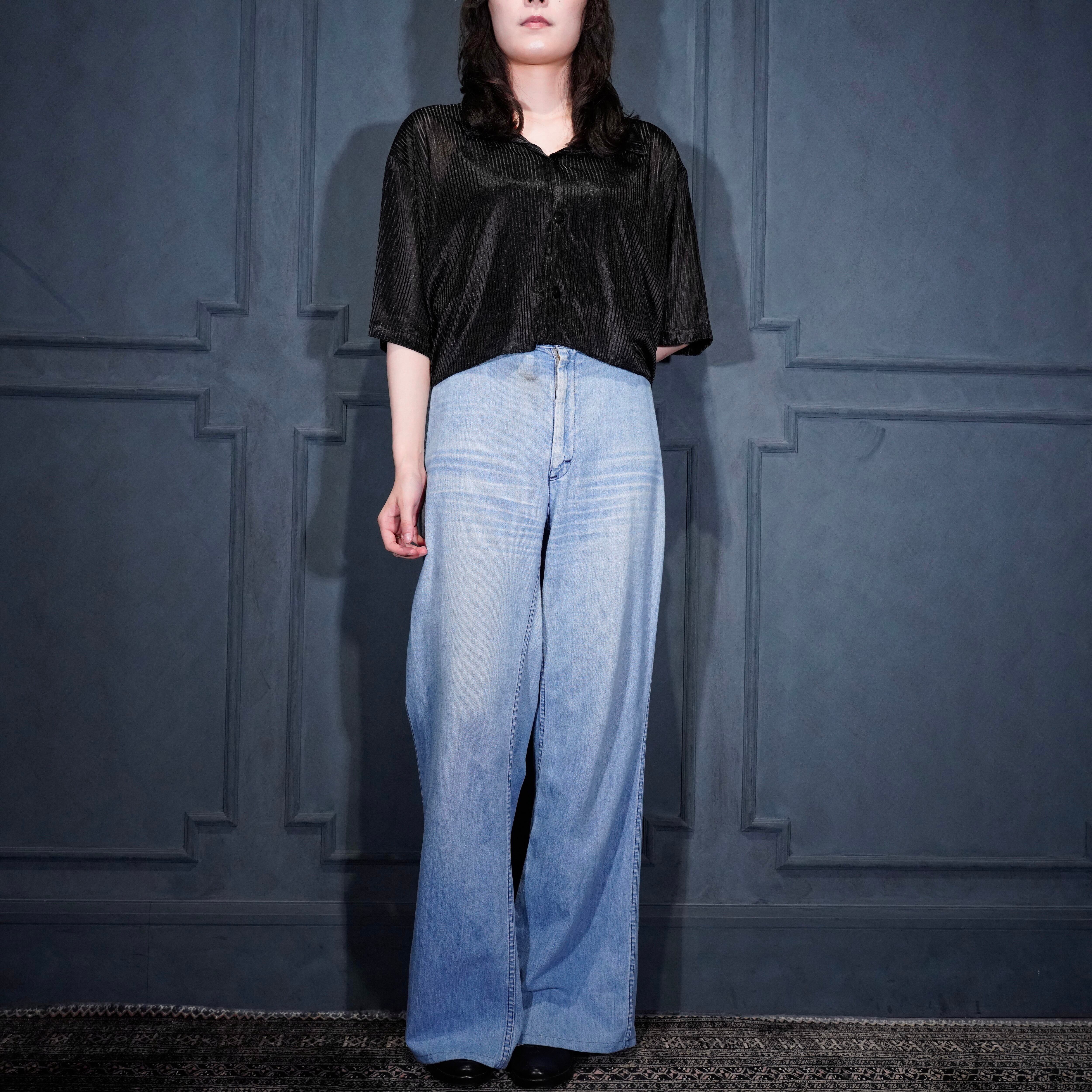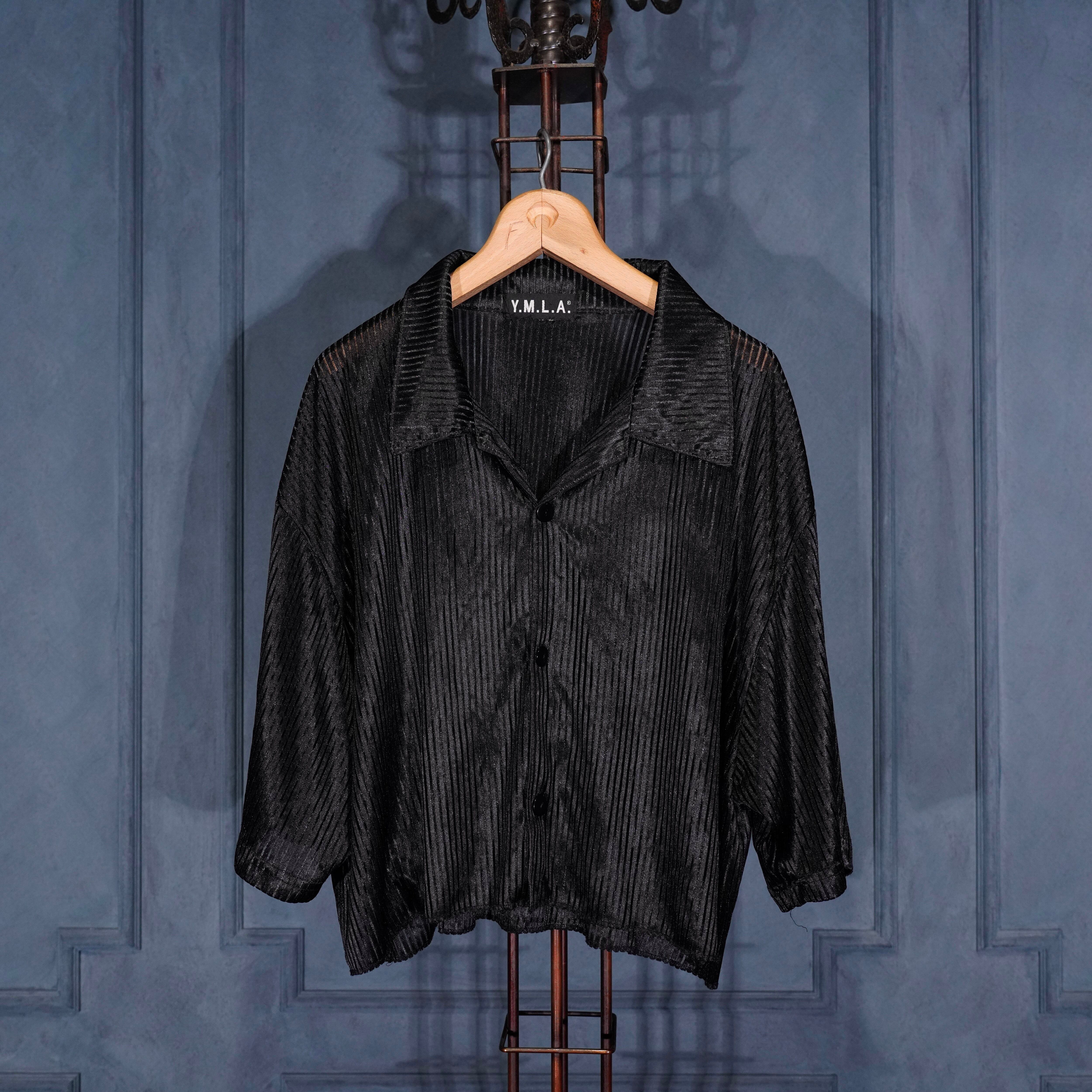 USA VINTAGE Y.M.L.A SHORT LENGTH STRIPE PATTERNED SHEER DESIGN HALF SLEEVE SHIRT/アメリカ古着ショート丈ストライプ柄半袖シャツ