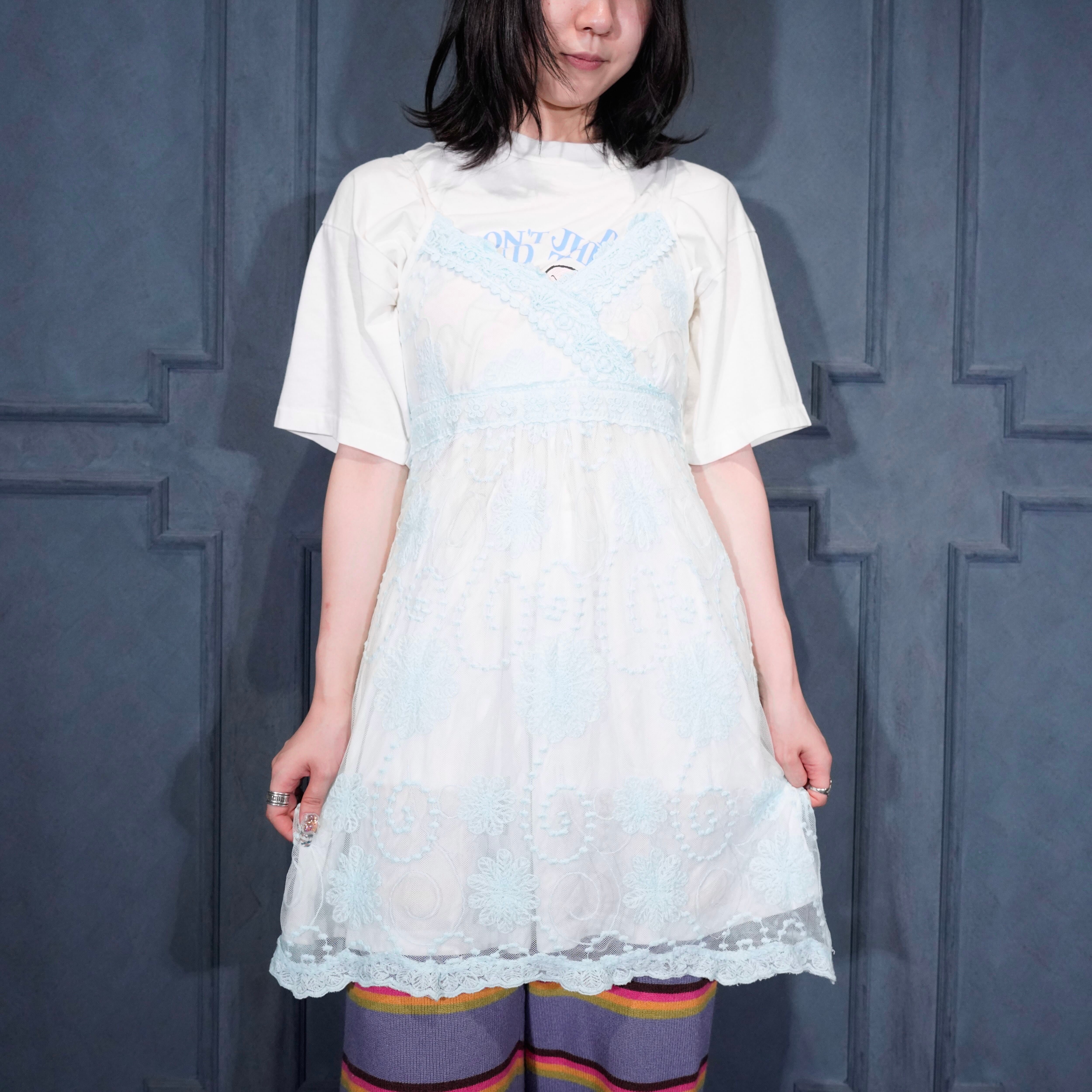 USA VINTAGE LACE DESIGN NIGHTY DRESS TUNIC CAMISOLE/アメリカ古着レースデザインナイティドレスチュニックキャミソール(ナイトドレス/ランジェリー)