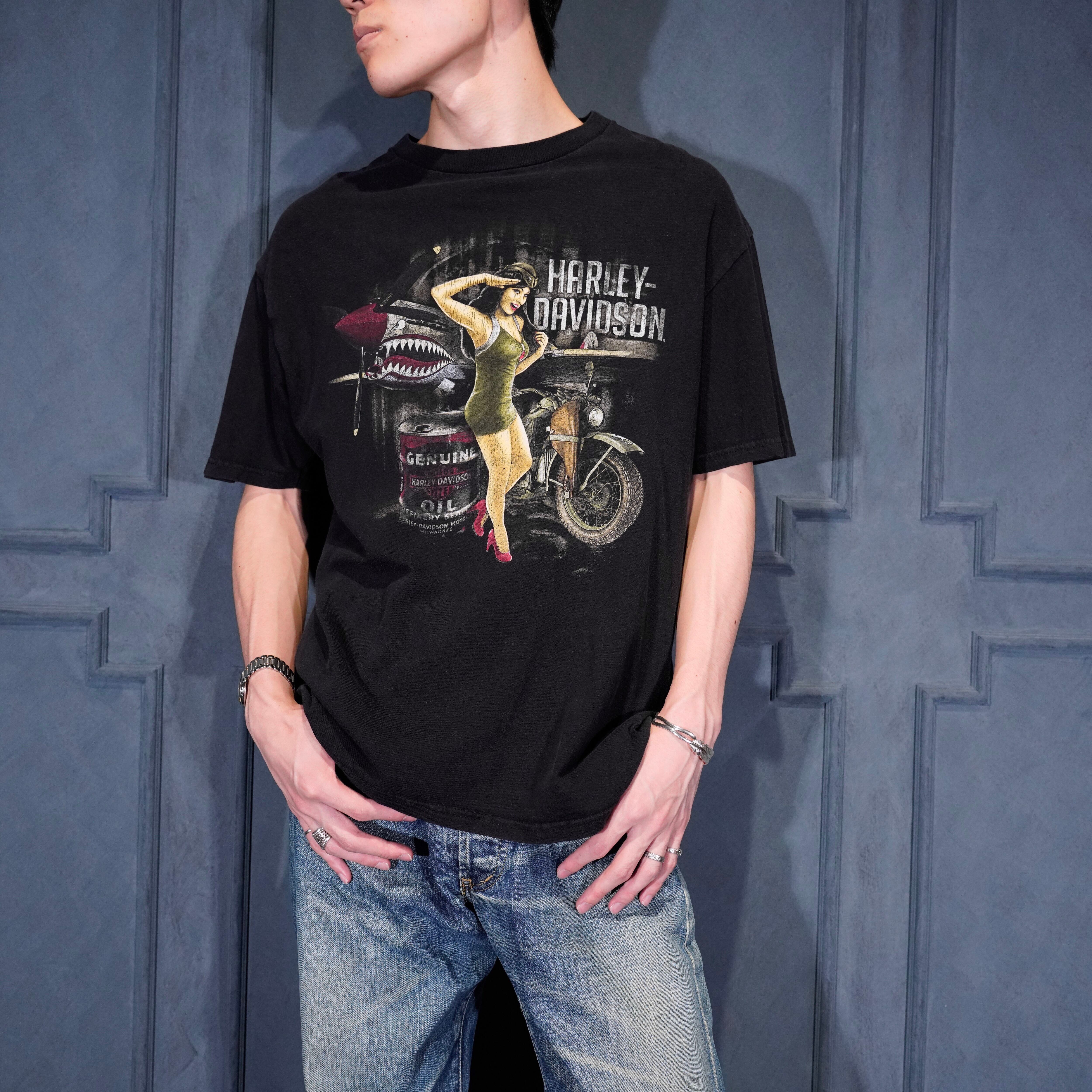 USA VINTAGE HARLEY DAVIDSON DOUBLE SIDED PRINT DESIGN T SHIRT/アメリカ古着ハーレーダヴィッドソン両面プリントデザインTシャツ(コピーライト付)