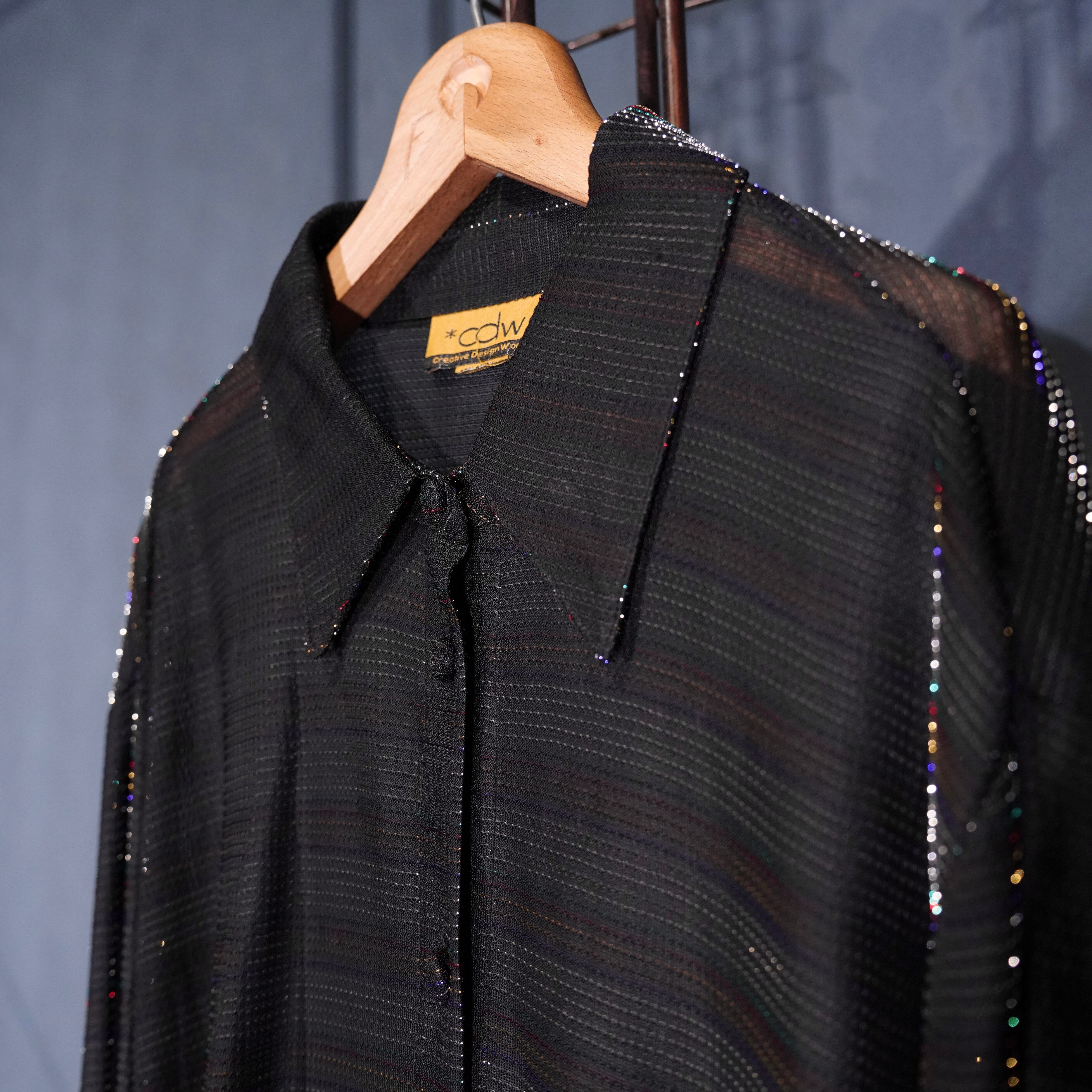 USA VINTAGE cdw GRITTER SHEER DESIGN SHIRT/アメリカ古着グリッターシアーデザインシャツ