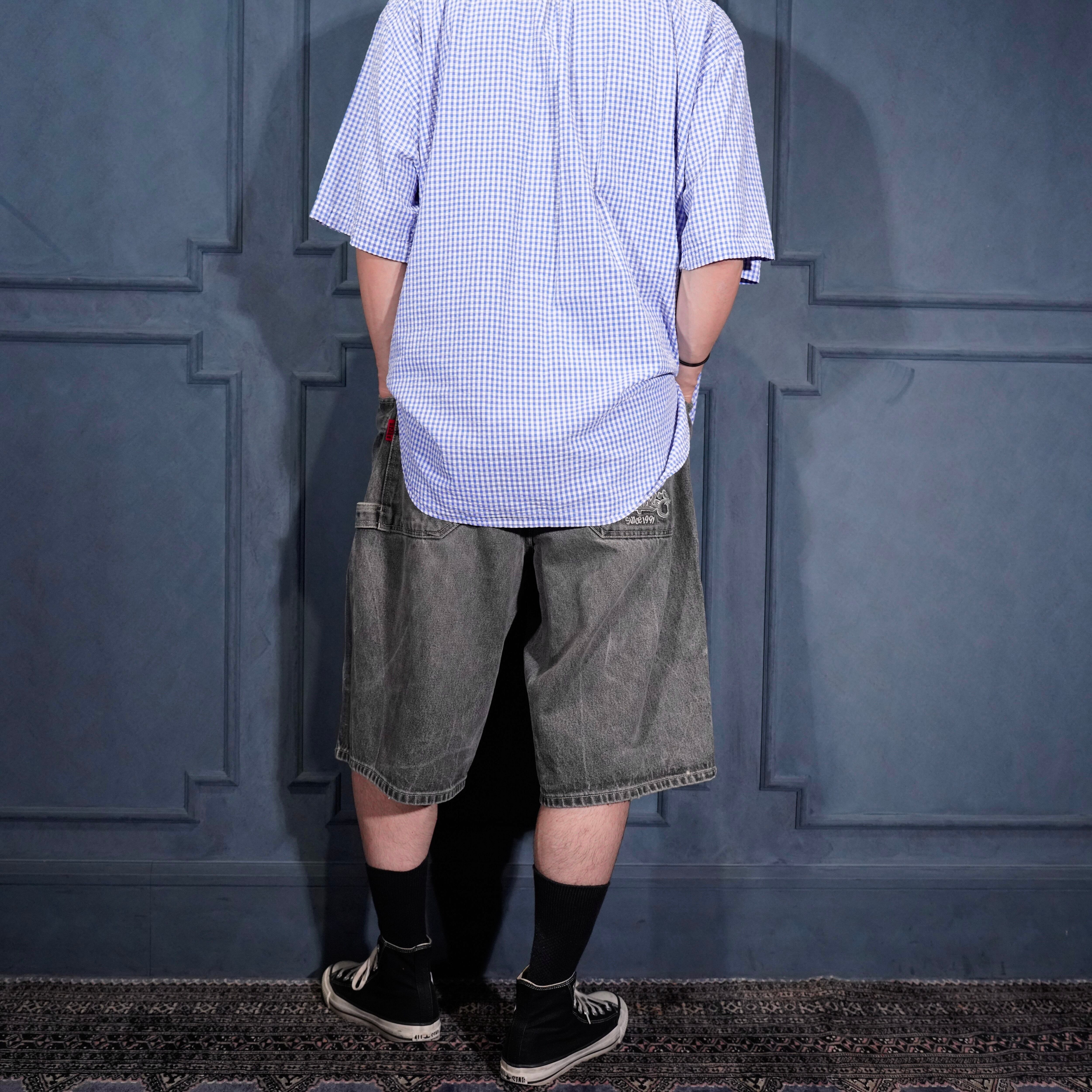 USA VINTAGE SOUTHPOLE FADED DESIGN BLACK DENIM COLOR WIDE DENIM SHORTS/アメリカ古着サウスポールブラックカラーワイドデニムショーツ(ショートパンツ/ハーフパンツ)
