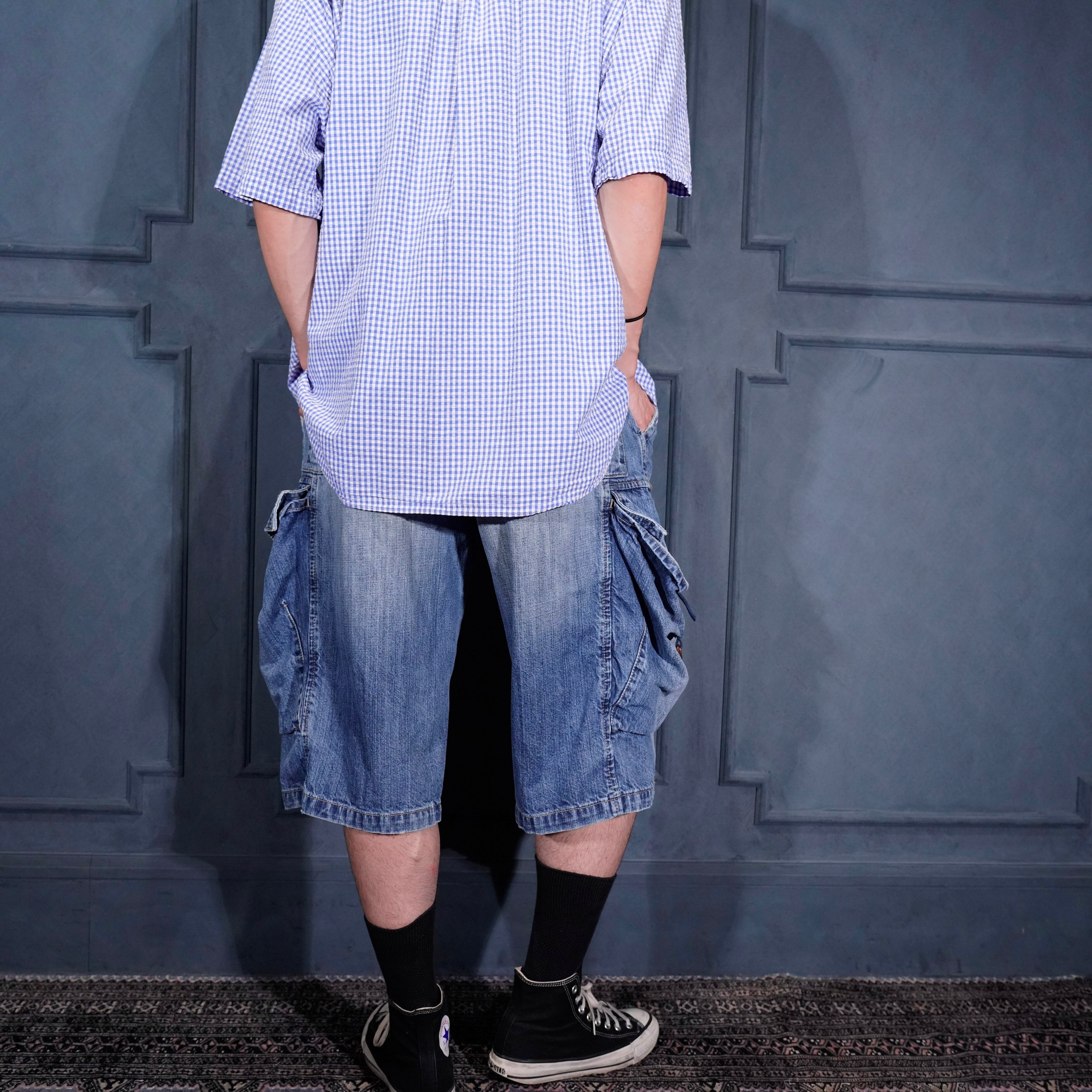 EU VINTAGE LE JEAN DE MARITHE FRANCOIS GIRBAUD WIDE CARGO DENIM SHORTS/ヨーロッパ古着マリテフランソワジルボーワイドカーゴデニムショーツ(ショートパンツ/ハーフパンツ)