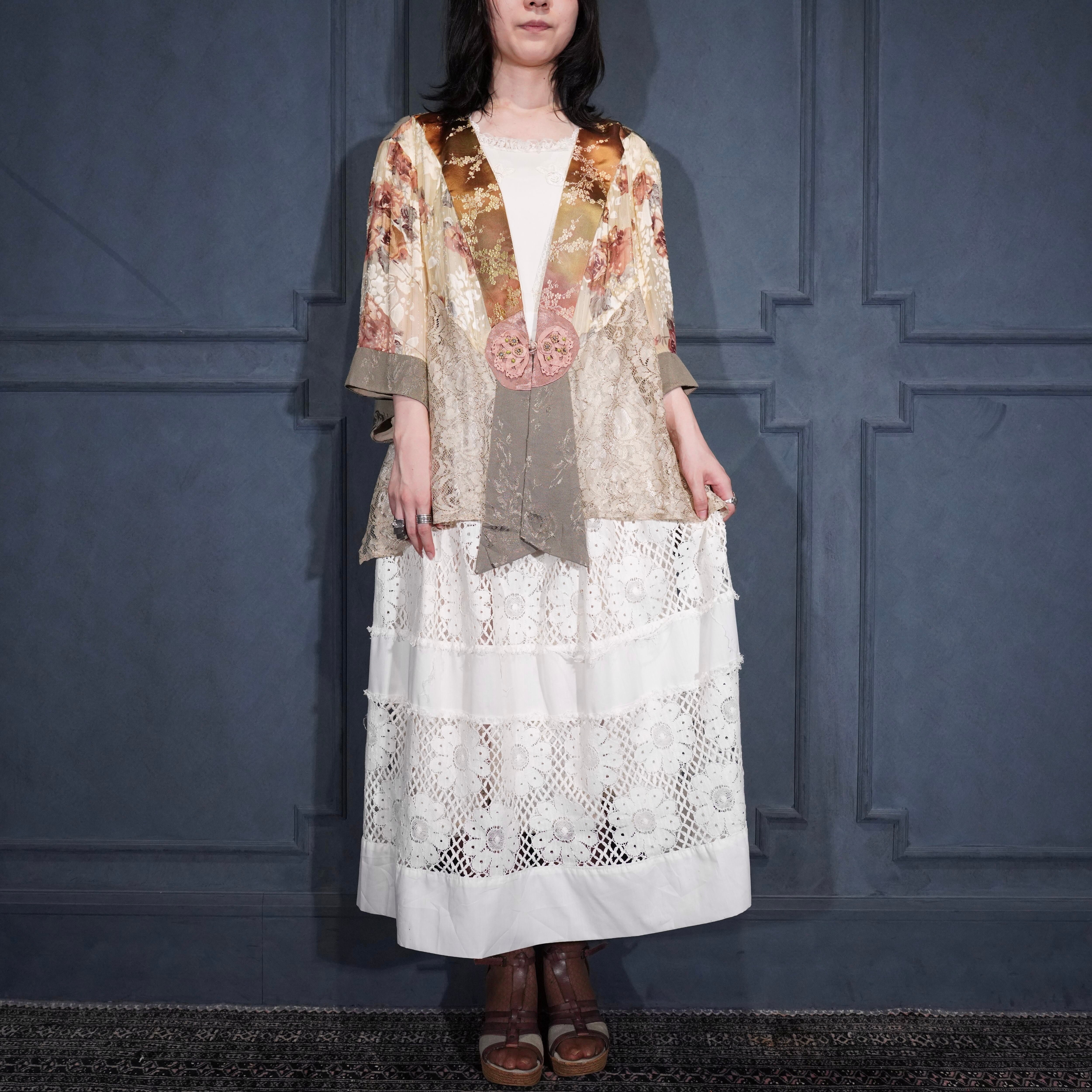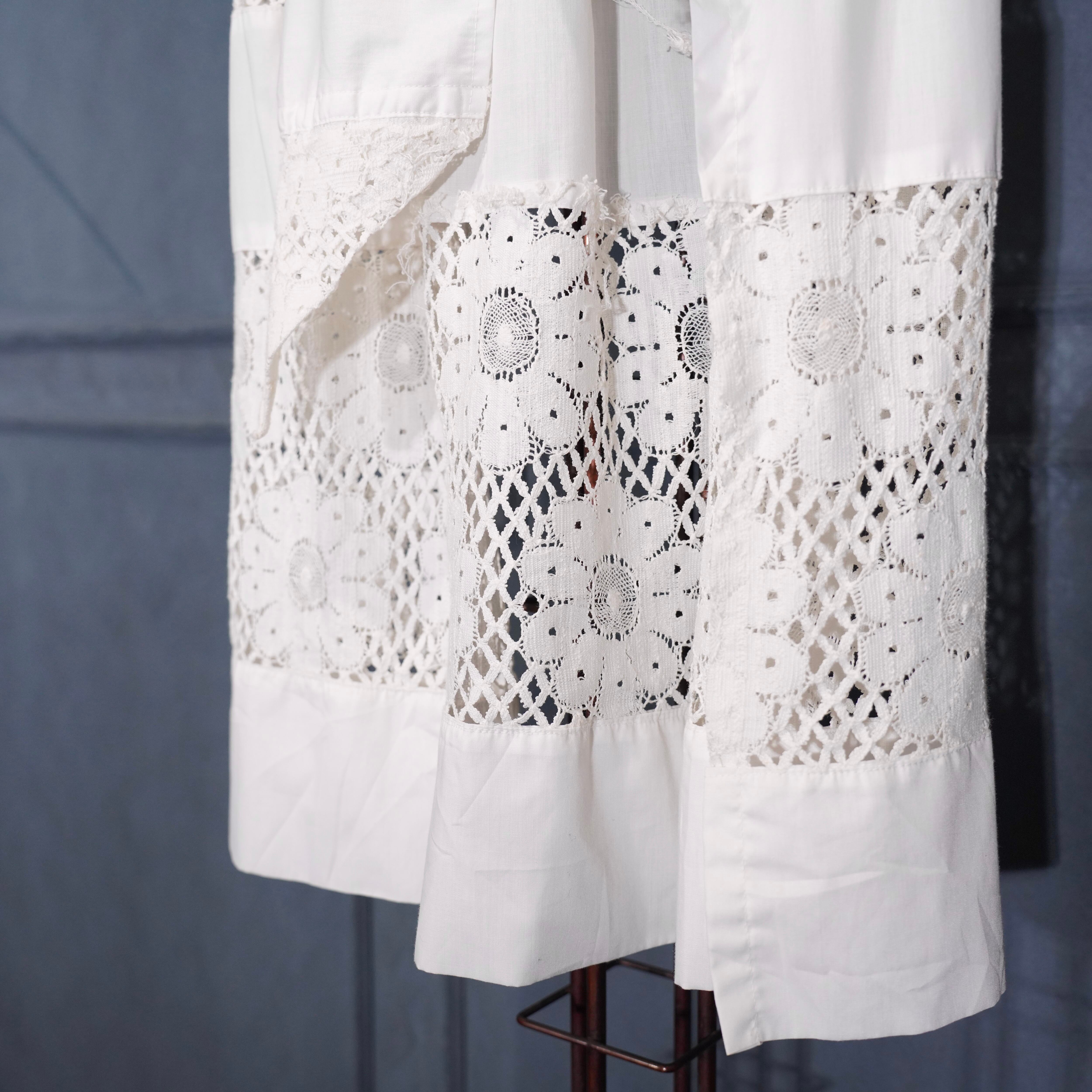 60's~70's USA VINTAGE FLOWER LACE DESIGN APRON/60年代~70年代アメリカ古着お花レースデザインエプロン