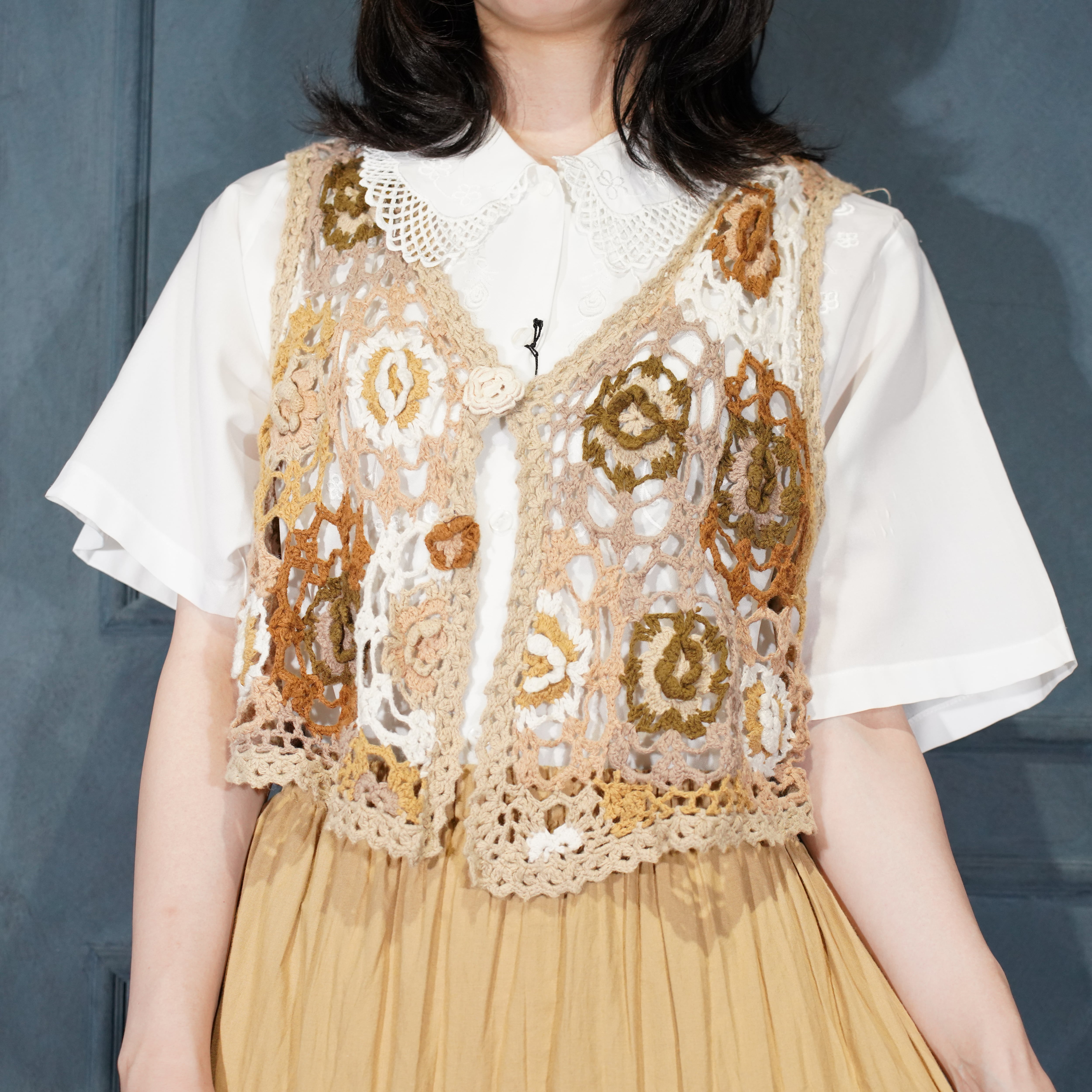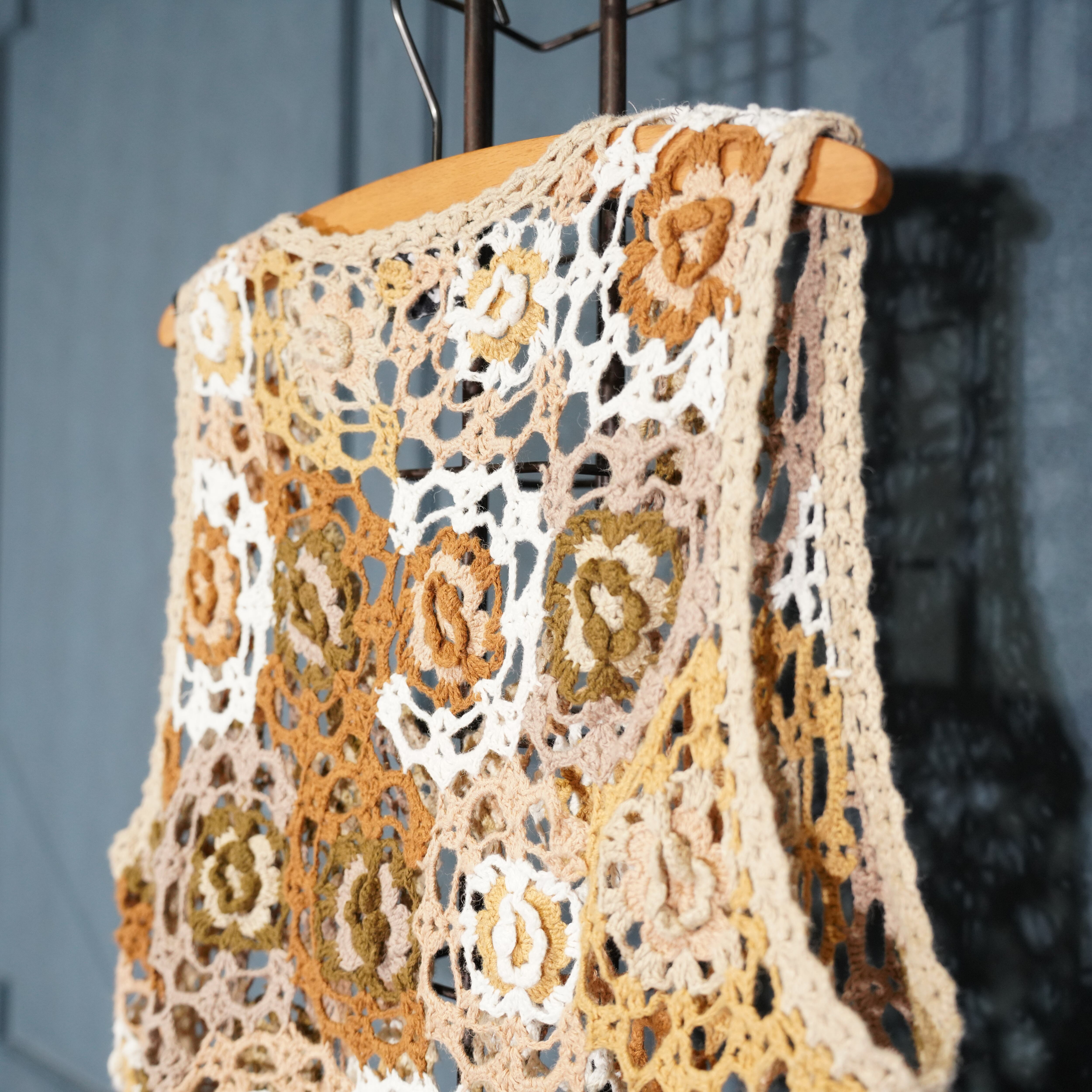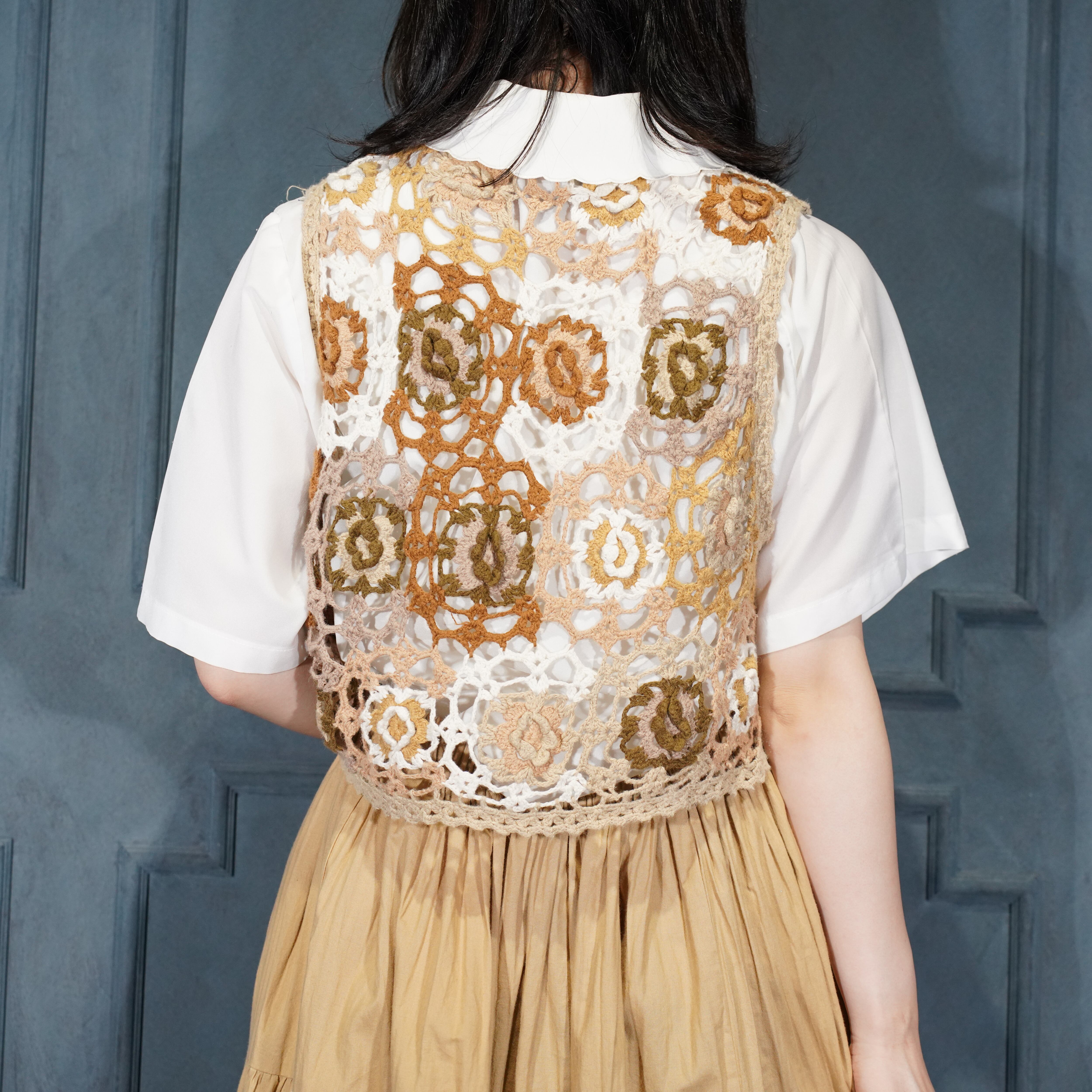 USA VINTAGE my FLOWER PATTERNED LACE CROCHET DESIGN KNIT VEST/アメリカ古着お花柄レース鍵編みデザインニットベスト