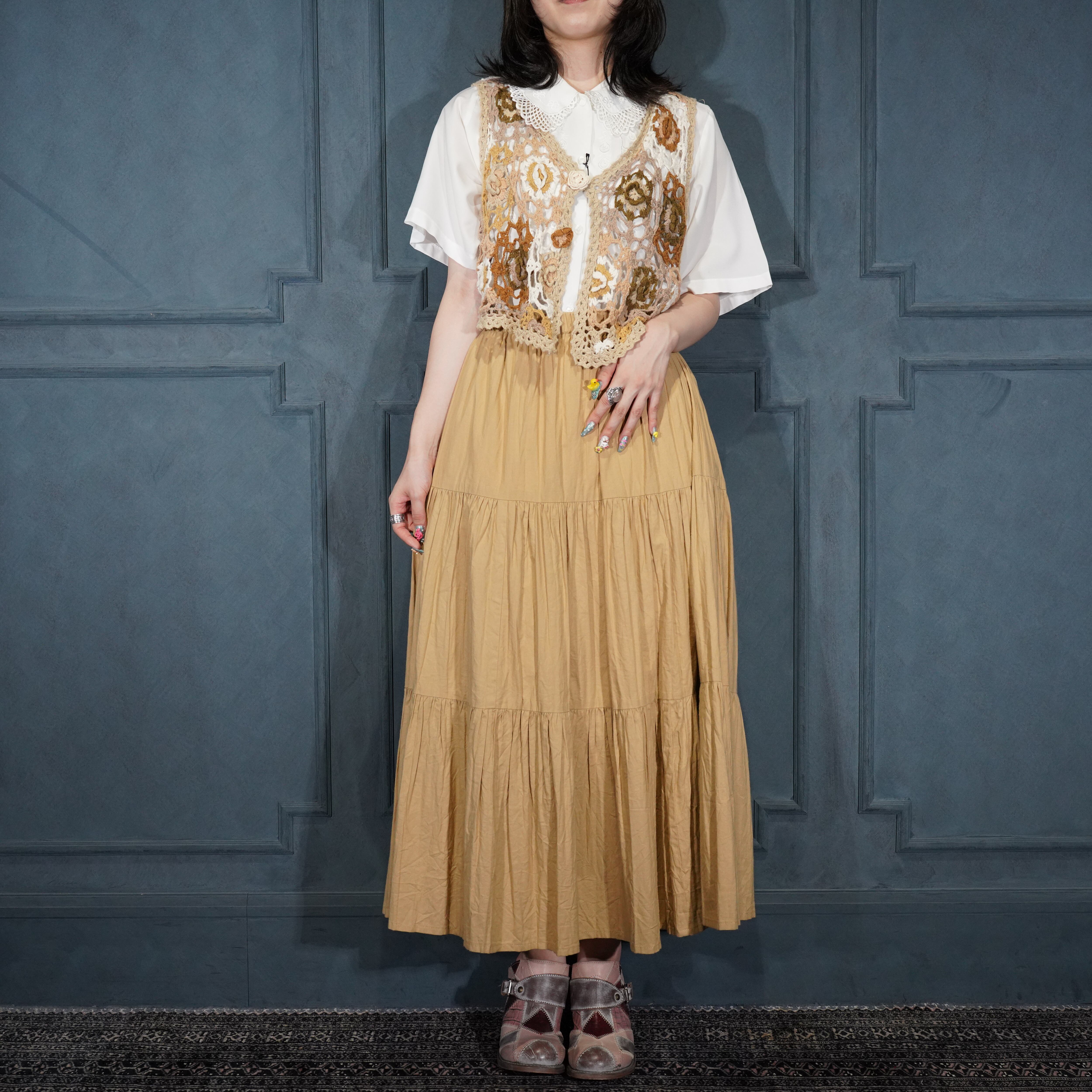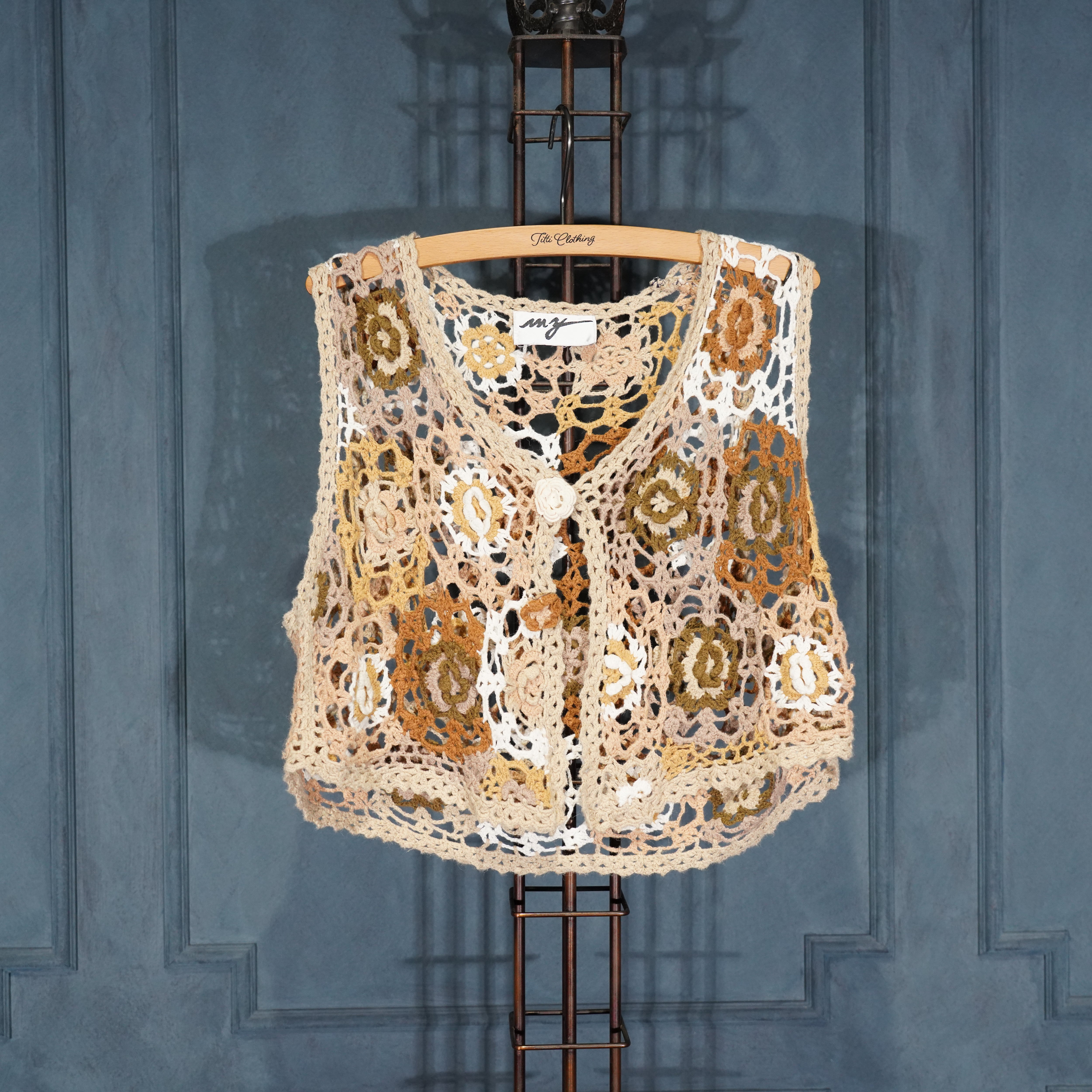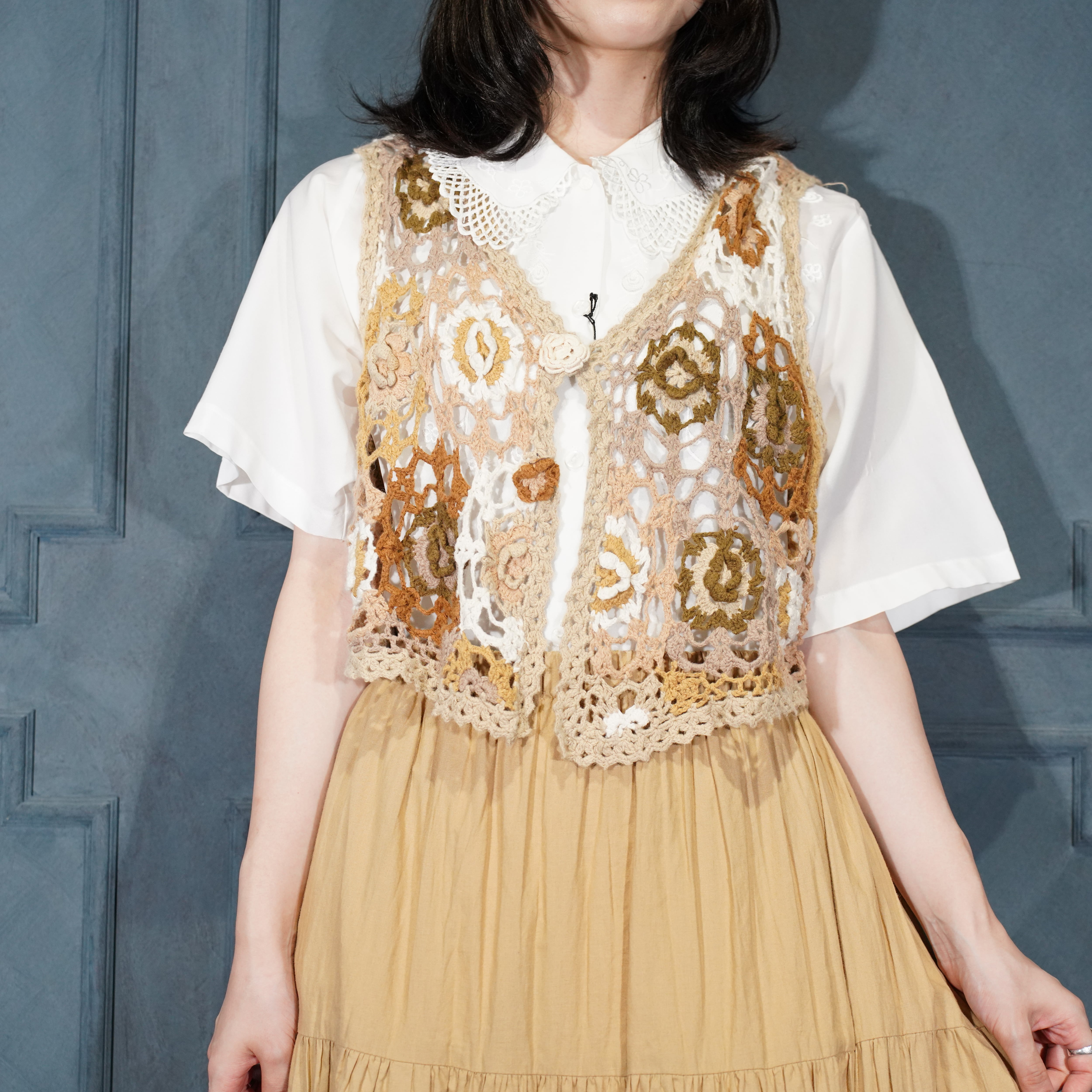USA VINTAGE my FLOWER PATTERNED LACE CROCHET DESIGN KNIT VEST/アメリカ古着お花柄レース鍵編みデザインニットベスト