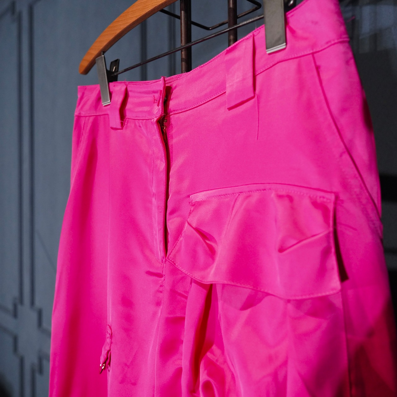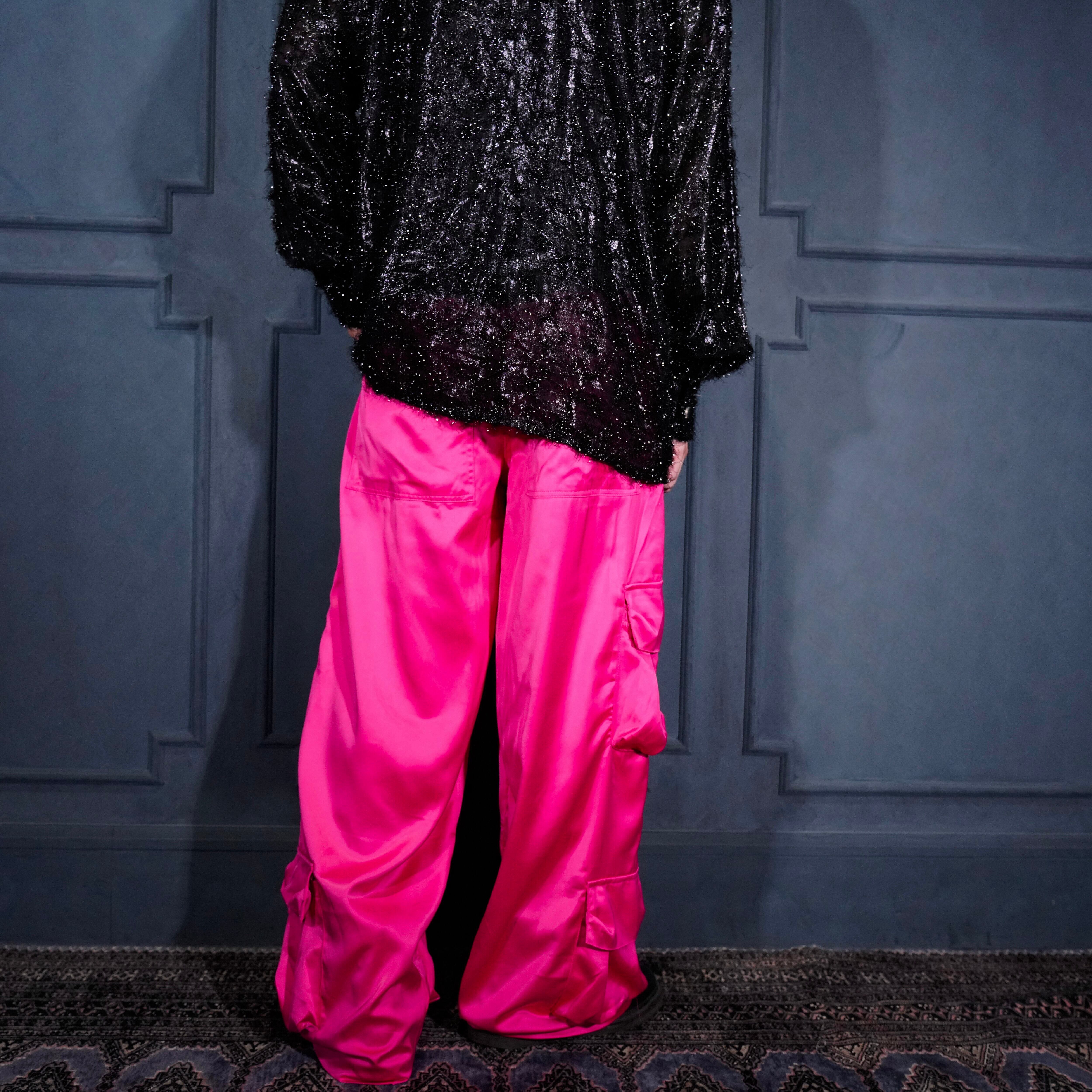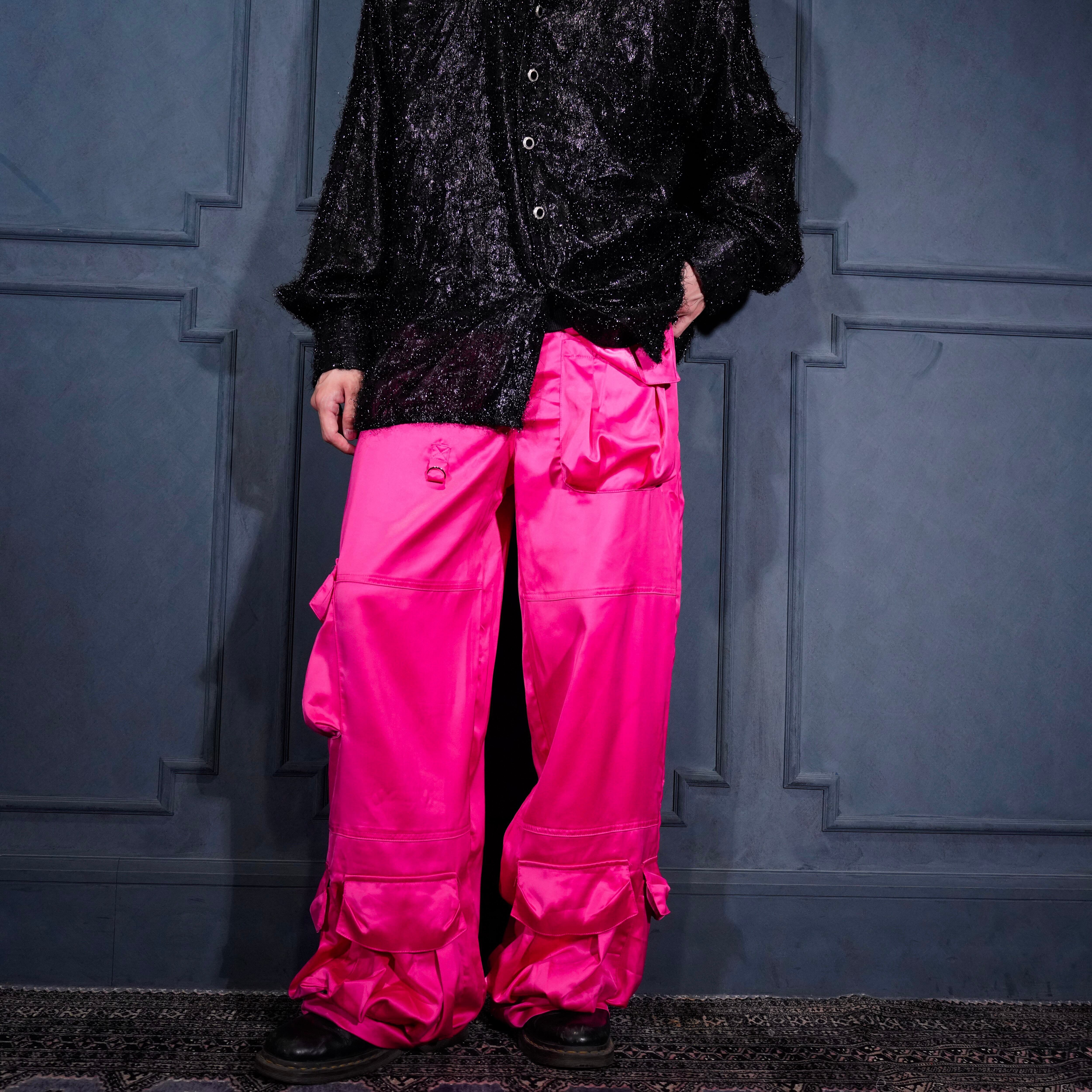 USA VINTAGE LILIZETTE COLLECTION PINK COLOR WIDE FLARE SATIN CARGO PANTS/アメリカ古着ピンクカラーワイドフレアサテンカーゴパンツ