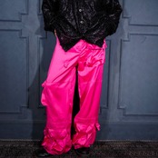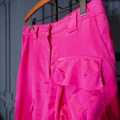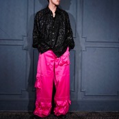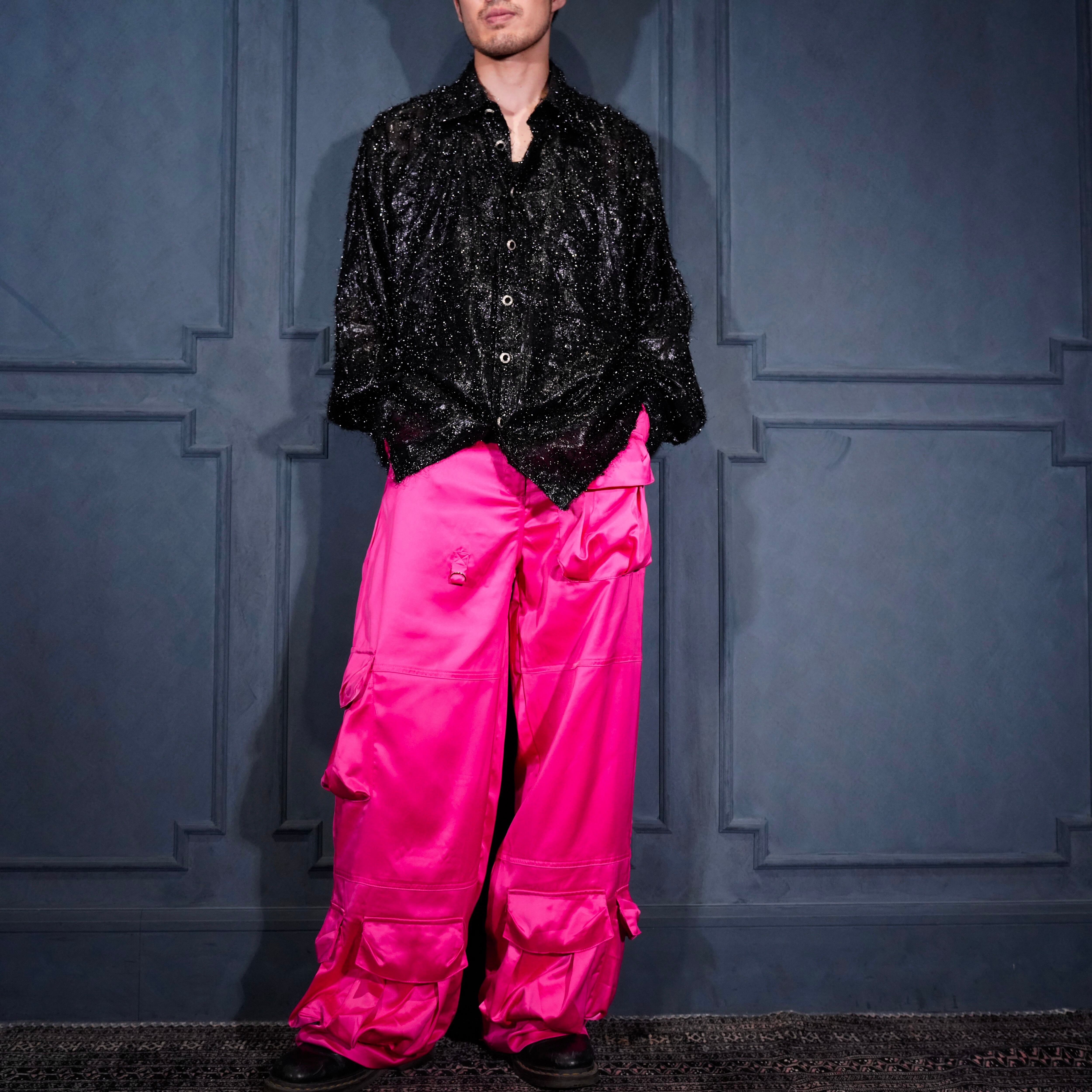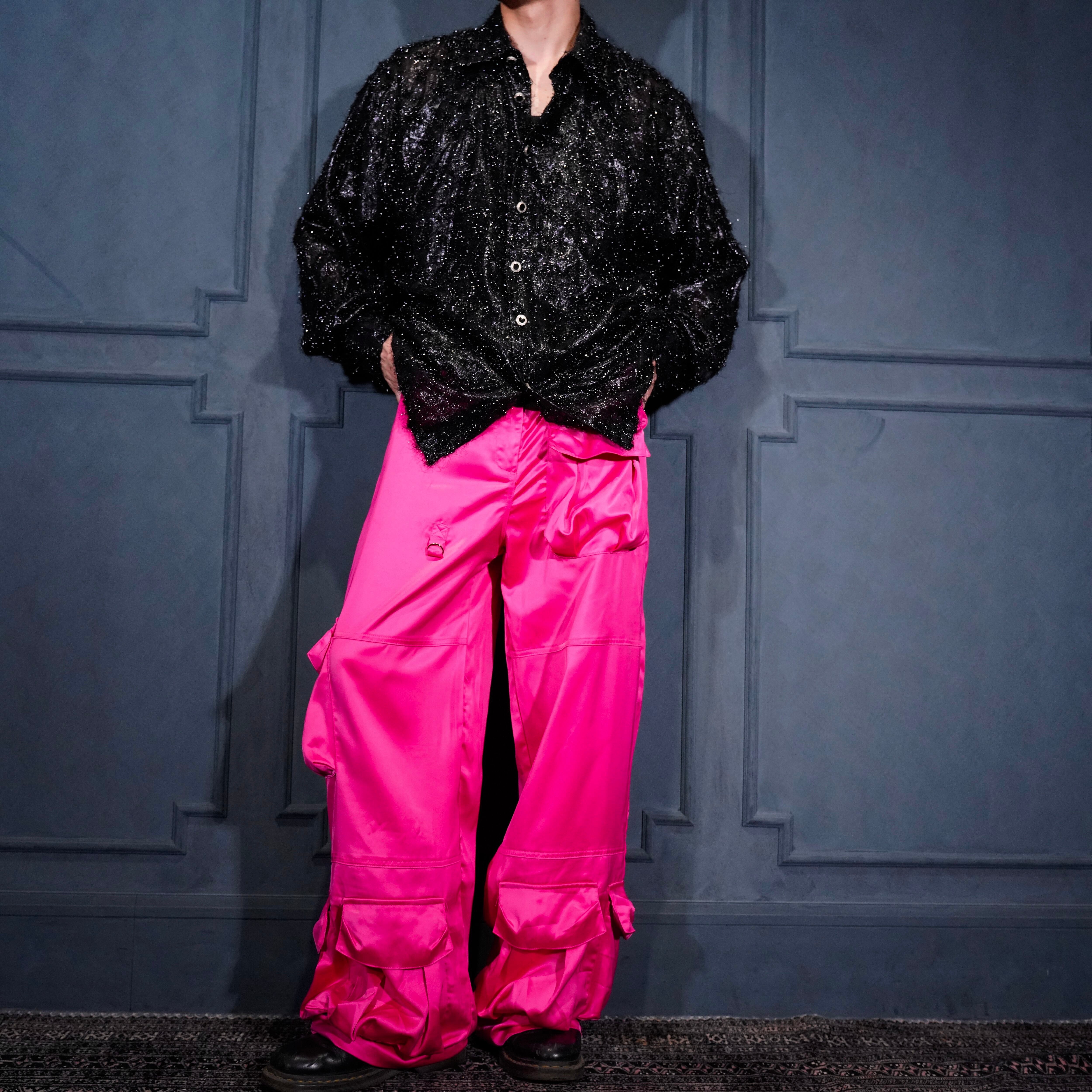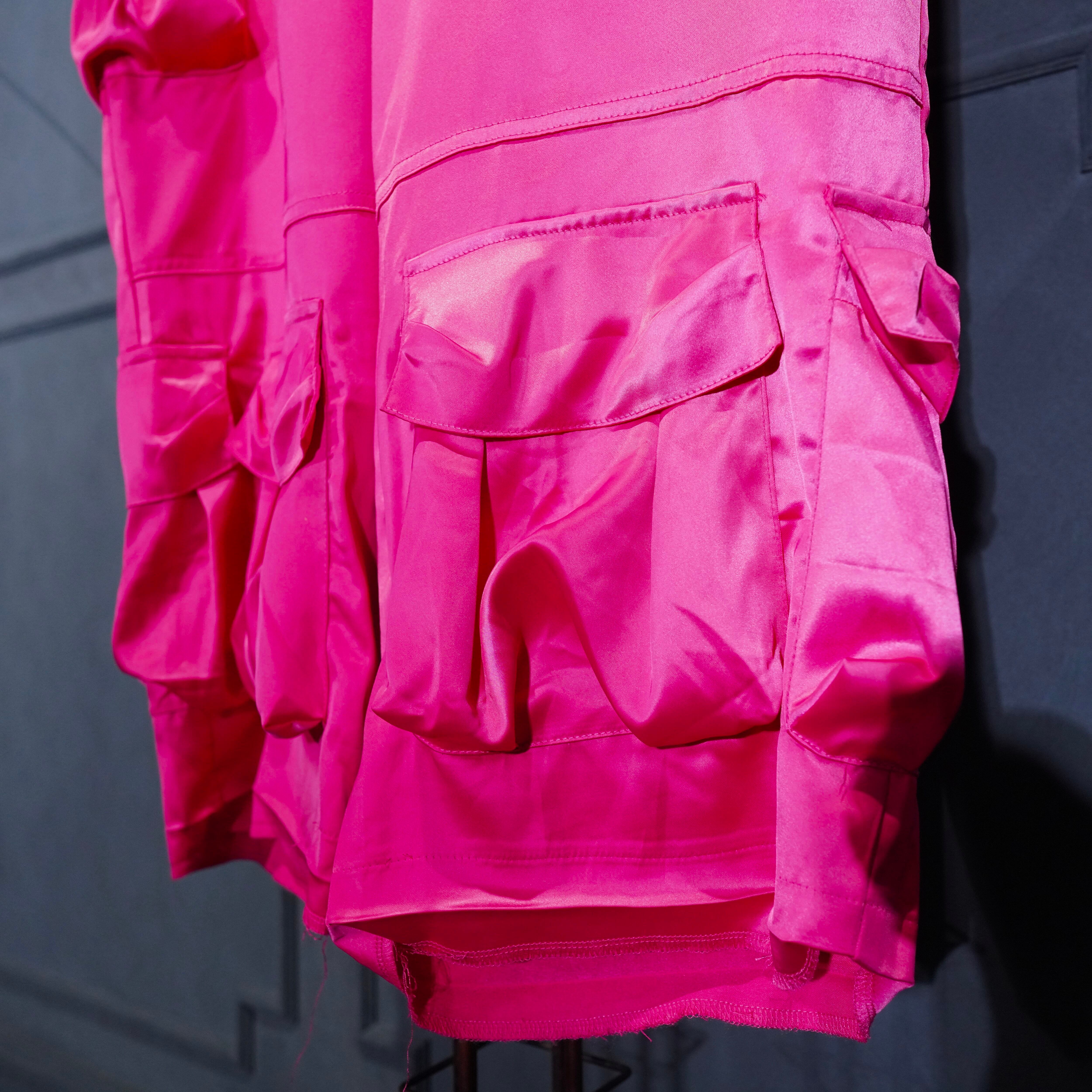 USA VINTAGE LILIZETTE COLLECTION PINK COLOR WIDE FLARE SATIN CARGO PANTS/アメリカ古着ピンクカラーワイドフレアサテンカーゴパンツ