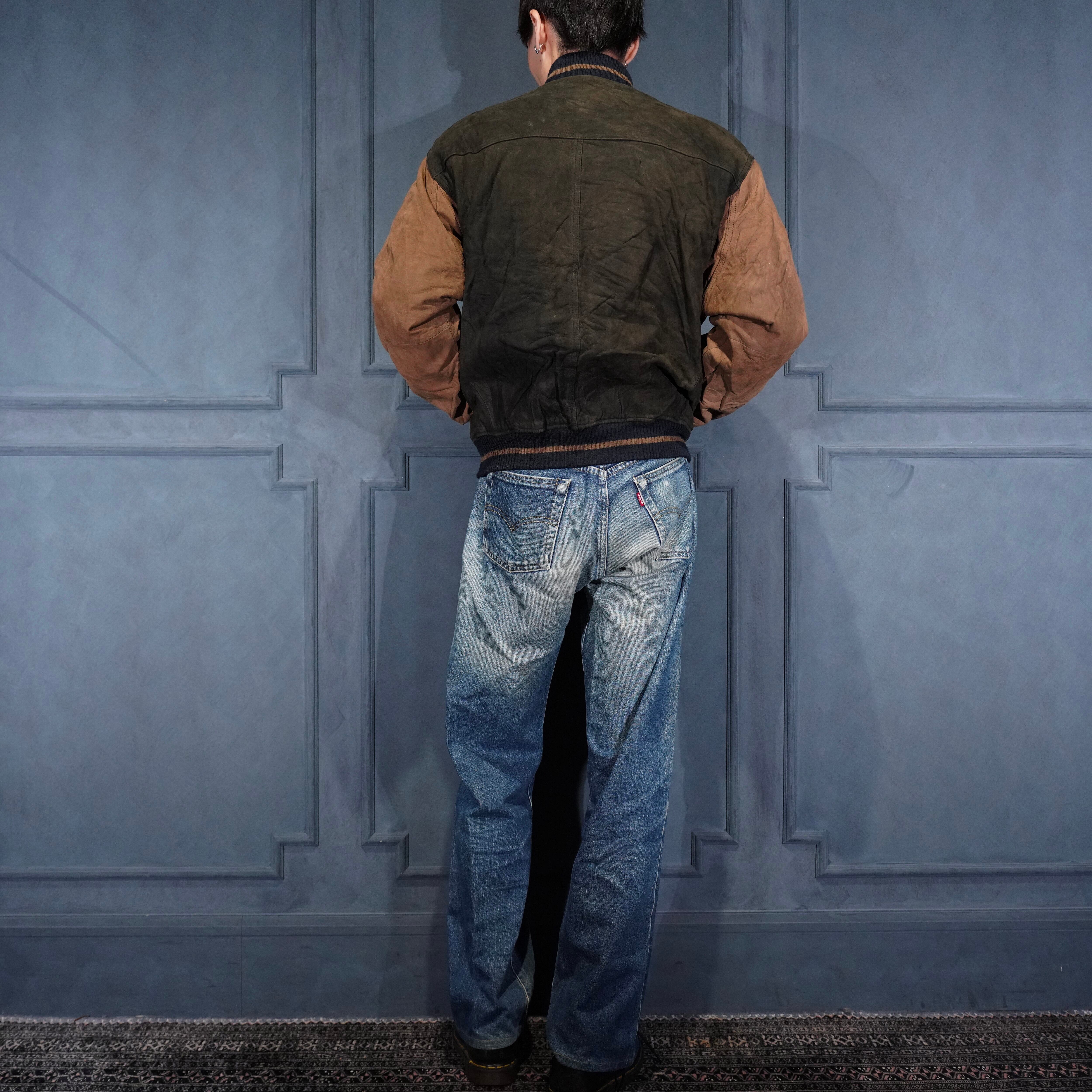USA VINTAGE WINLIT BICOLOR LEATHER ZIP BLOUSON/アメリカ古着バイカラーレザージップブルゾン