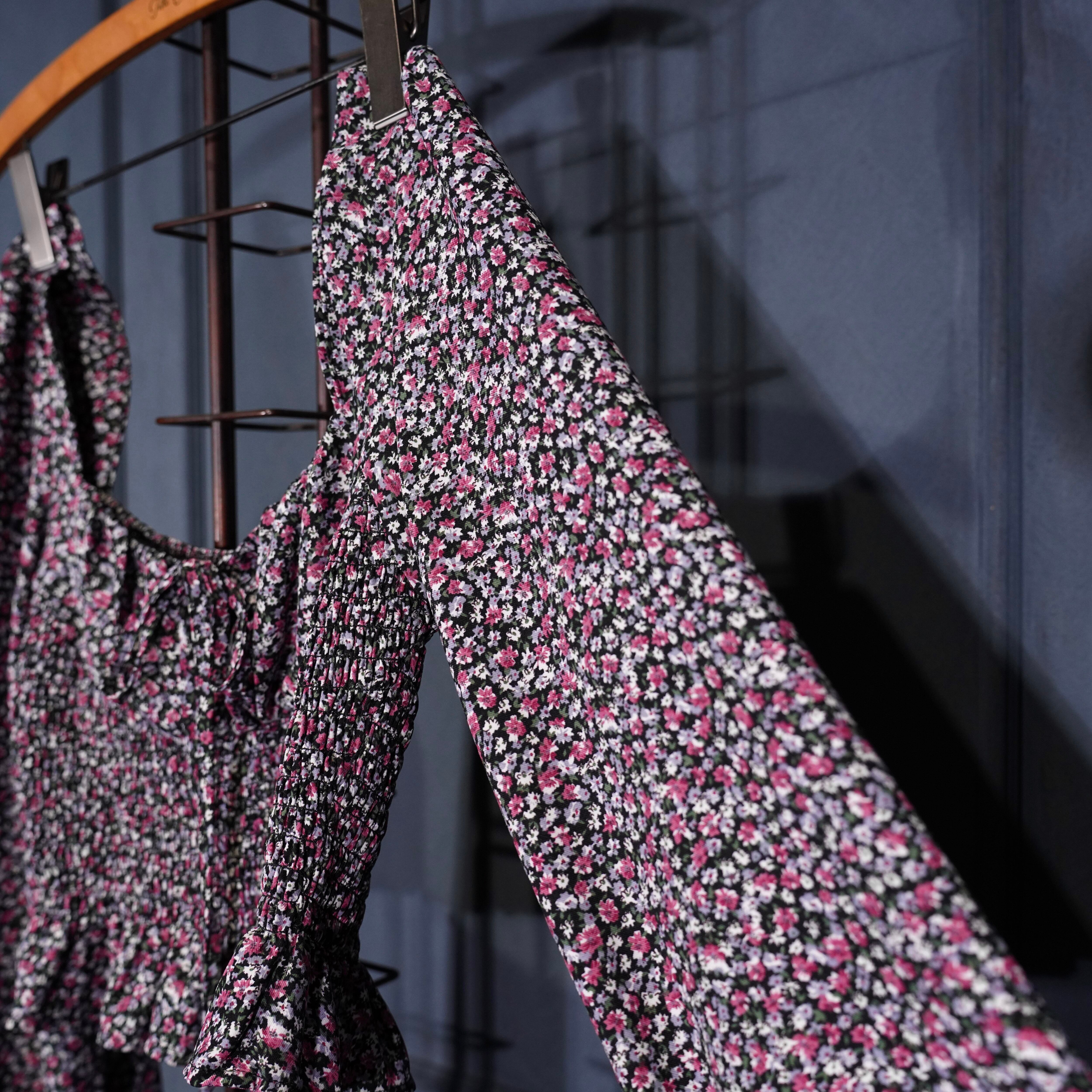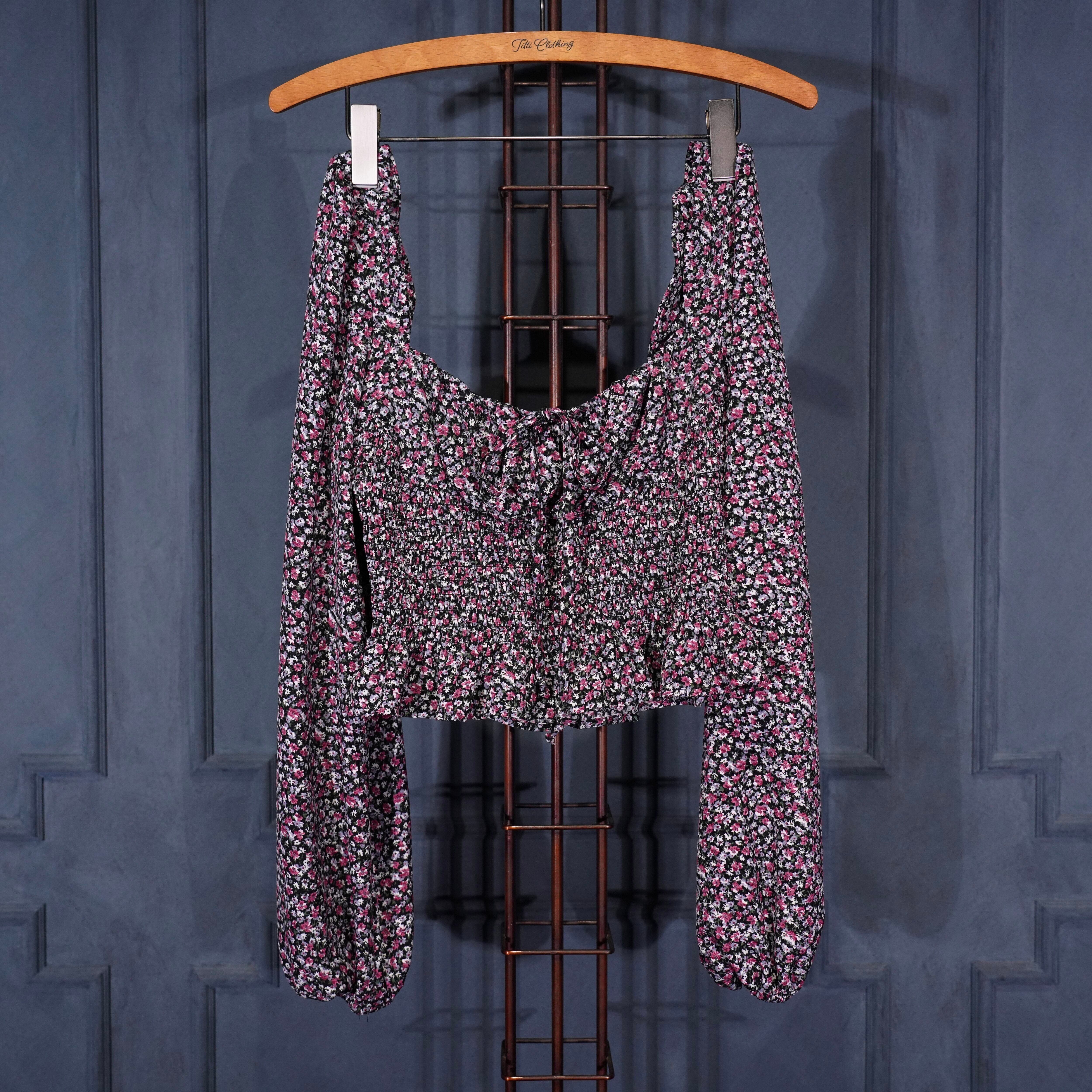 USA VINTAGE FLOWER PATTERNED OFF SHOULDER TOPS/アメリカ古着お花柄オフショルダートップス