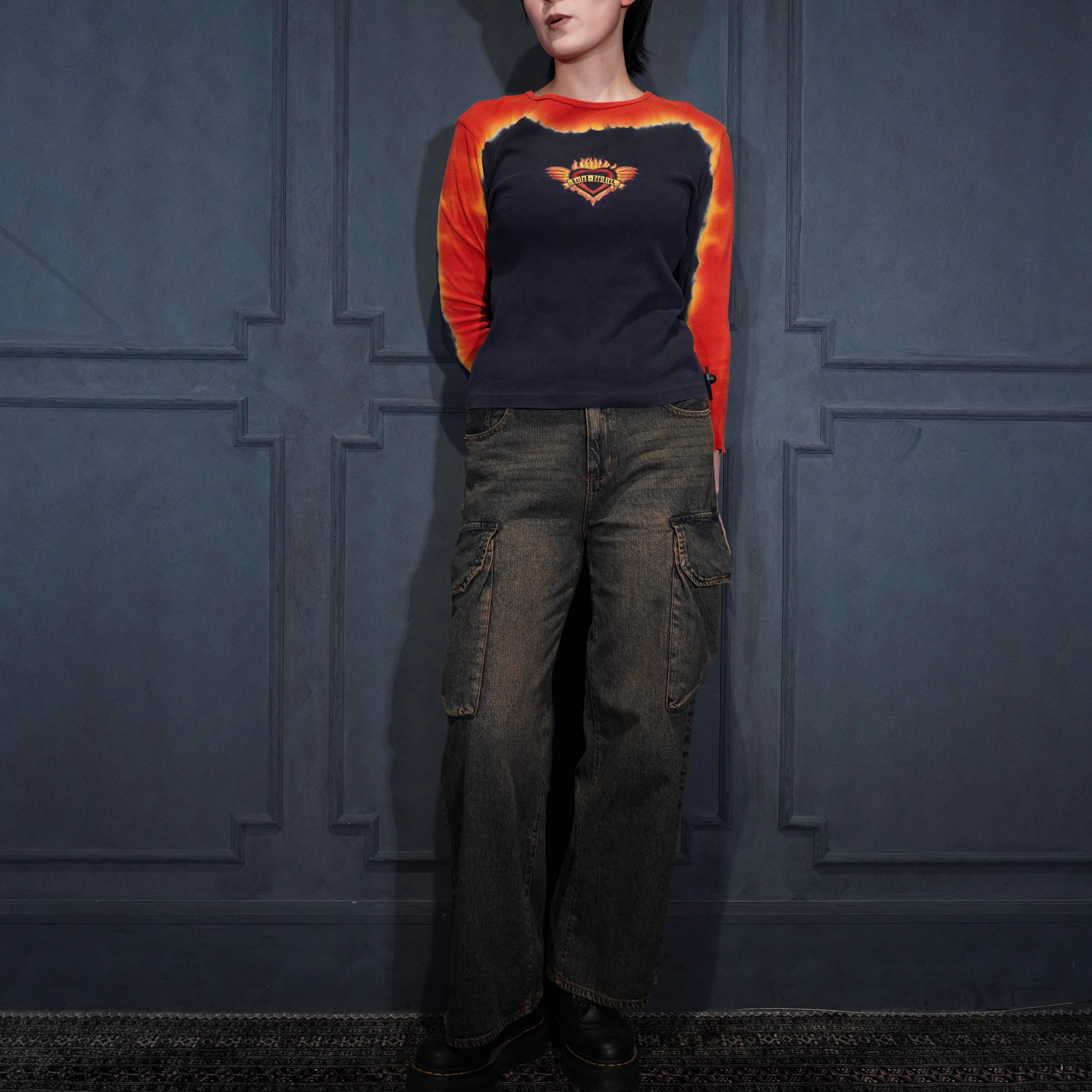 USA VINTAGE HARLEY DAVIDSON GRADATION HEART DESIGN LONG SLEEVE T SHIRT/アメリカ古着ハーレーダヴィッドソングラデーションハートデザイン長袖Tシャツ(カットソー)