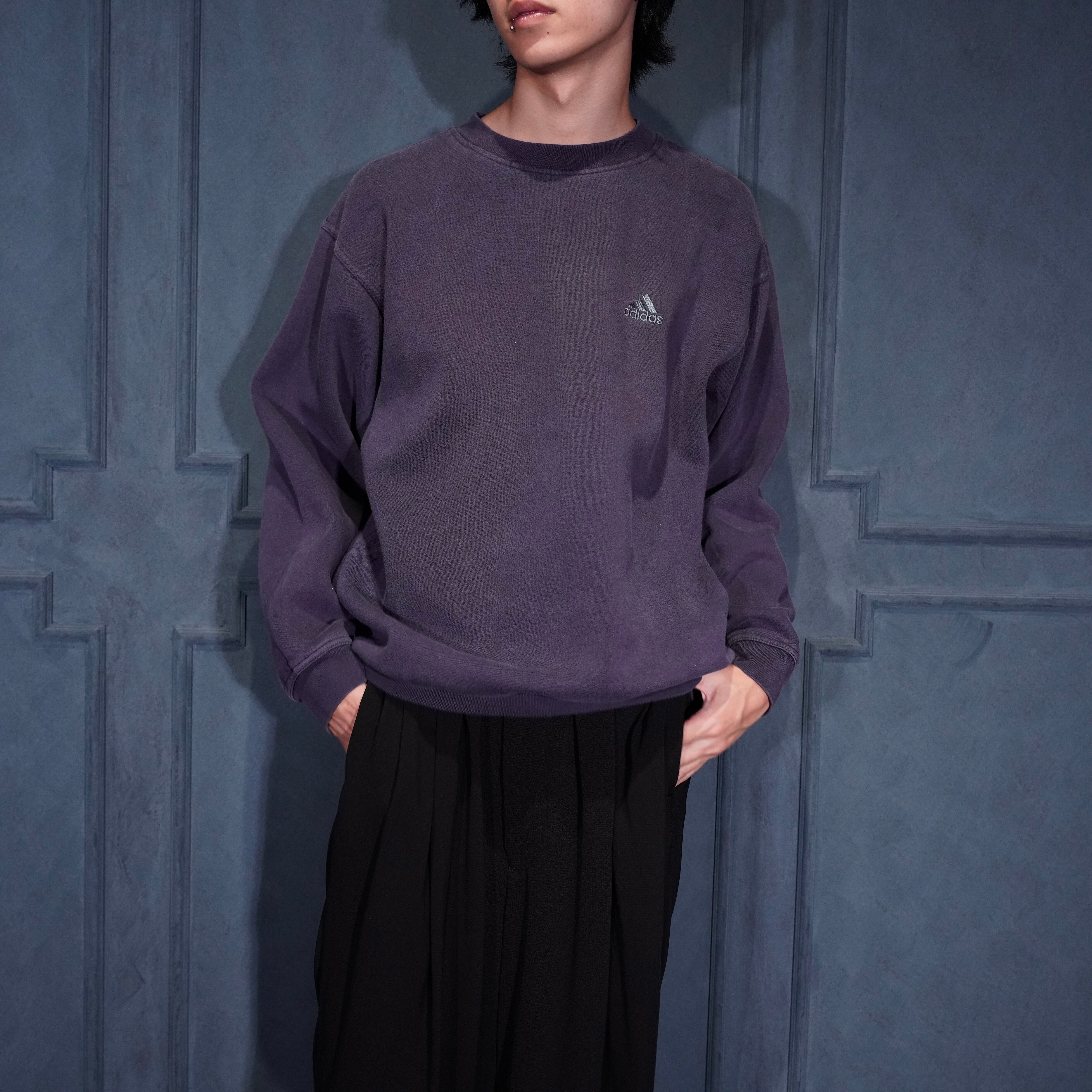 90's EU VINTAGE adidas LOGO EMBROIDERY FADED DESIGN SWEAT SHIRT MADE IN TURKEY/90年代ヨーロッパ古着アディダスロゴ刺繍フェードデザインスウェット