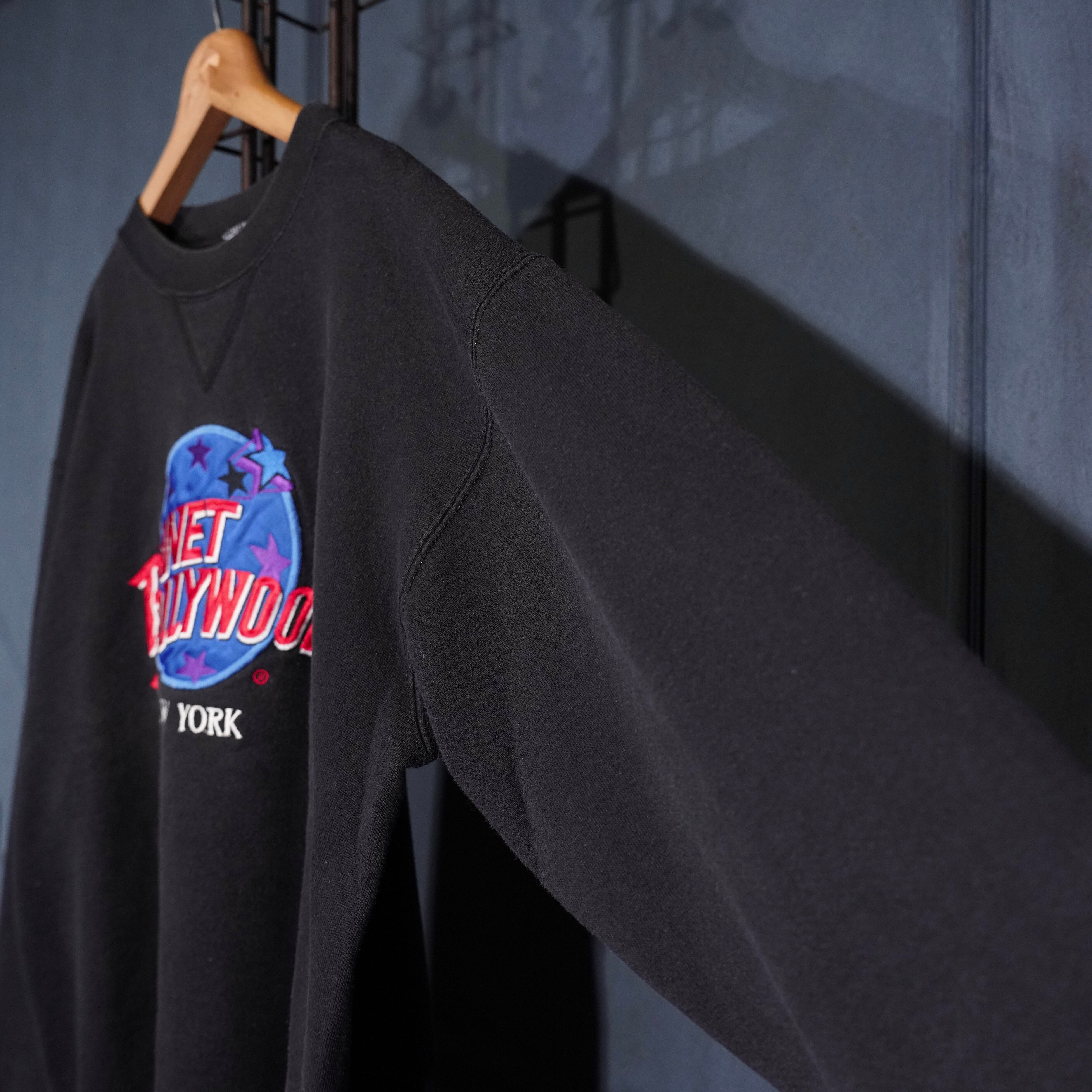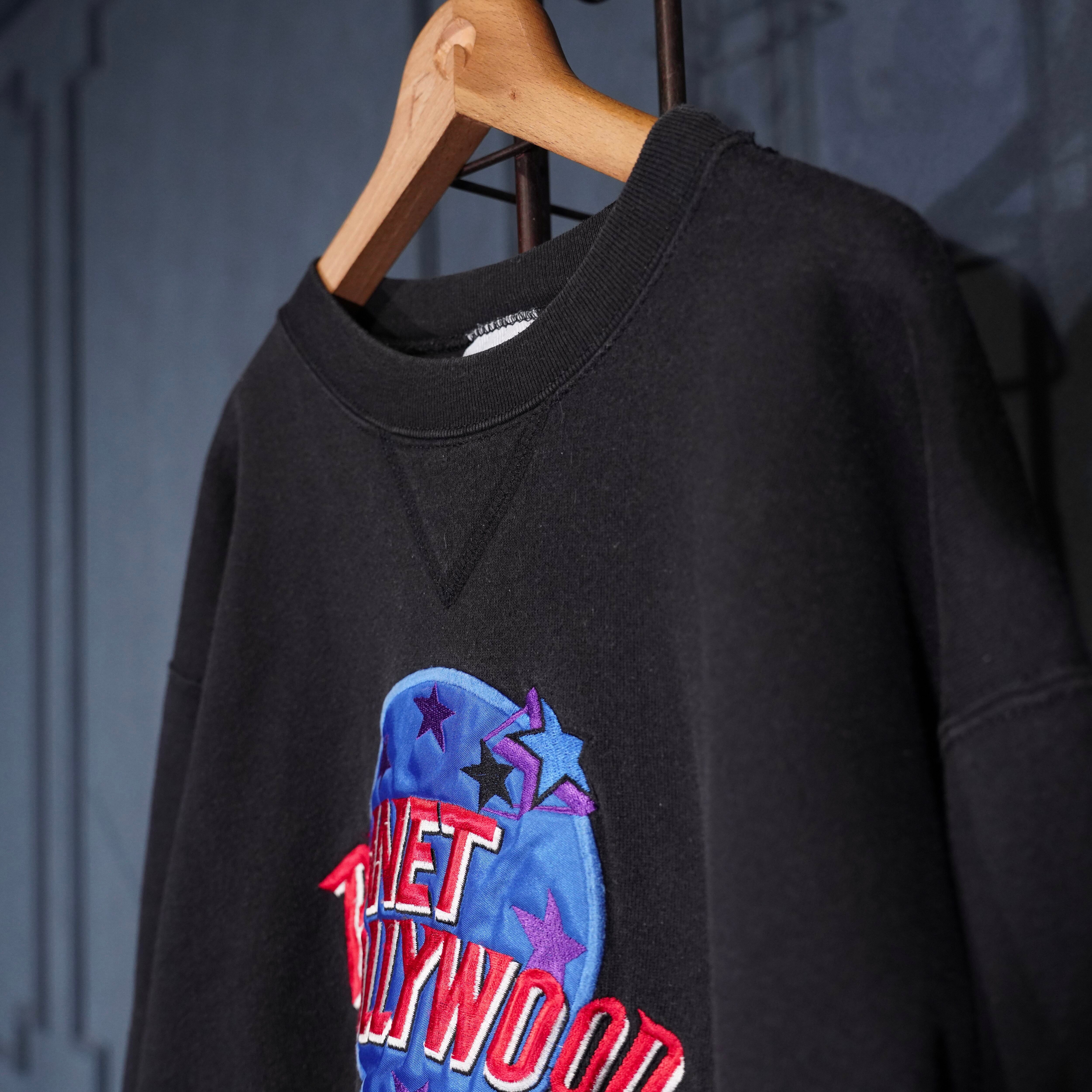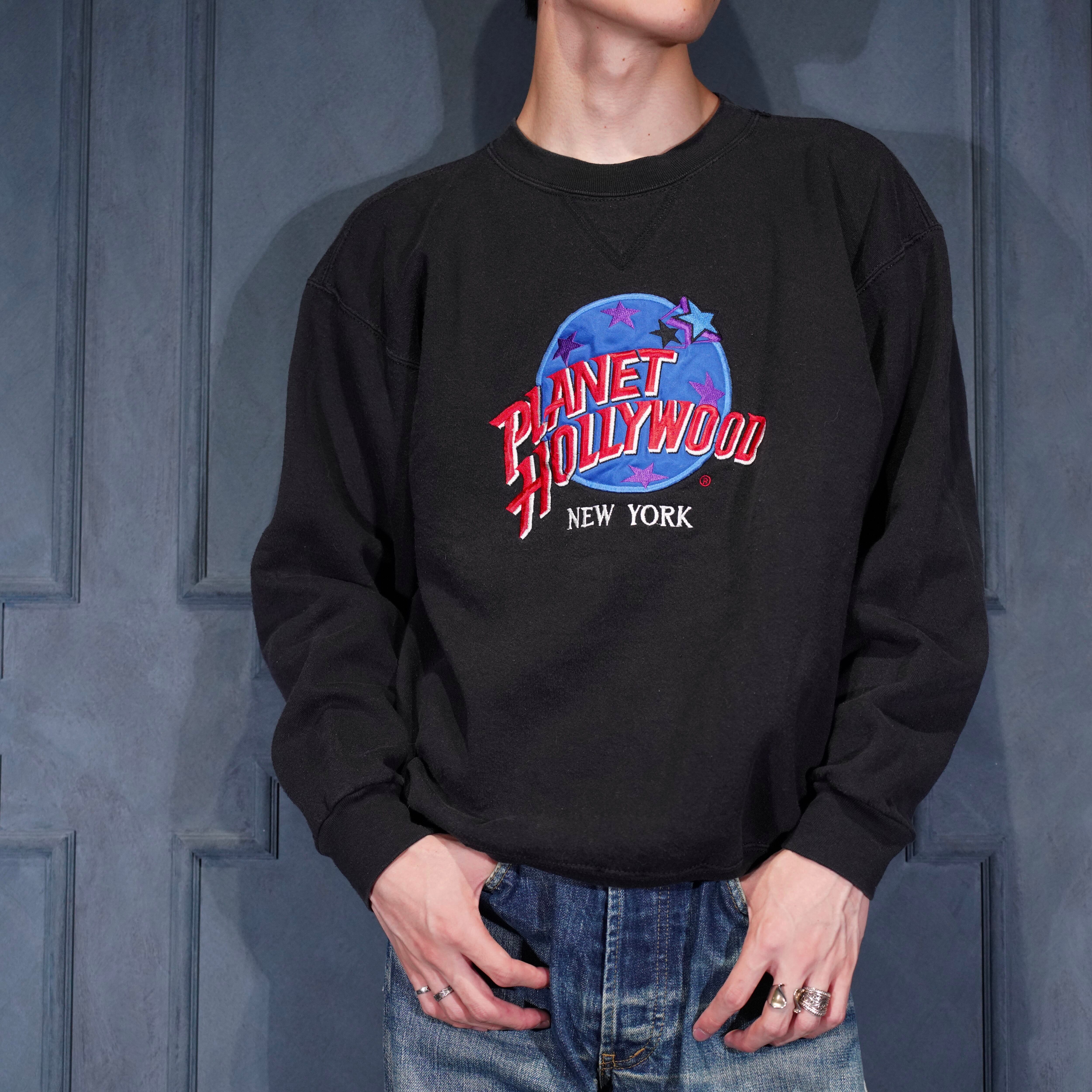 90's USA VINTAGE PLANET HOLLYWOOD NEW YORK LOGO EMBROIDERY DESIGN SWEAT SHIRT/90年代アメリカ古着ロゴ刺繍デザインスウェット