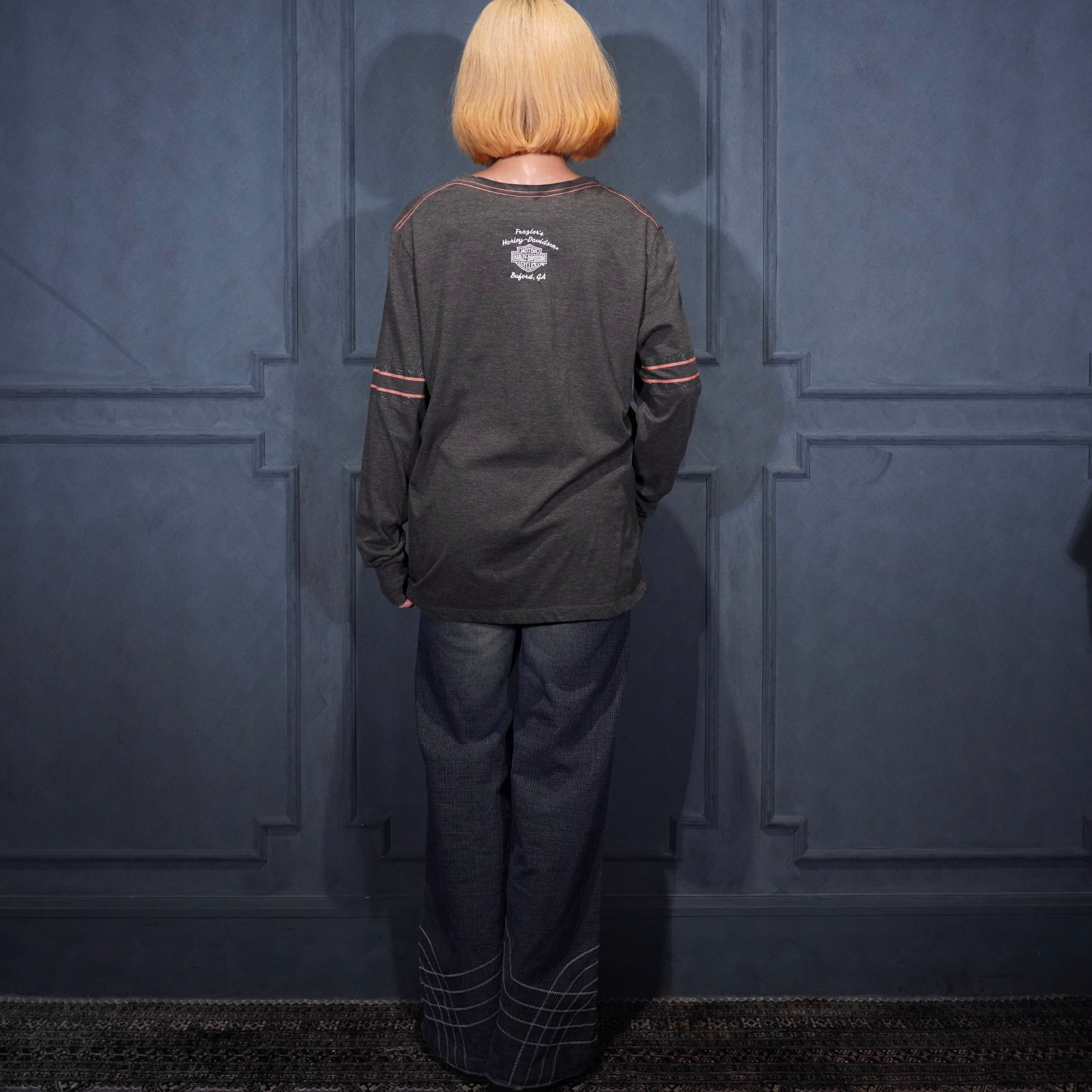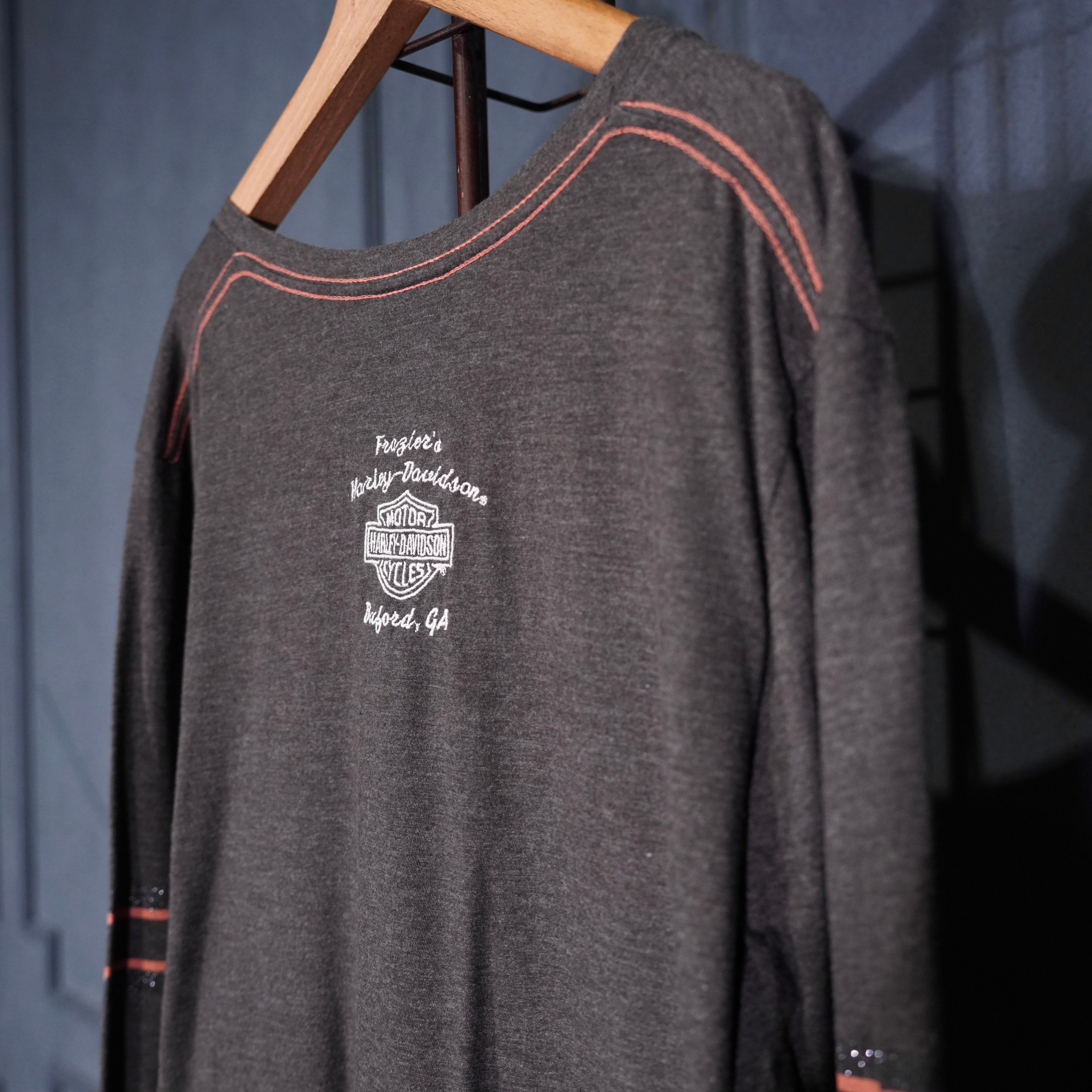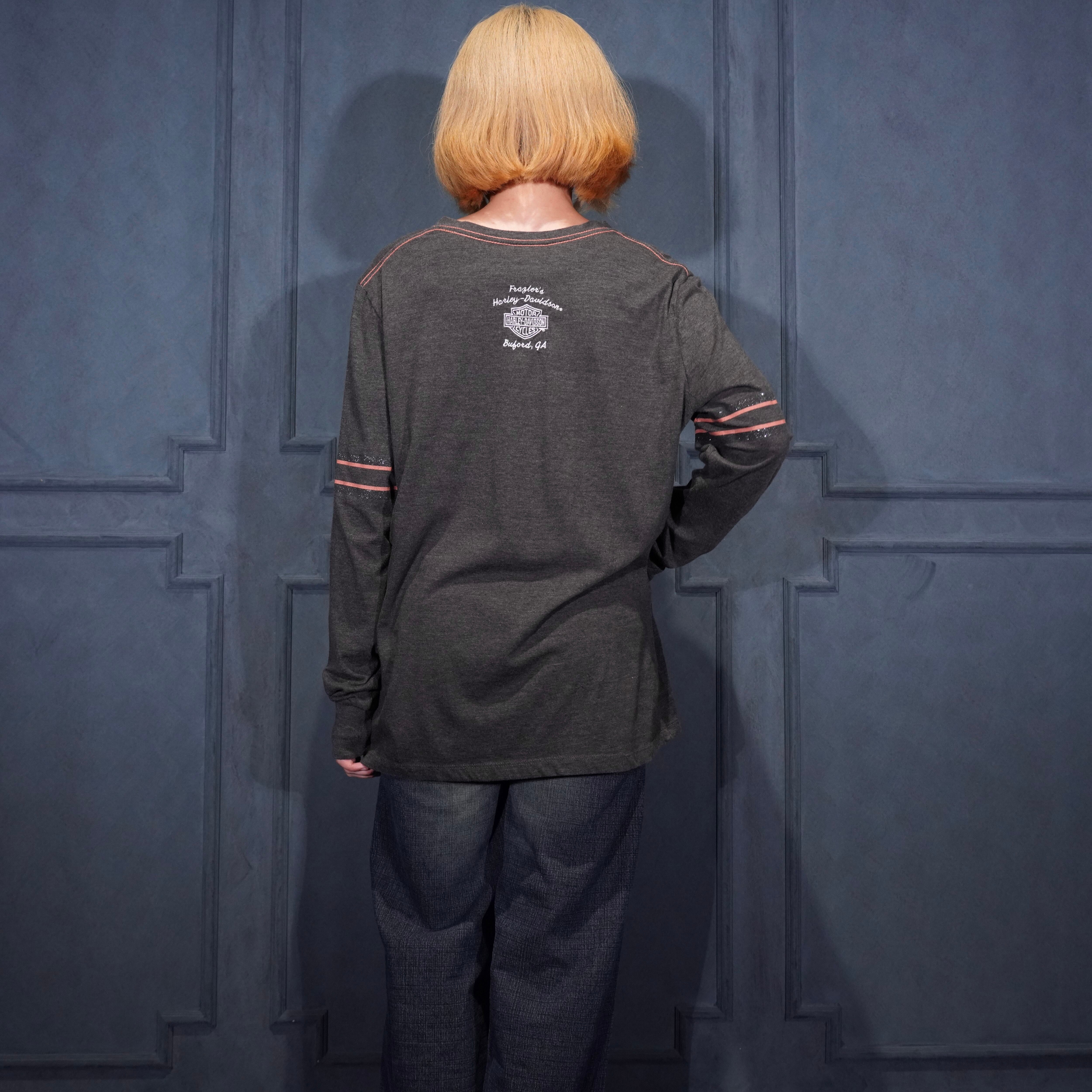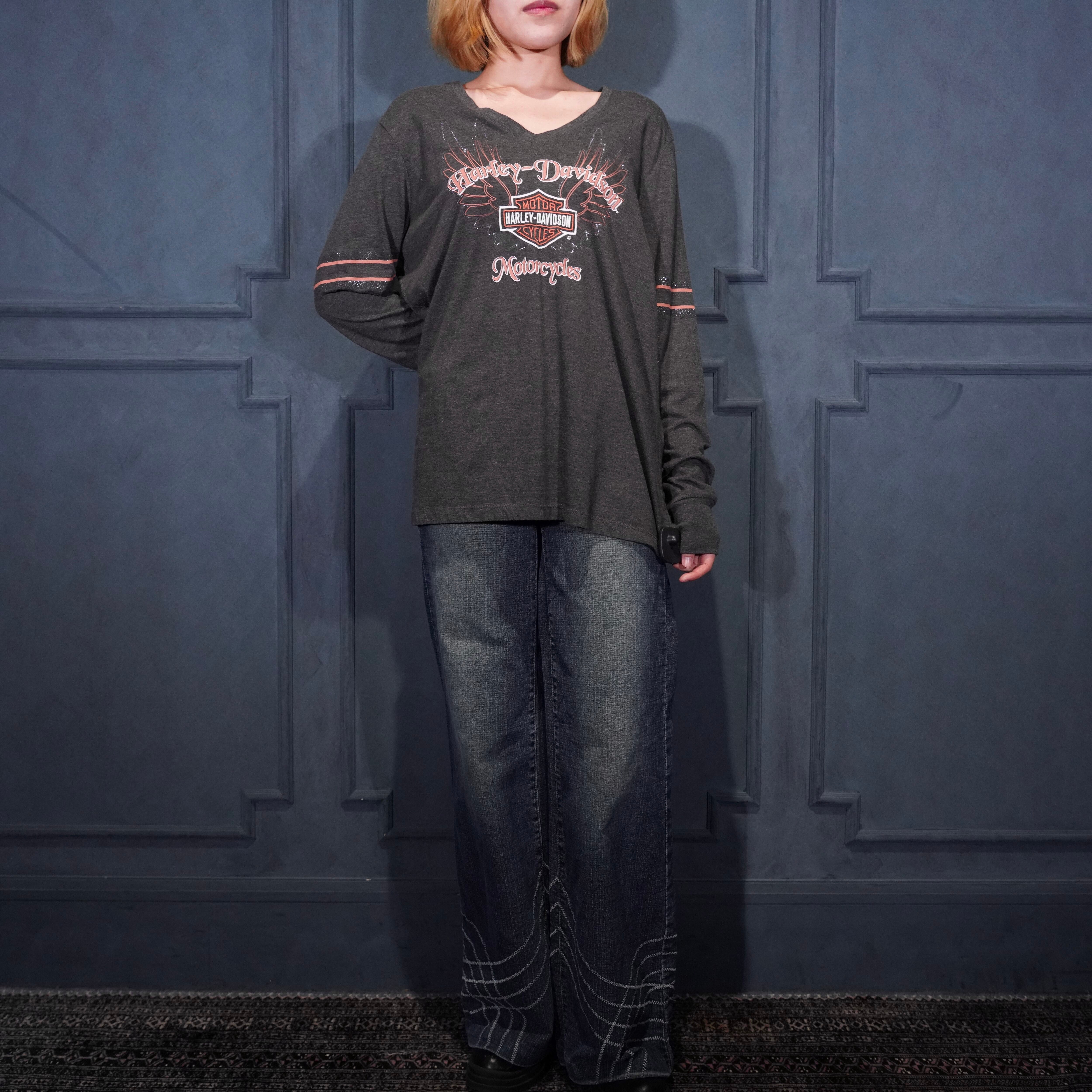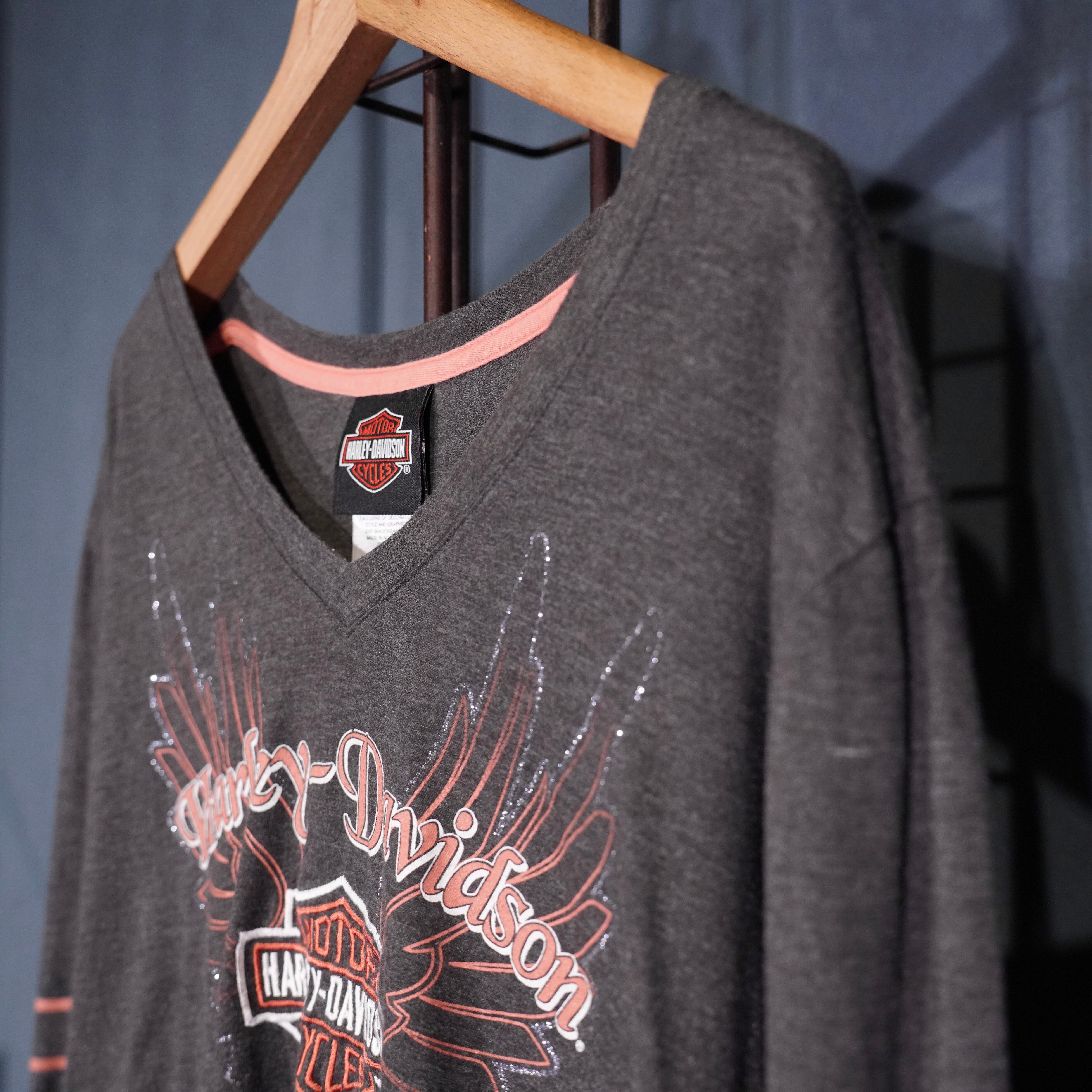USA VINTAGE HARLEY DAVIDSON GRITTER WING PRINT DESIGN LONG SLEEVE T SHIRT/アメリカ古着ハーレーダヴィッドソングリッターウィングプリントデザイン長袖Tシャツ