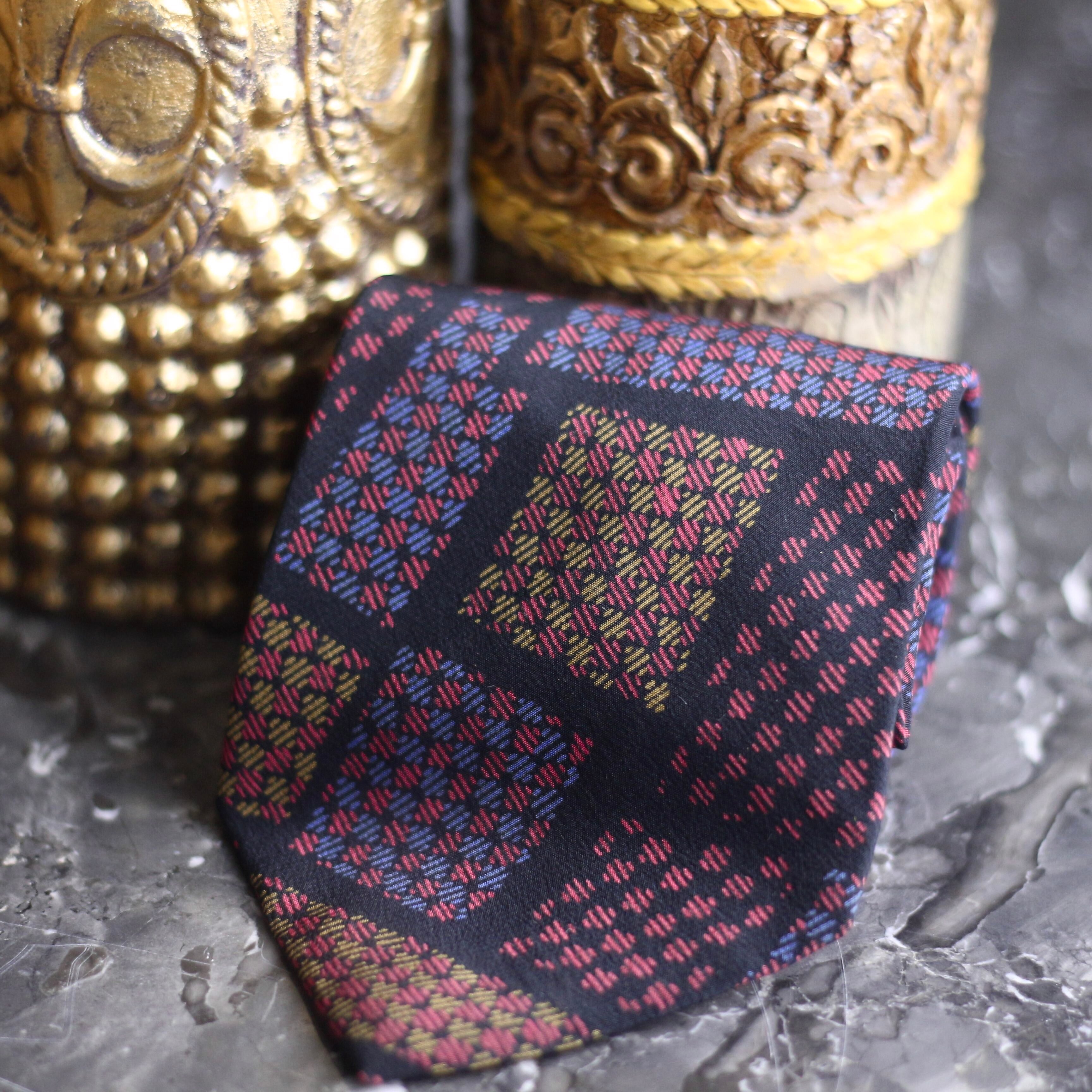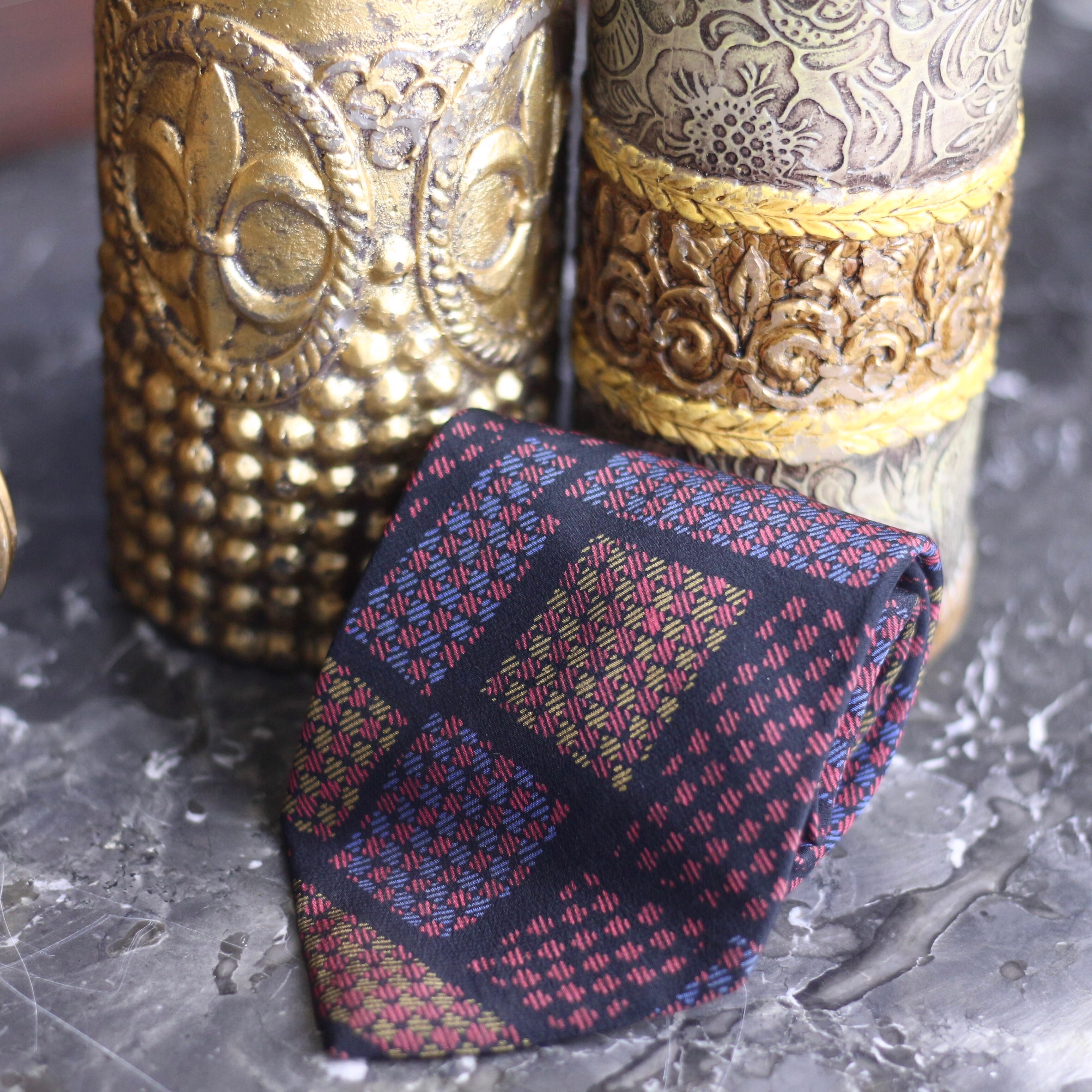 RETRO VINTAGE MARIO VALENTINO PATTERNED DESIGN SILK TIE/レトロ古着柄デザインシルクネクタイ