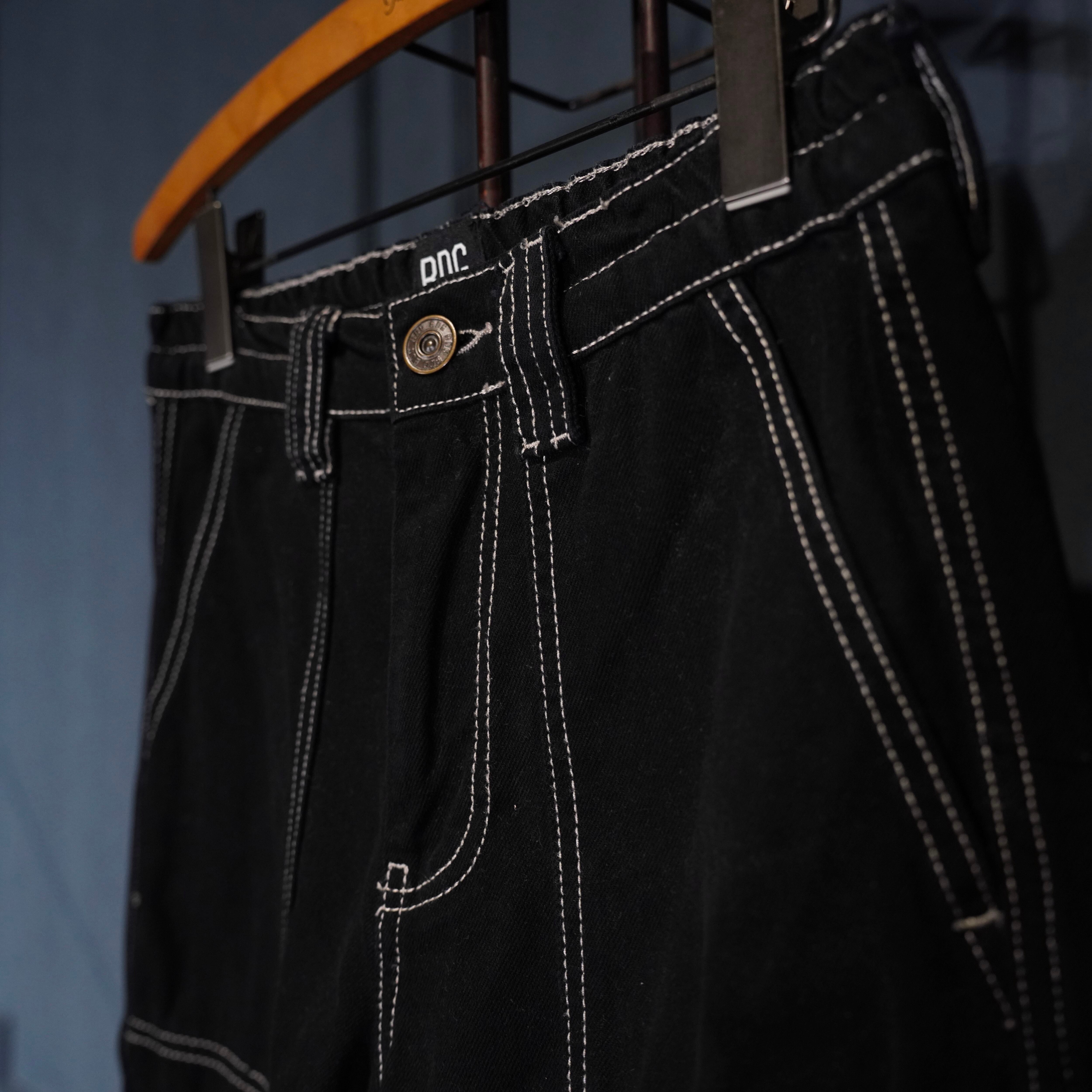 USA VINTAGE BDG URBAN OUTFITTERS BLACK COLOR STITCH DESIGN DENIM CARGO PANTS/アメリカ古着アーバンアウトフィッターズブラックカラーステッチデザインデニムカーゴパンツ
