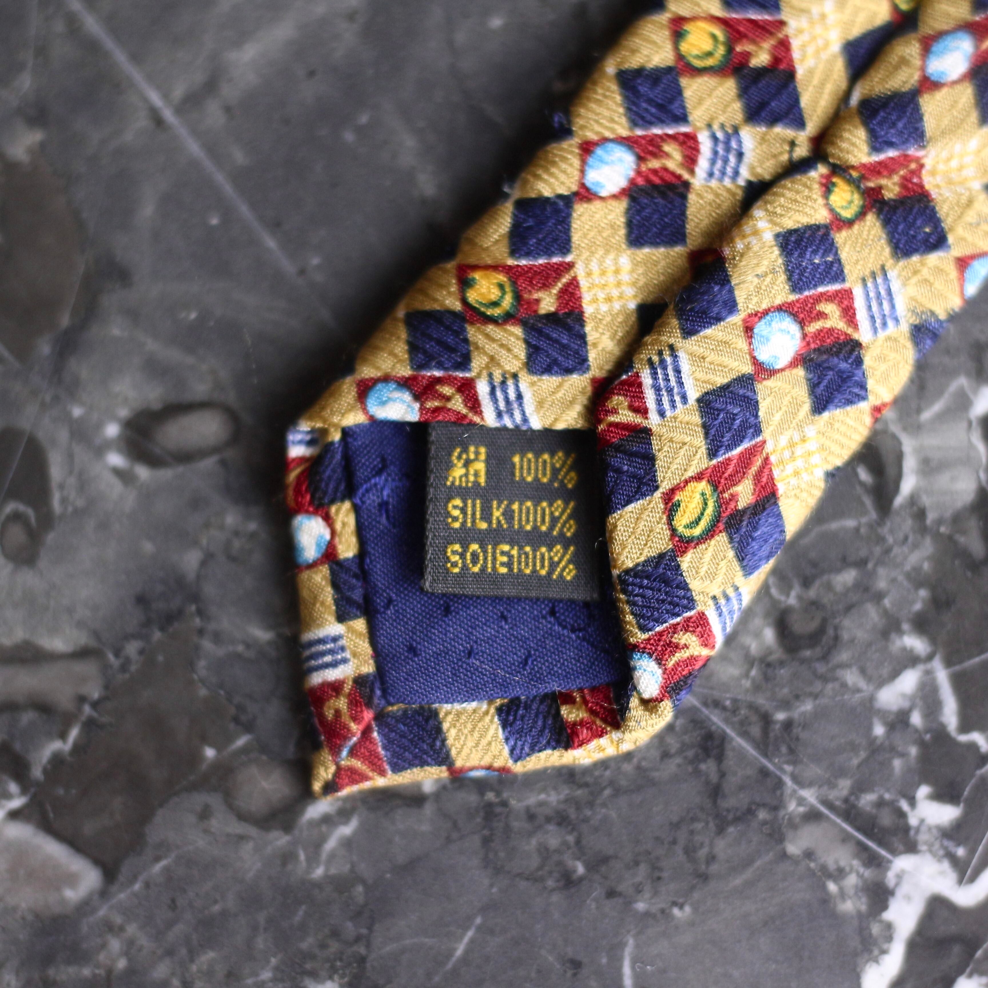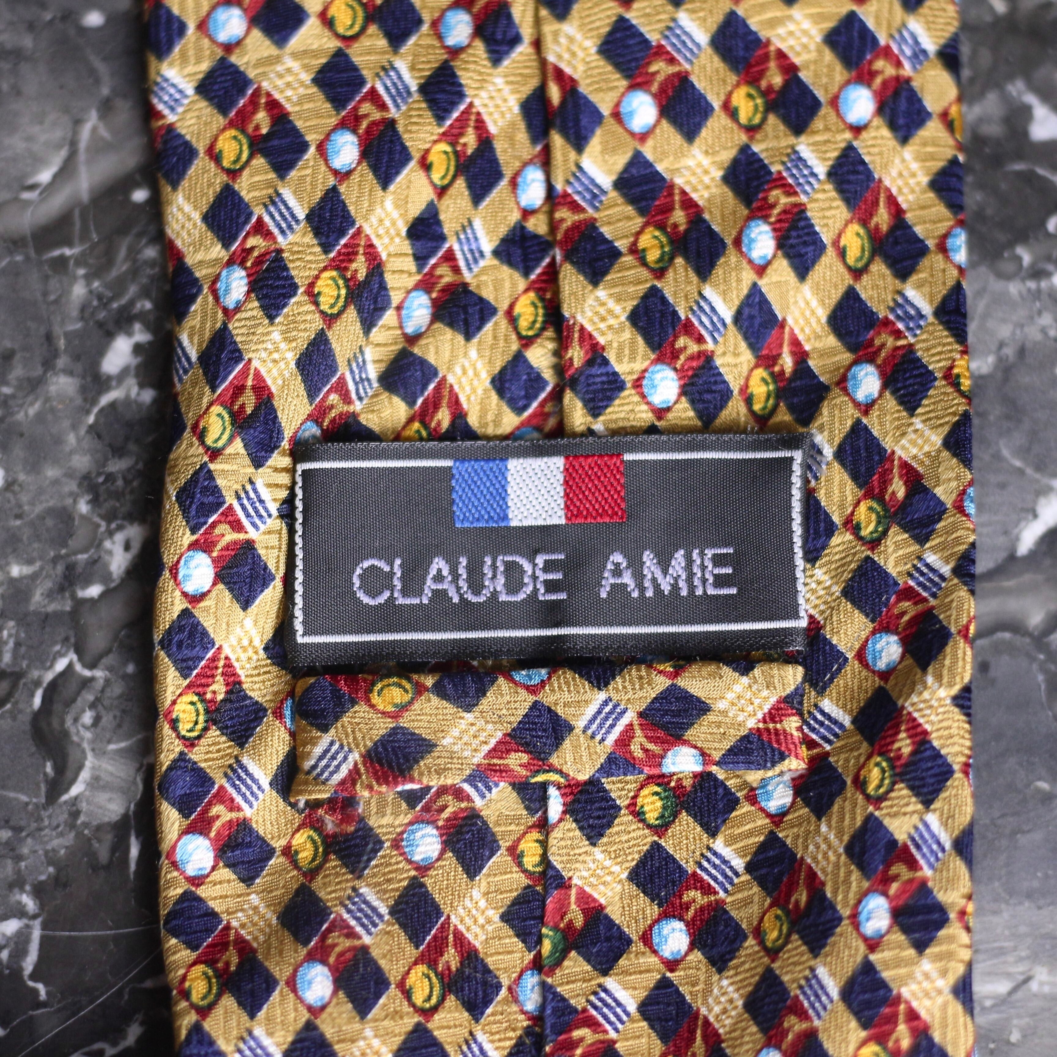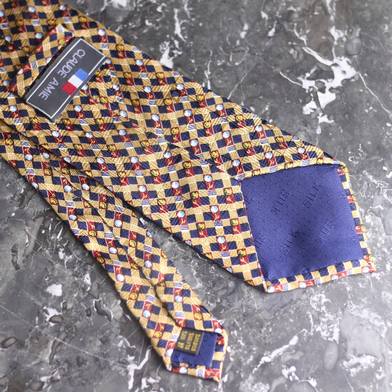 RETRO VINTAGE CLAUDE AMIE PATTERNED DESIGN SILK TIE/レトロ古着柄デザインシルクネクタイ