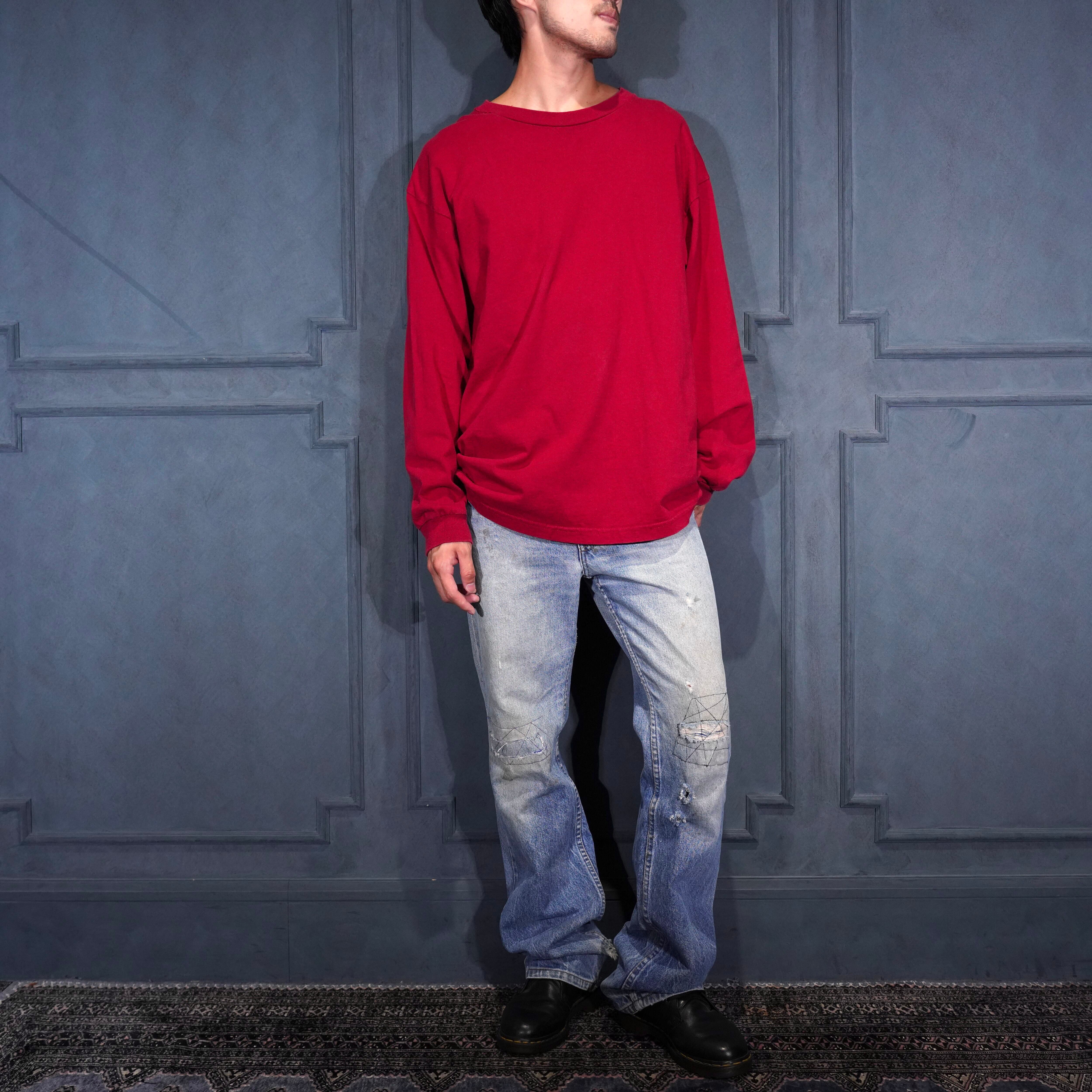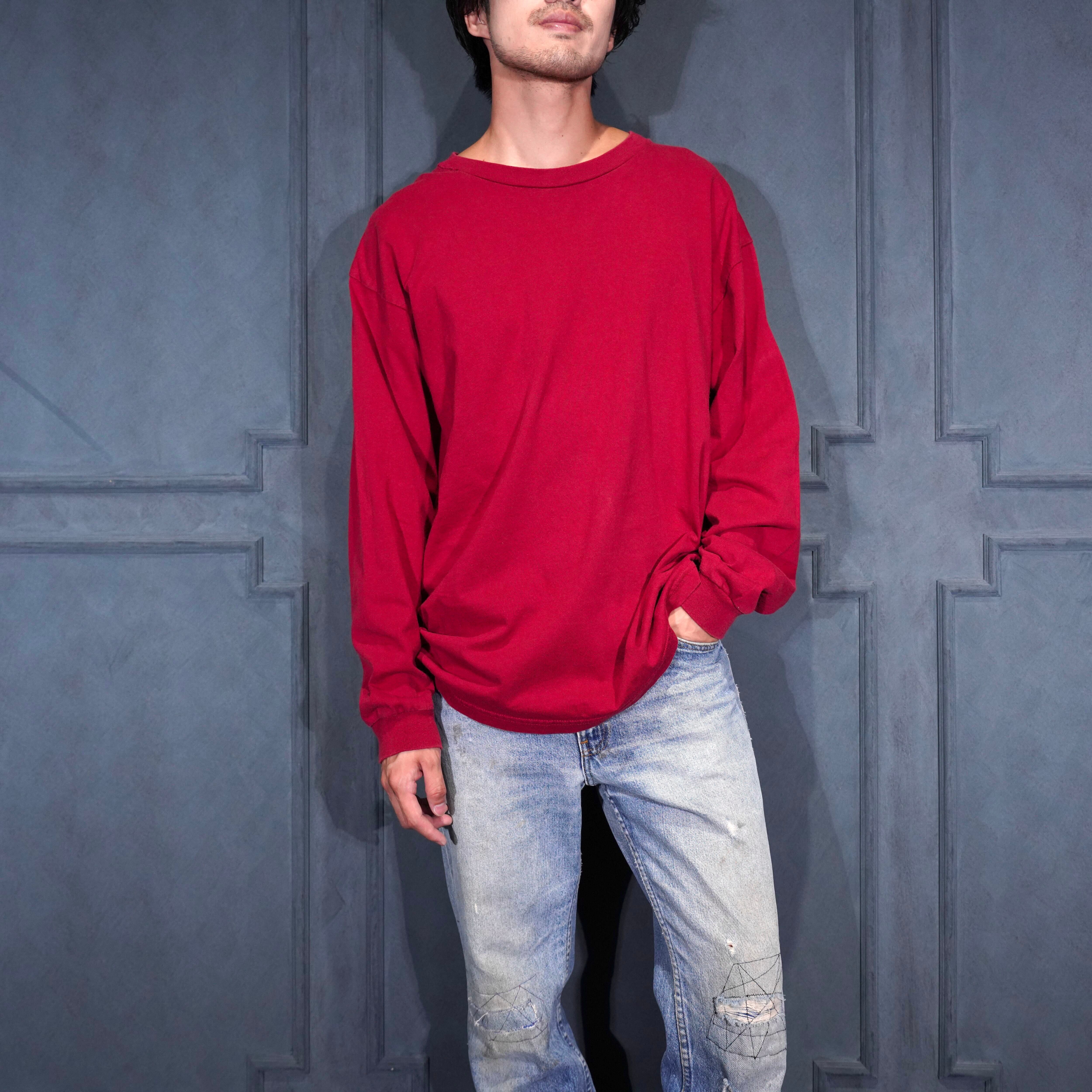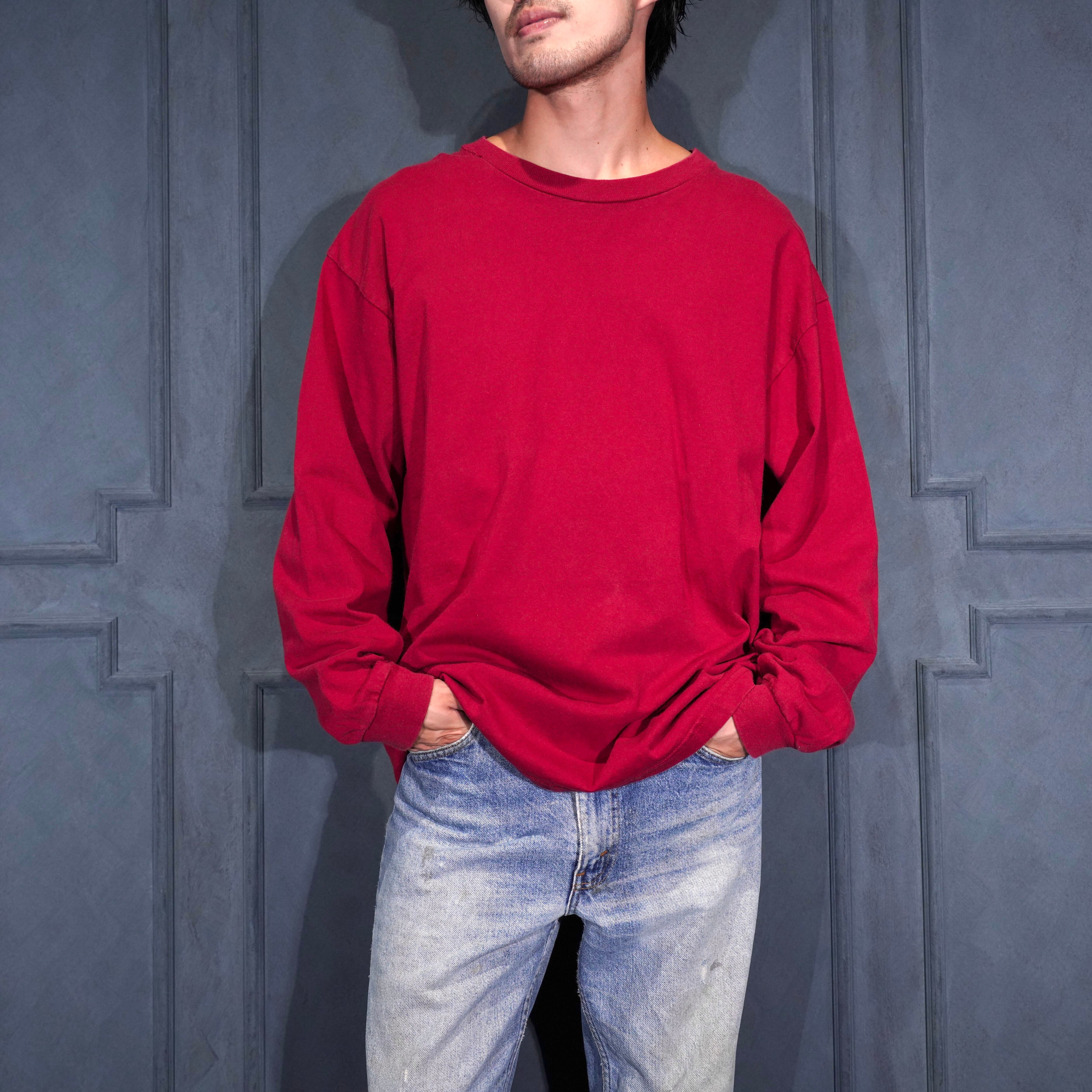 USA VINTAGE PRO CLUB RED COLOR LONG SLEEVE T SHIRT/アメリカ古着レッドカラー長袖Tシャツ(ロンT)