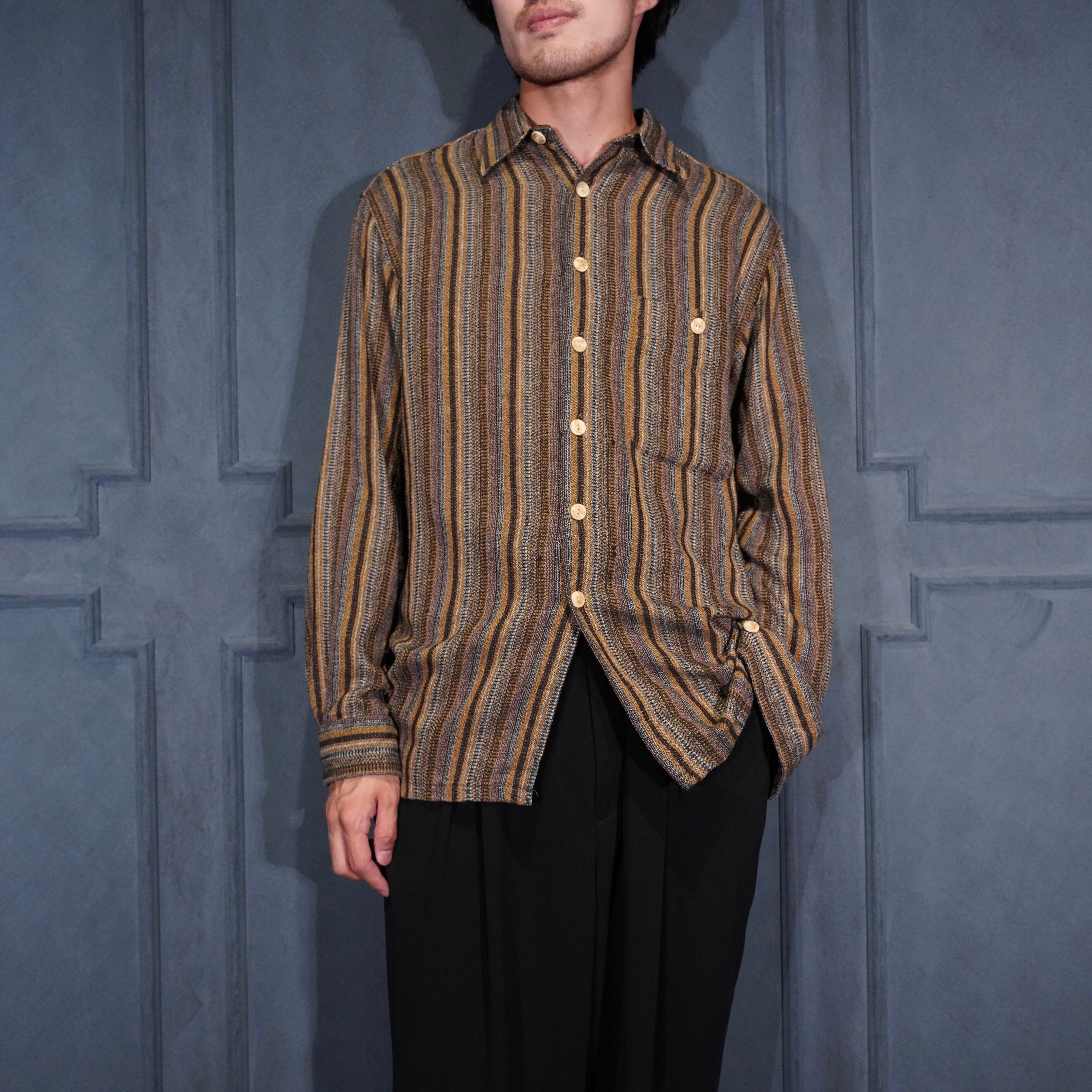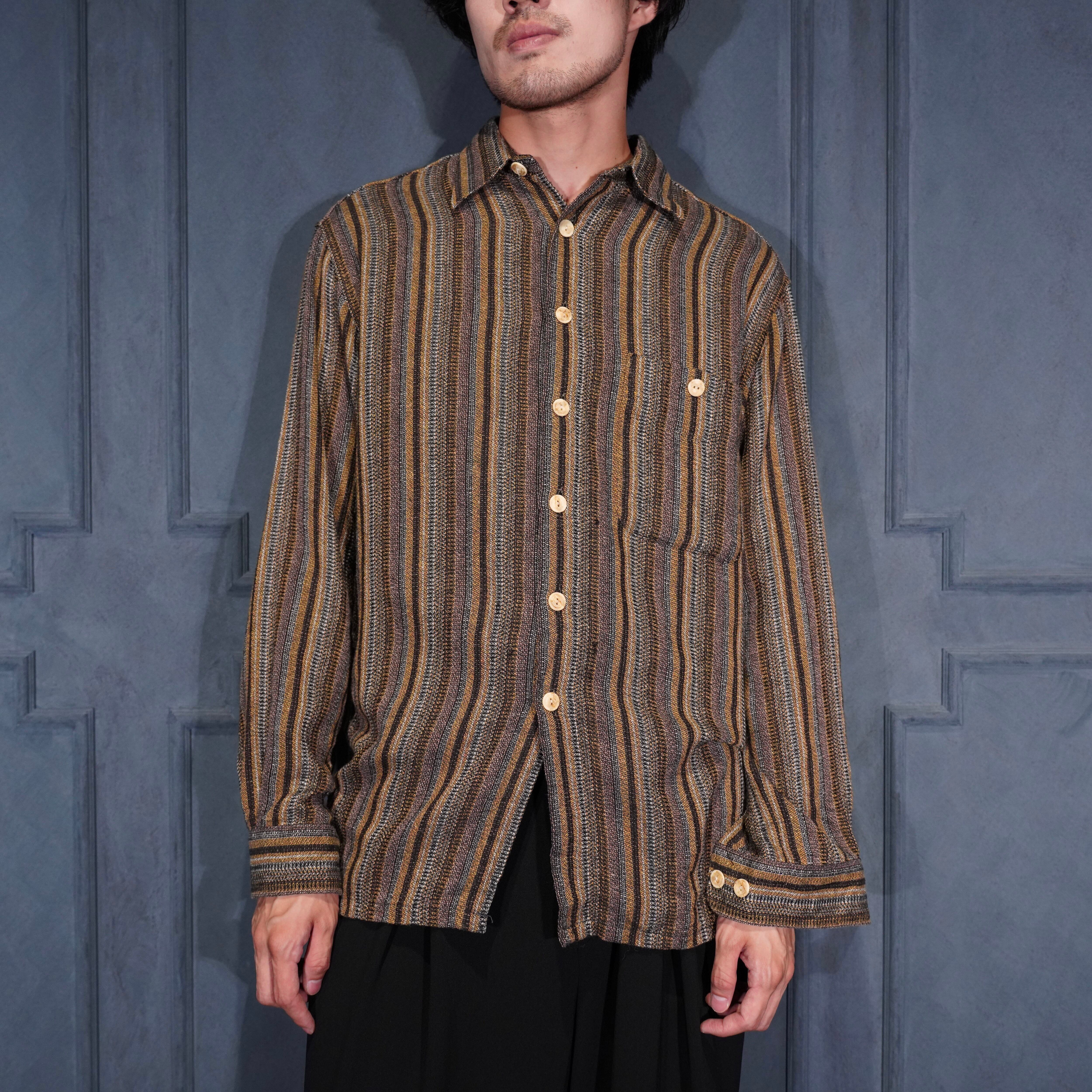 USA VINTAGE bosch STRIPE PATTERNED WOVEN DESIGN SHIRT/アメリカ古着ストライプ柄織デザインシャツ