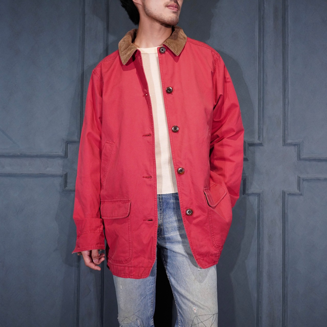 USA VINTAGE LL Bean CORDULOY COLLAR DESIGN COVERALL JACKET/アメリカ古着エルエルビーン襟コーデュロイデザインカバーオールジャケット