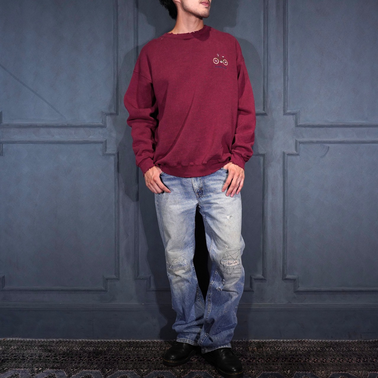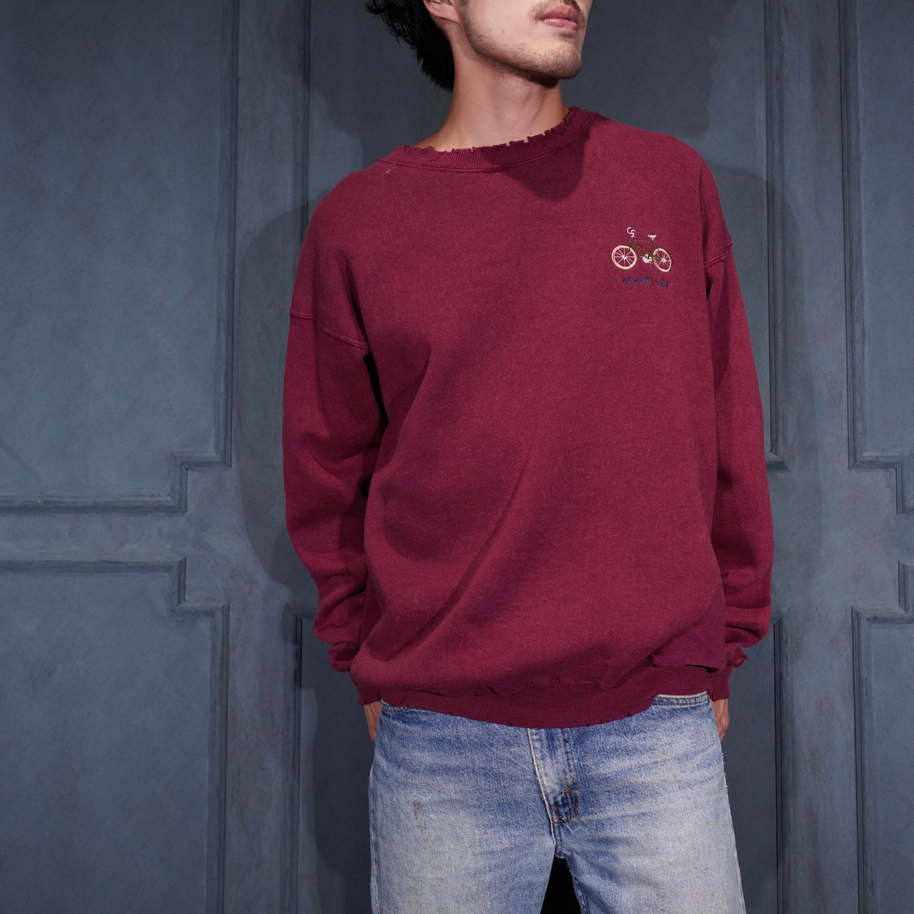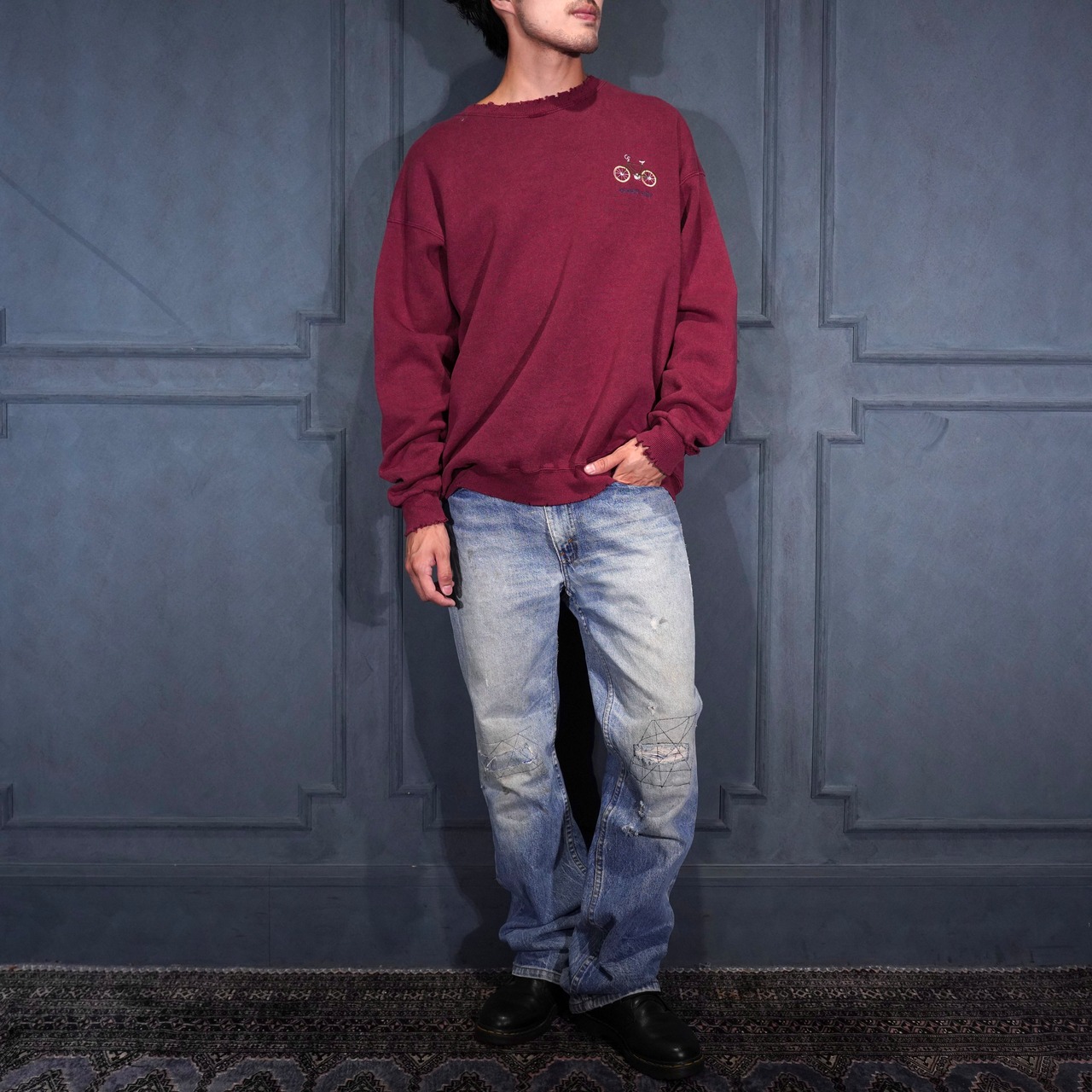 USA VINTAGE BICYCLE EMBROIDERY BORO SWEAT SHIRT/アメリカ古着自転車刺繍デザインボロスウェット