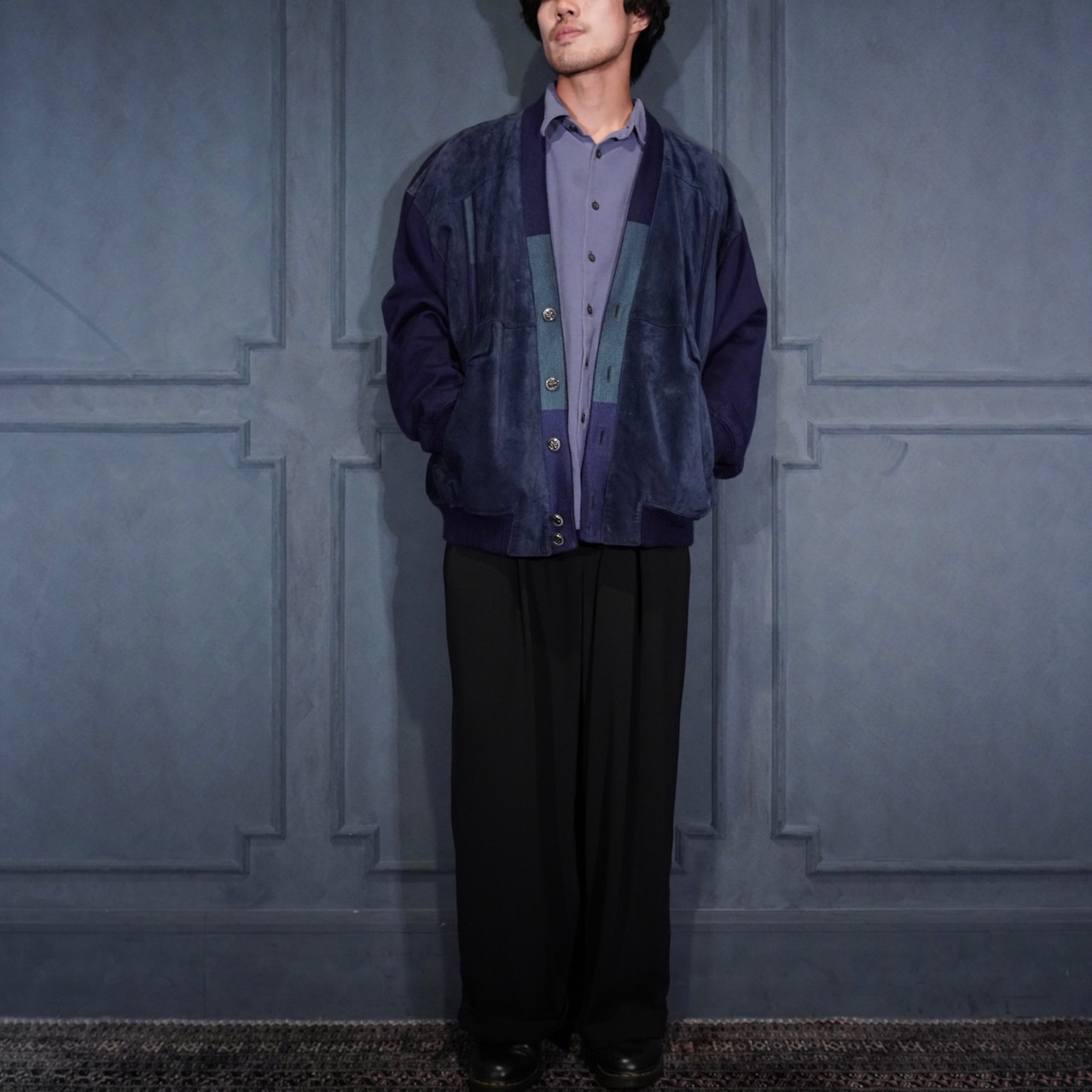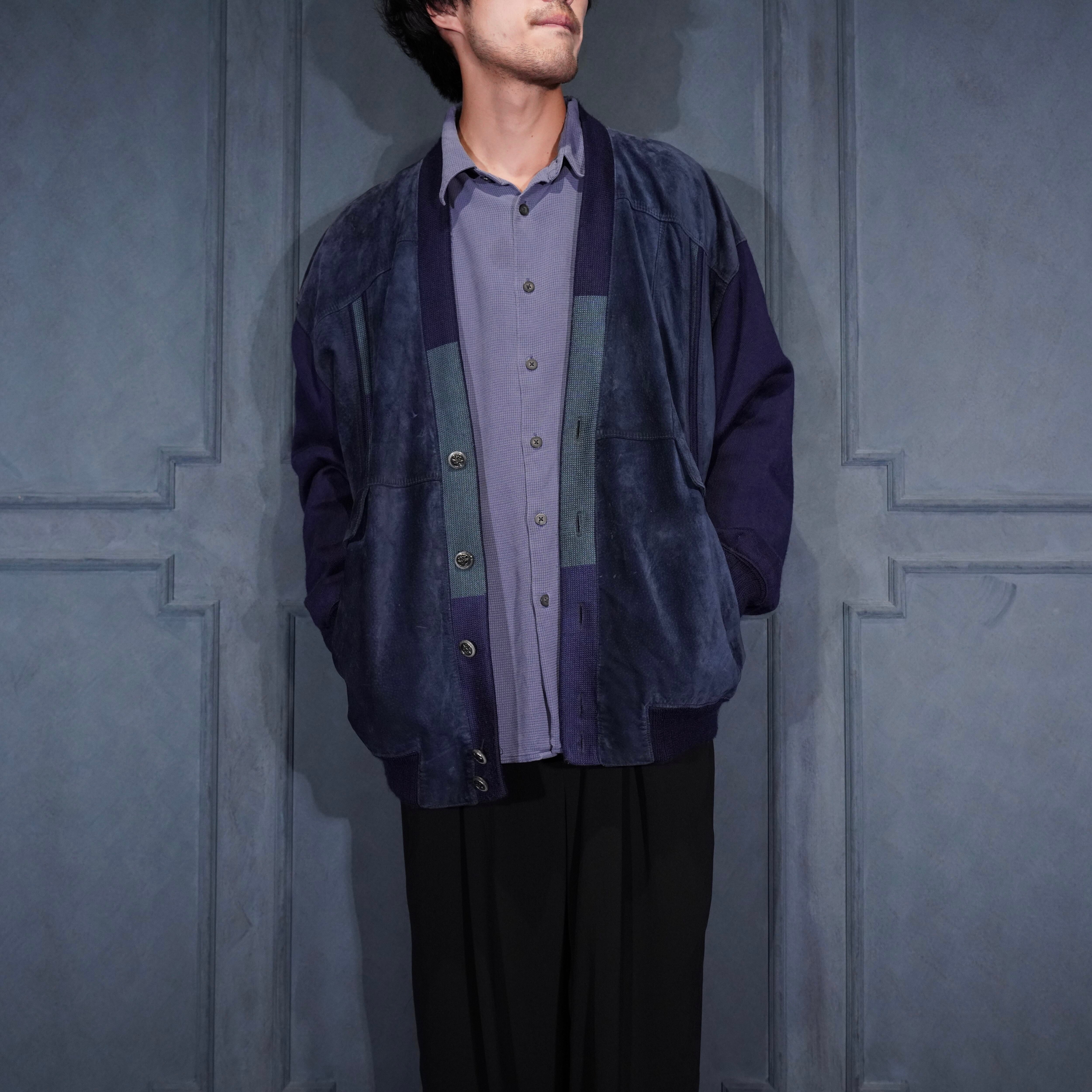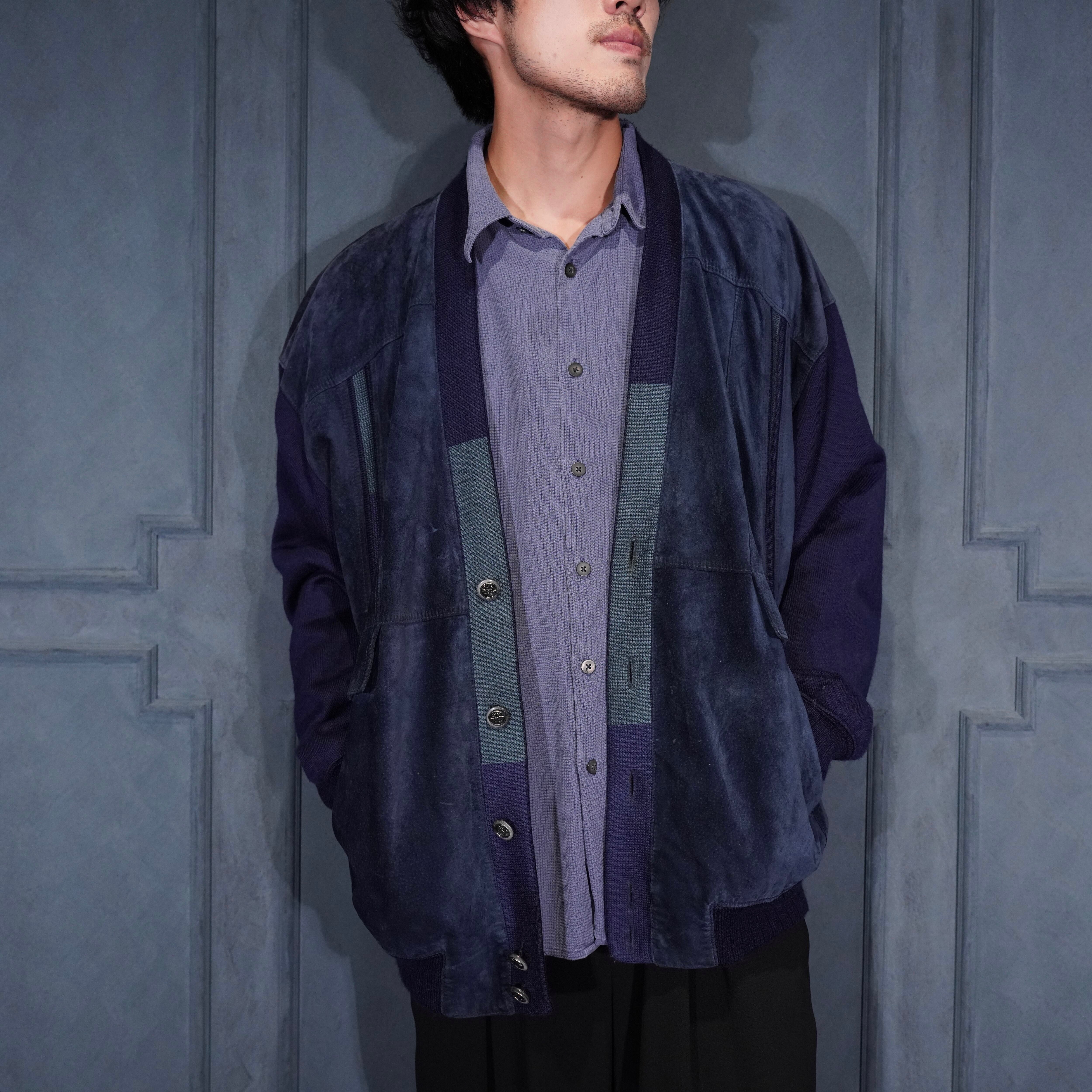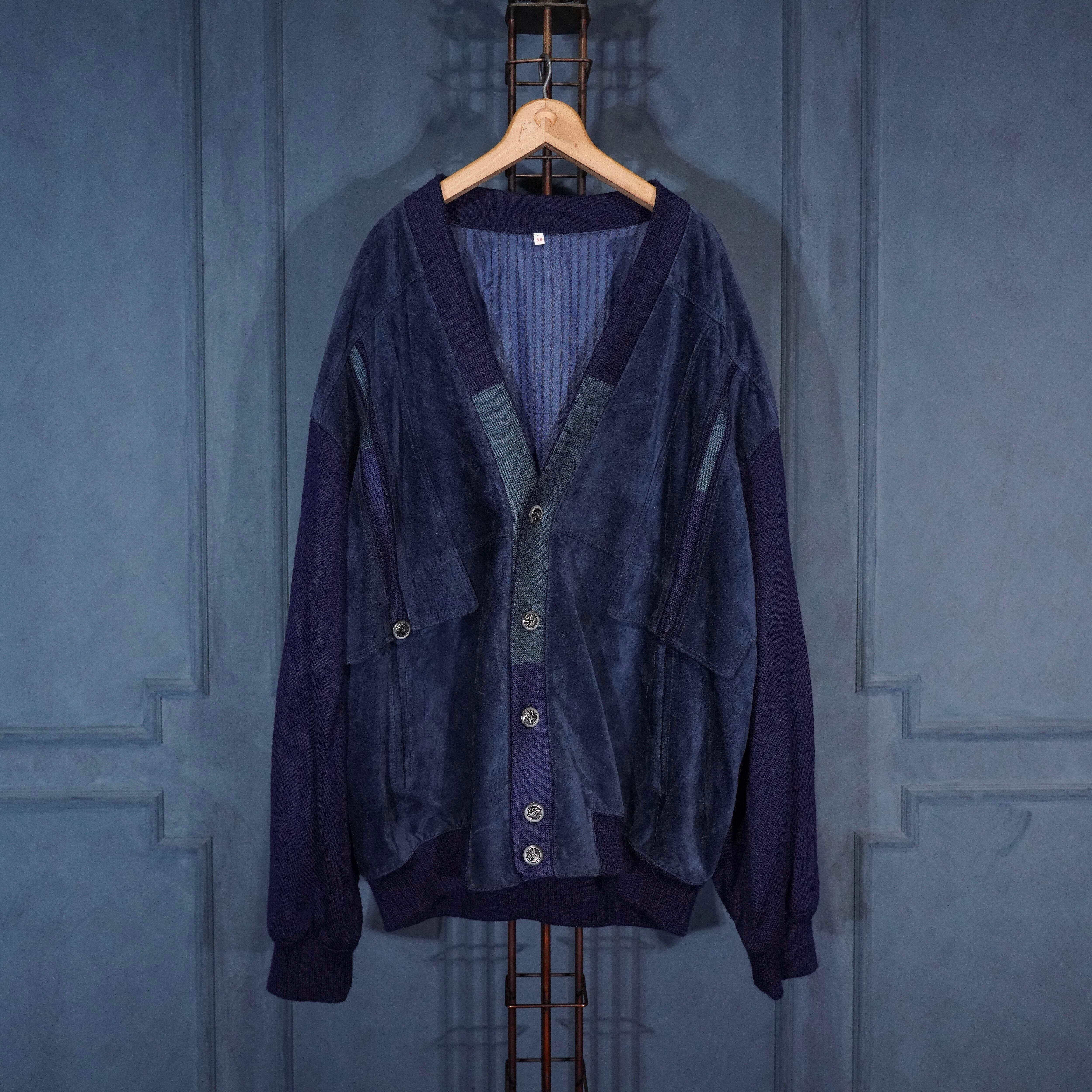 EU VINTAGE RAMOS&VALVERDES LEATHER KNIT CARDIGAN/ヨーロッパ古着レザーニットカーディガン(ジャケット)