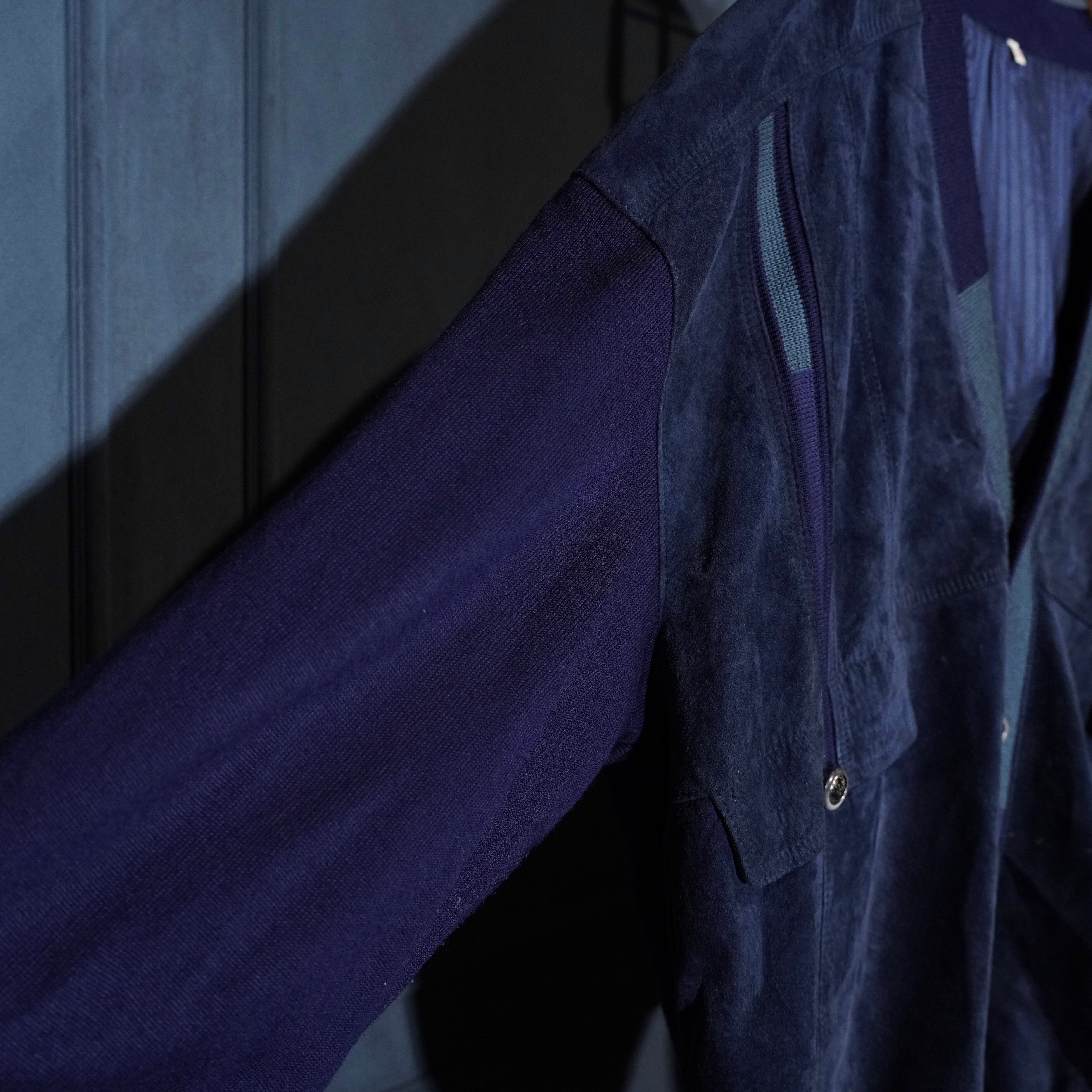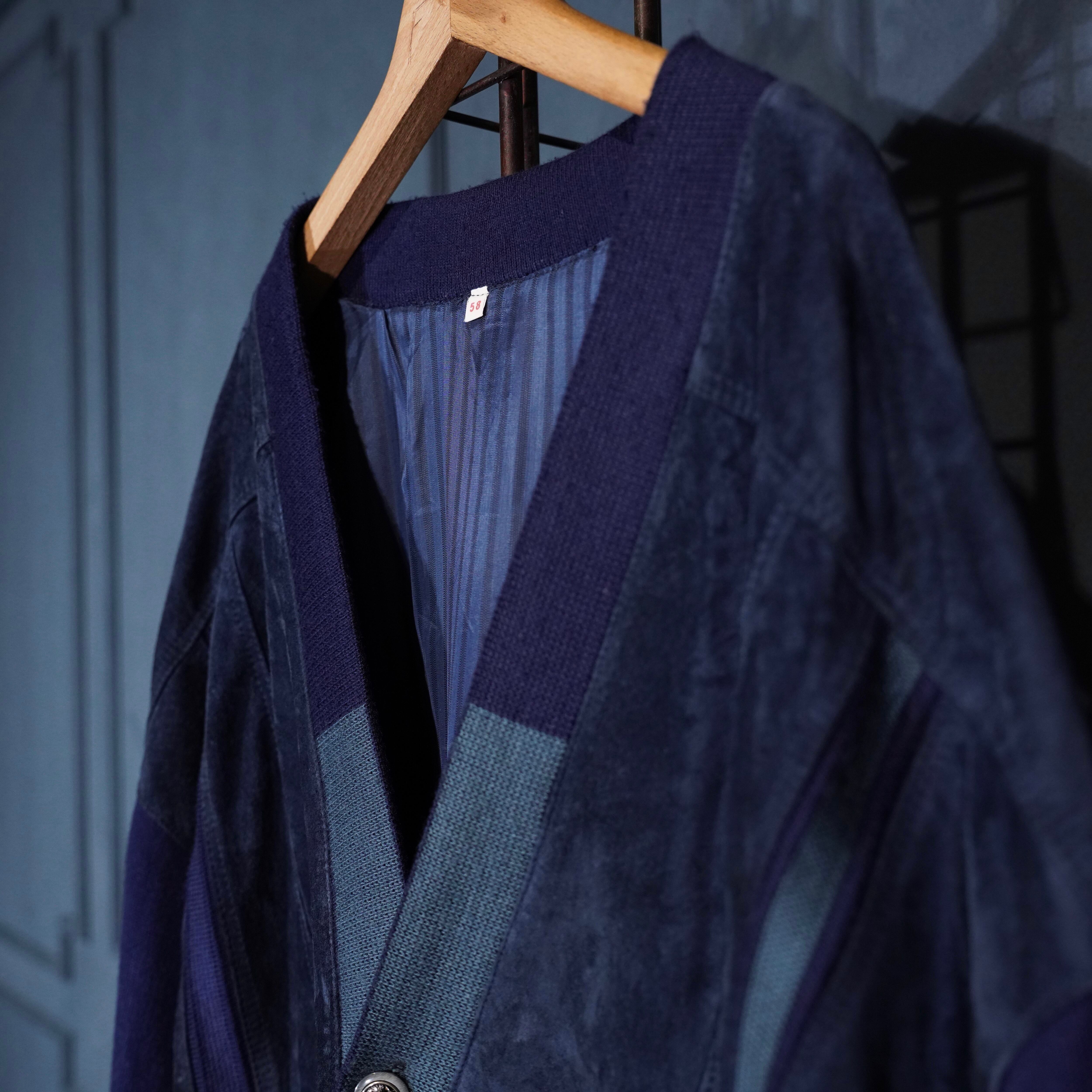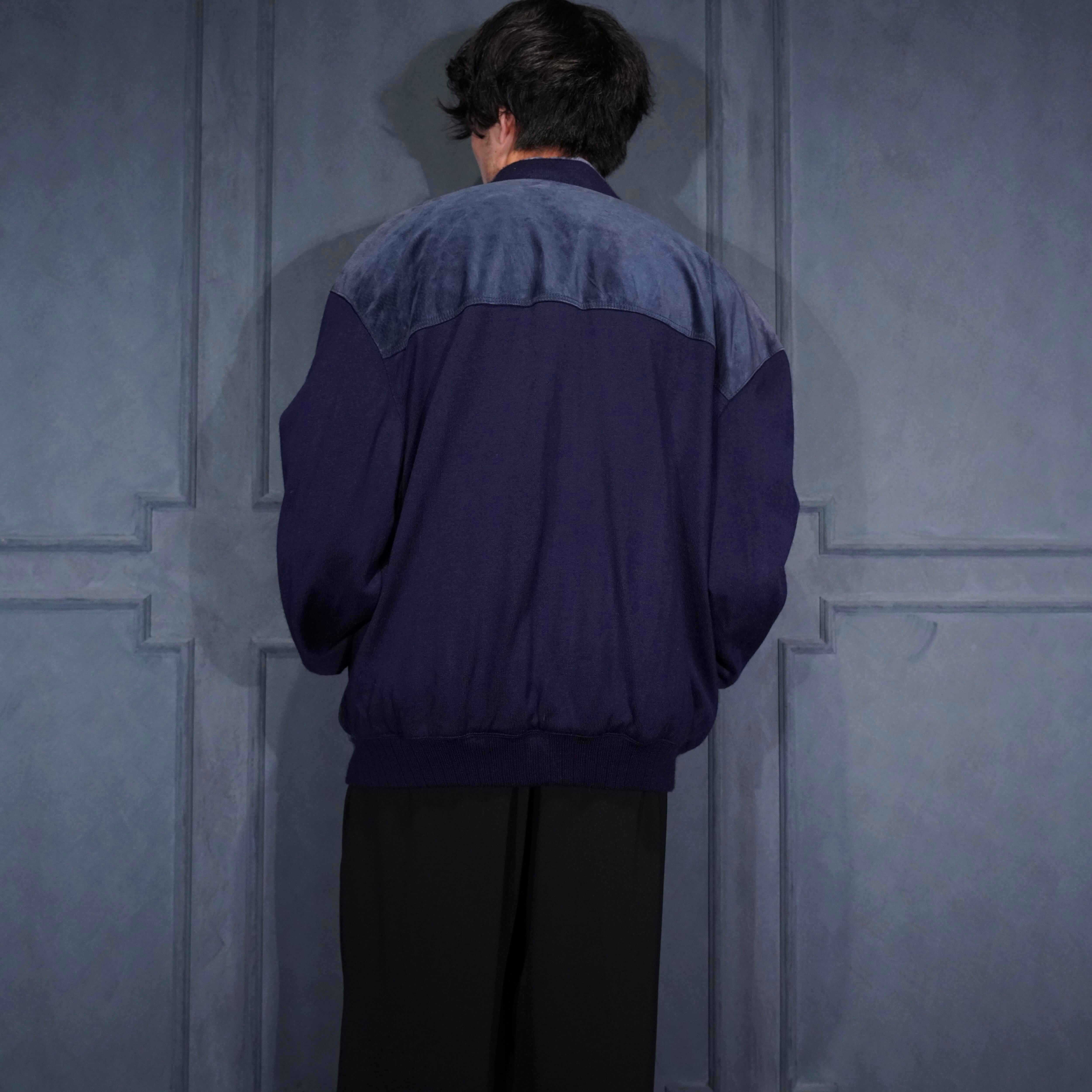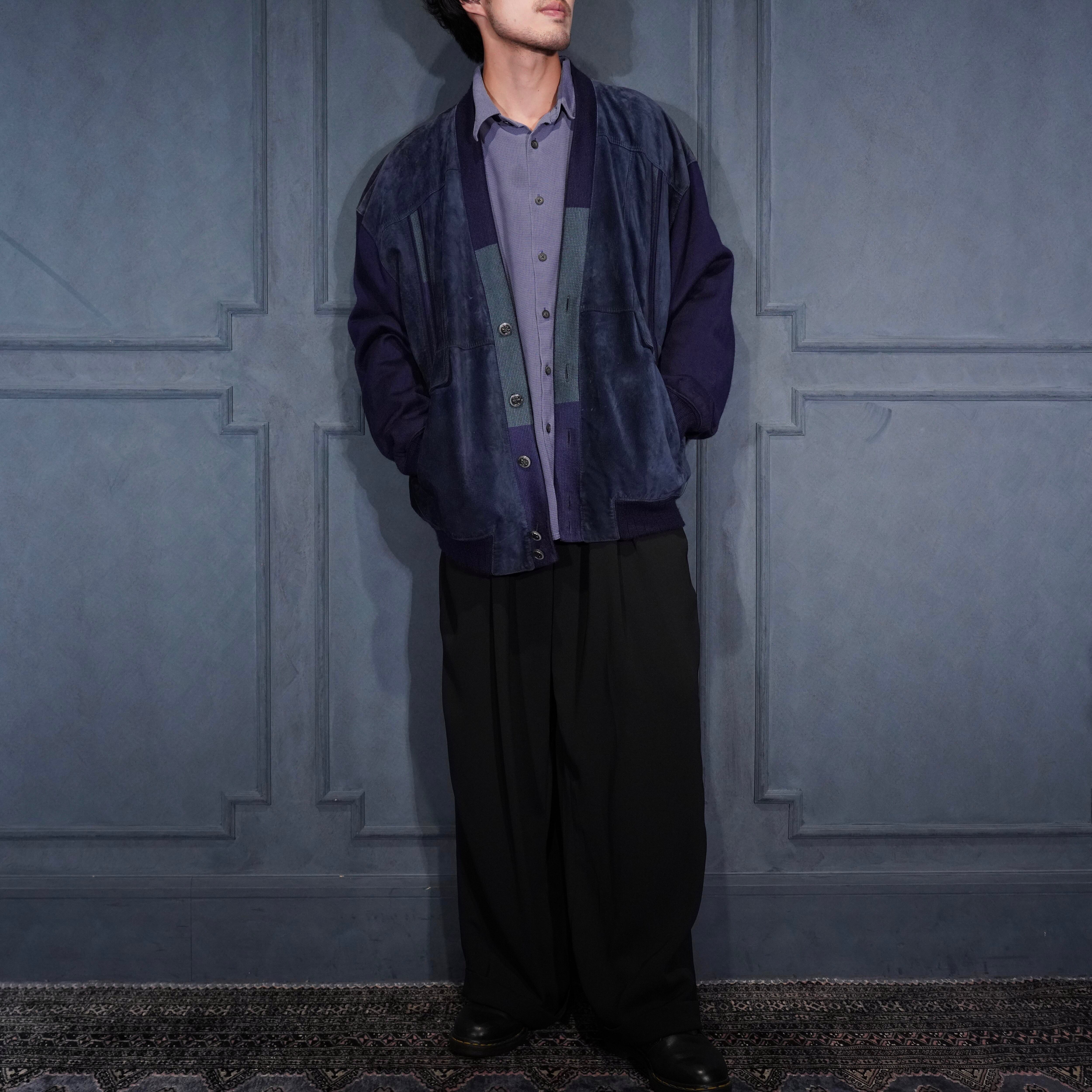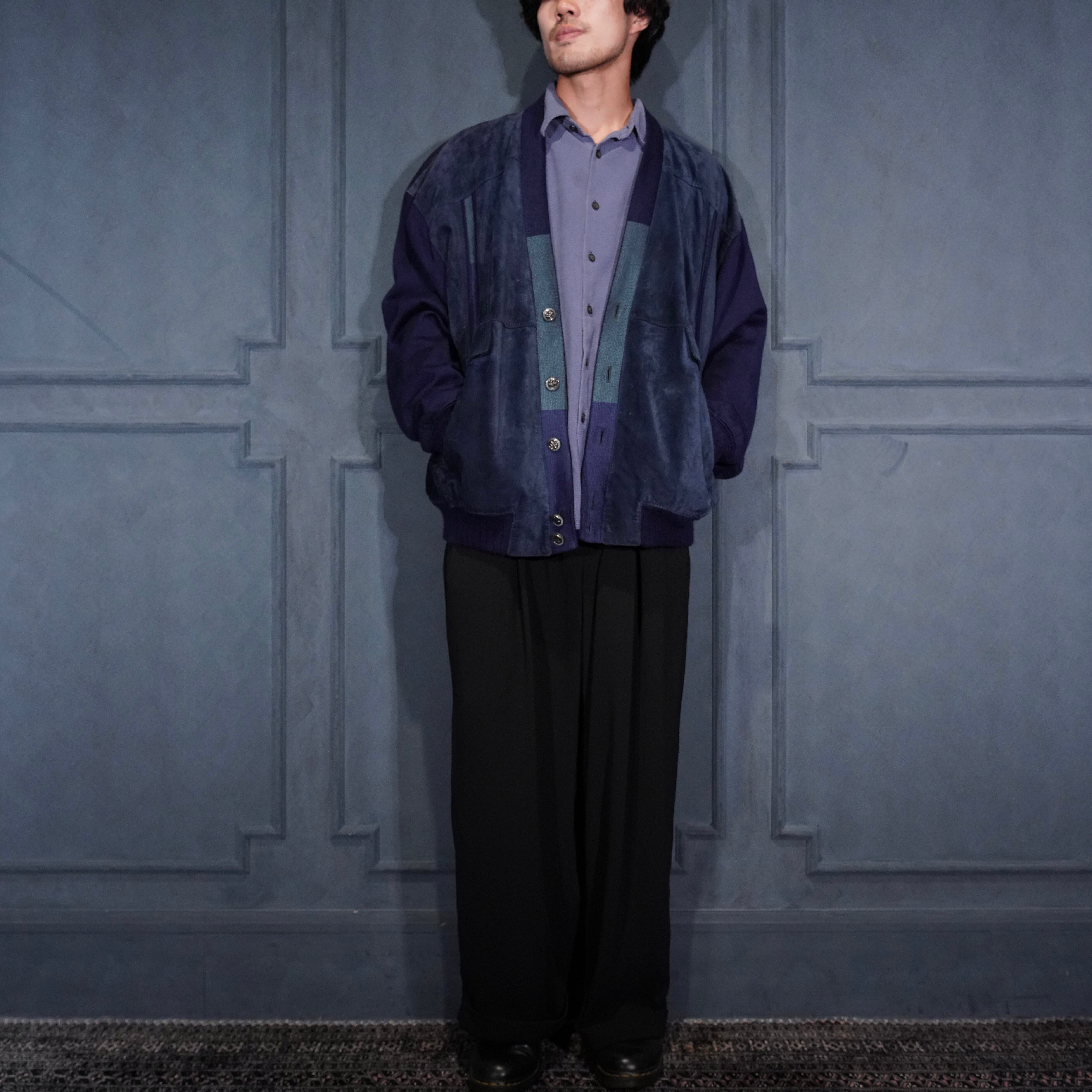 EU VINTAGE RAMOS&VALVERDES LEATHER KNIT CARDIGAN/ヨーロッパ古着レザーニットカーディガン(ジャケット)