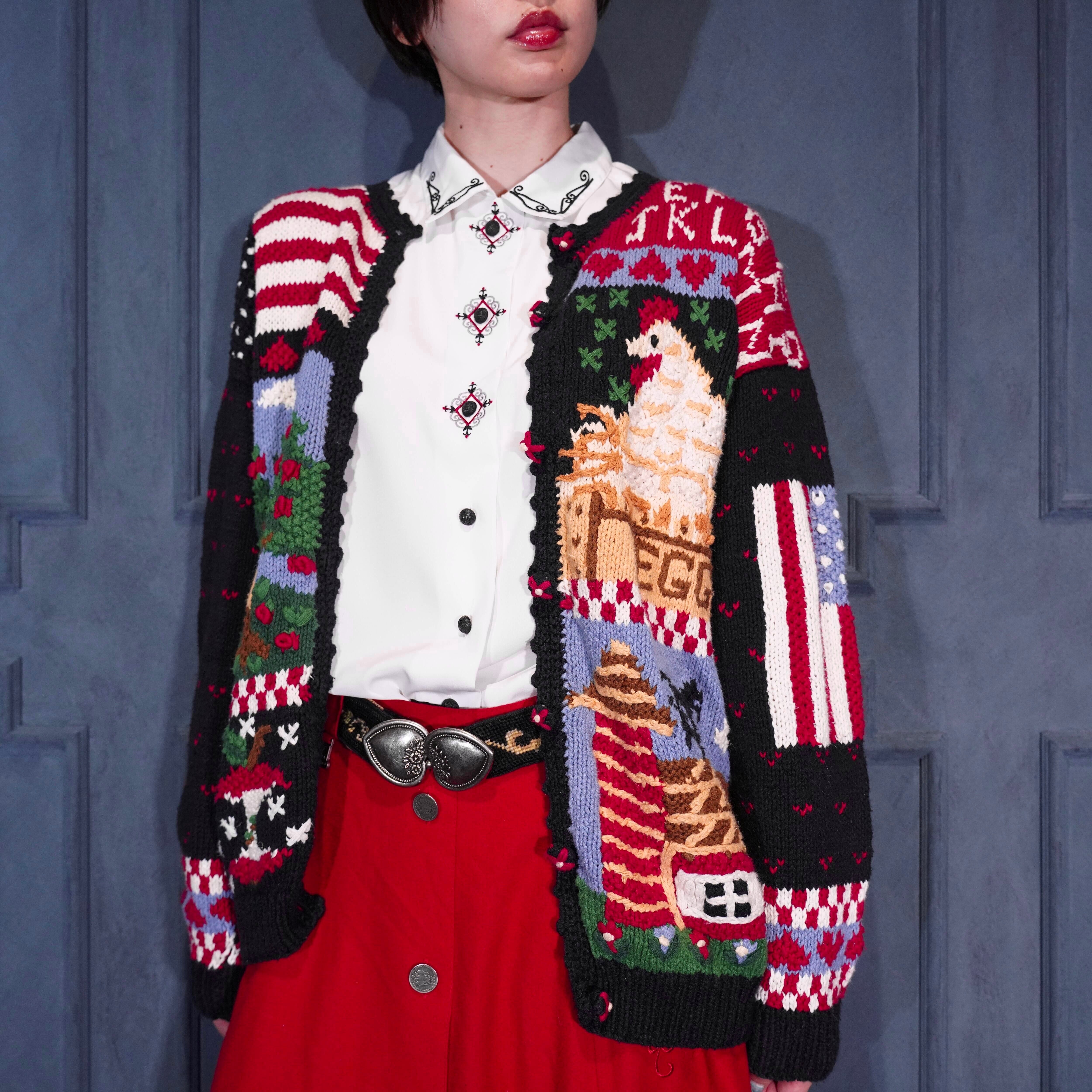 *SPECIAL ITEM* USA VINTAGE Signatures BY northern isles knitted by hand COTTON RAMIE HAND KNIT CARDIGAN/アメリカ古着コットンラミーハンドニットカーディガン
