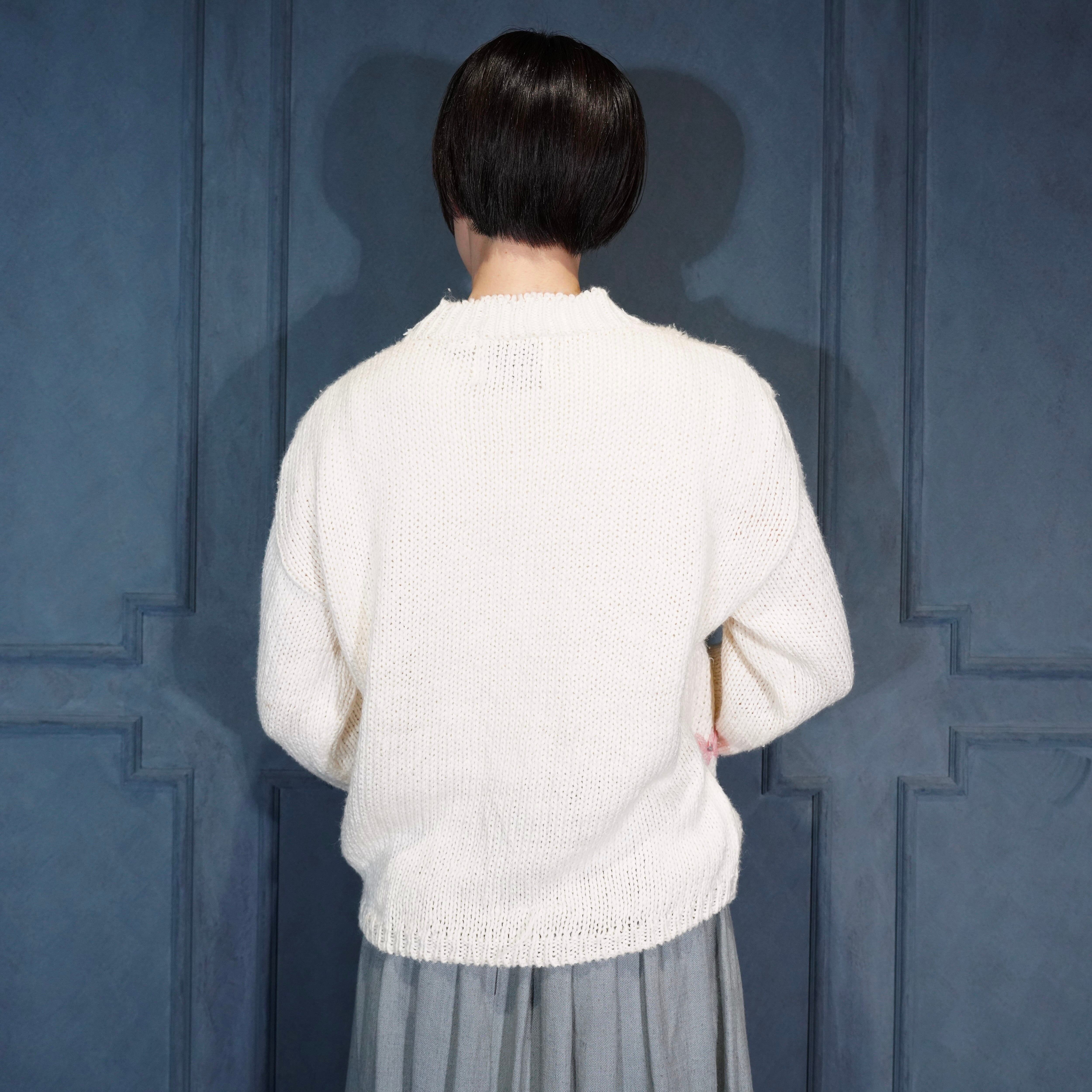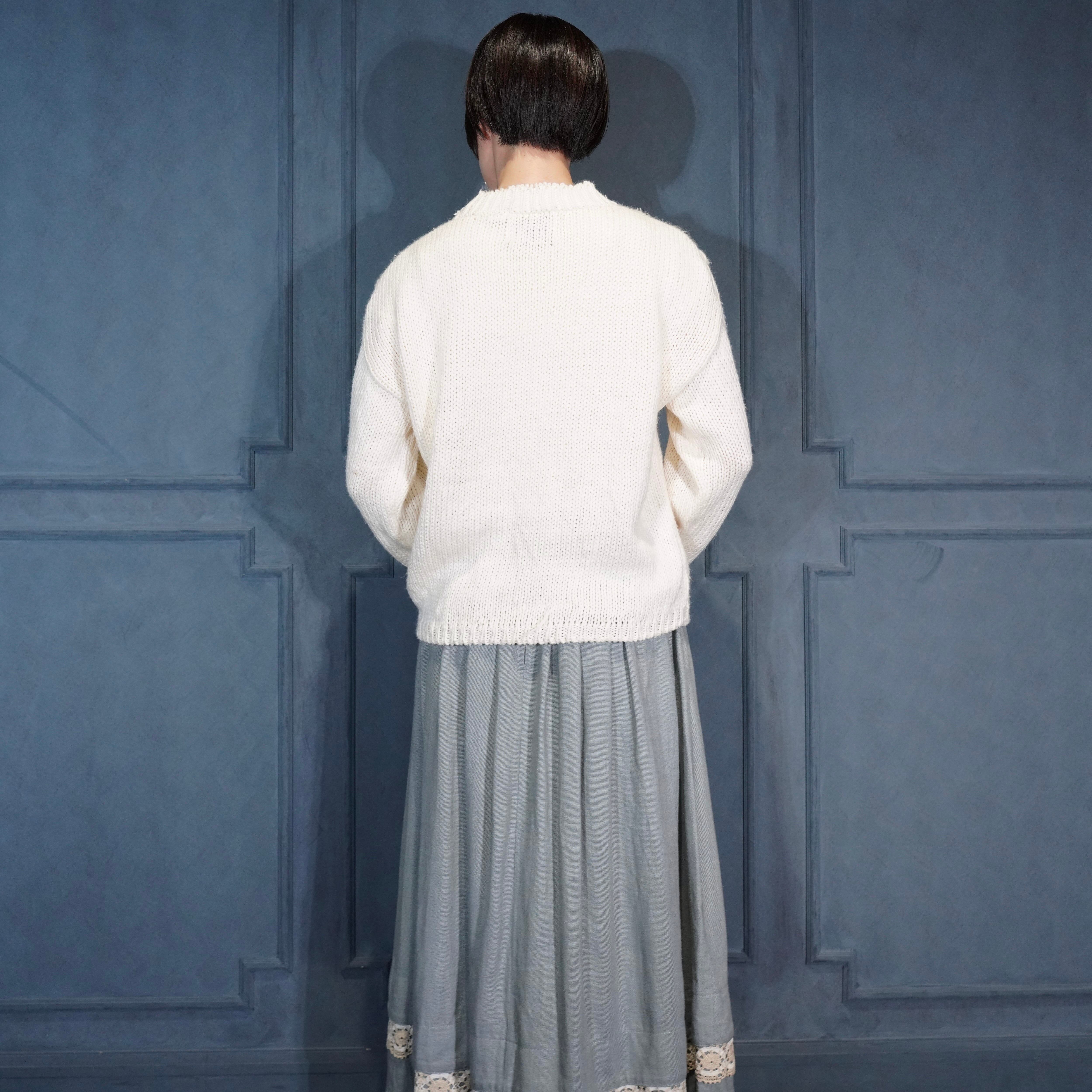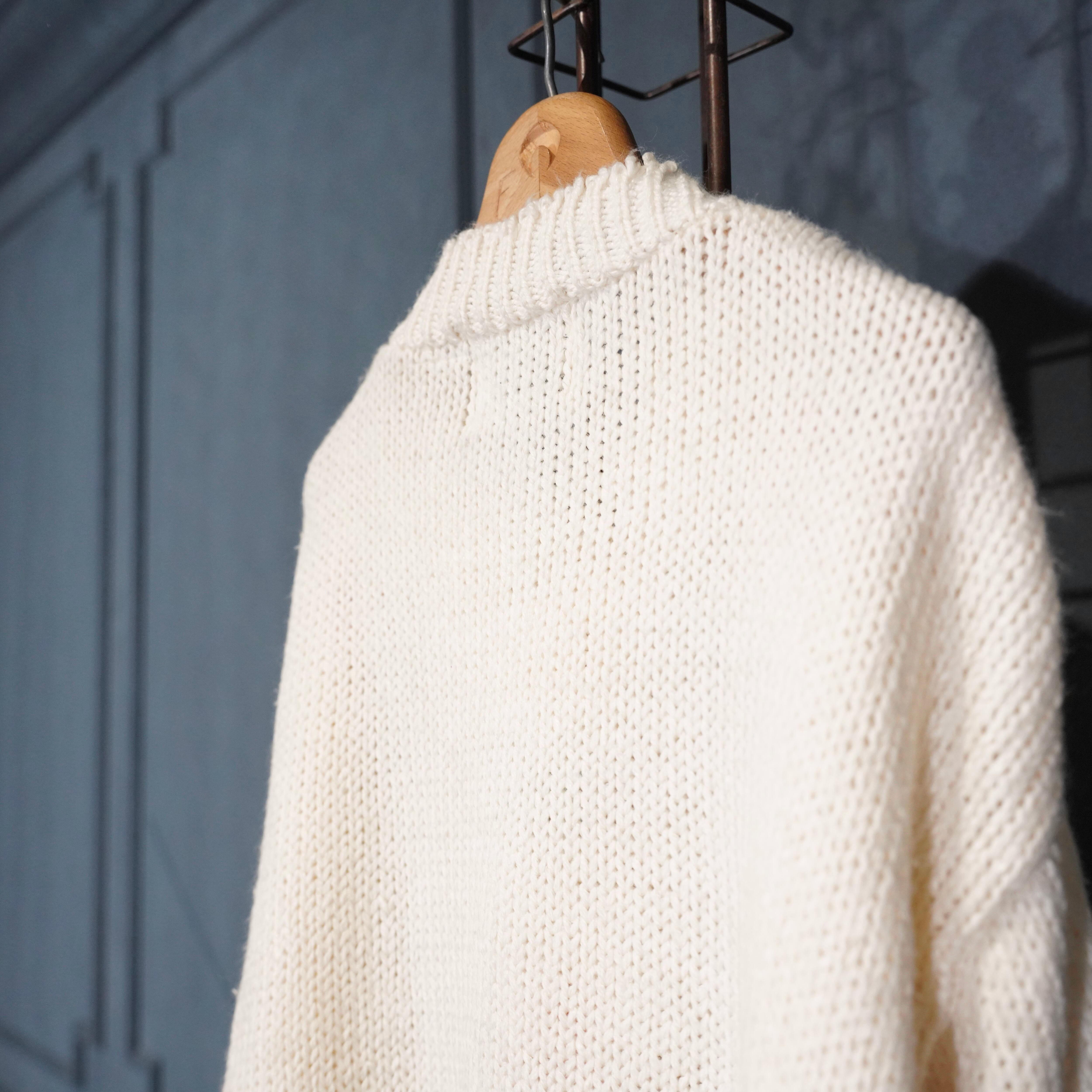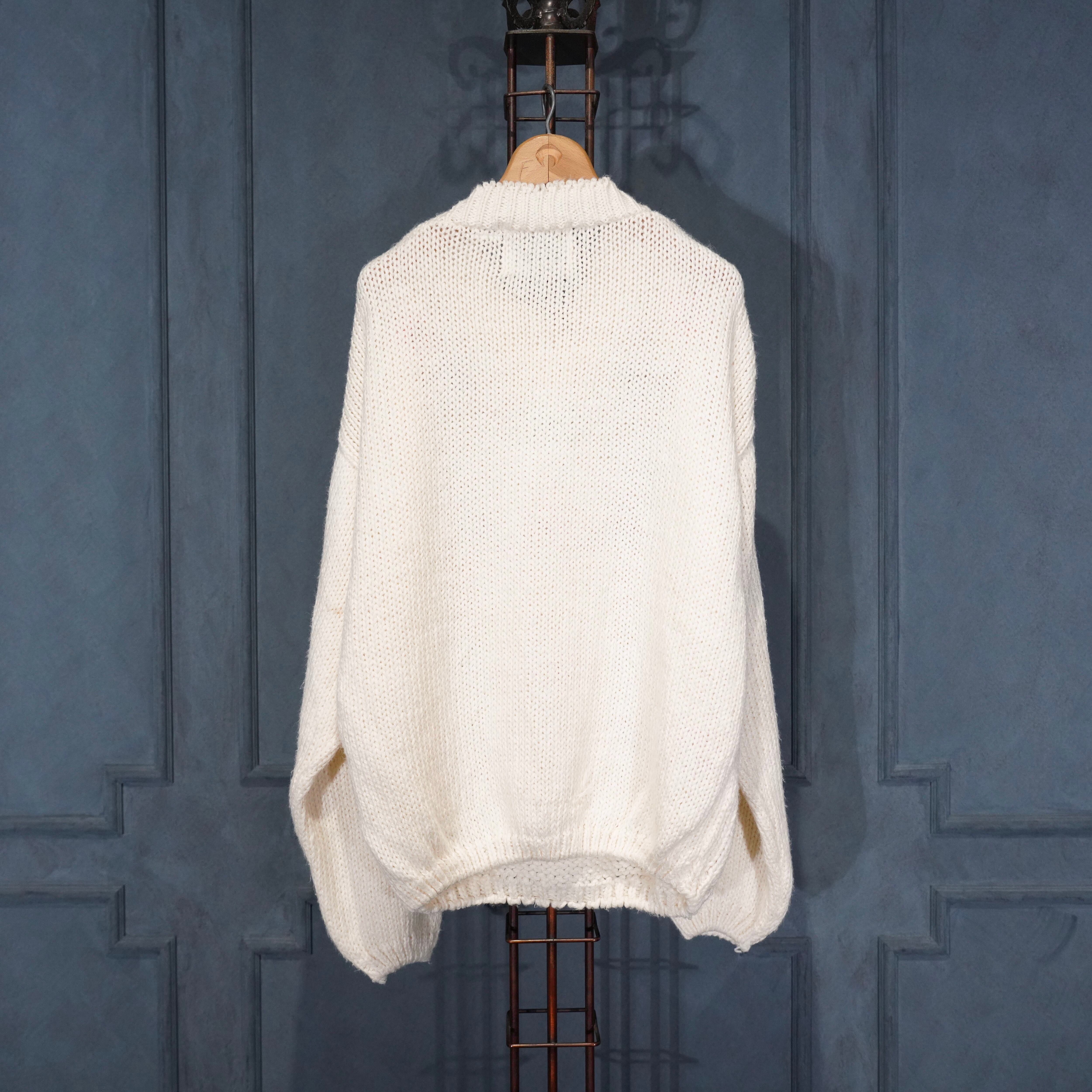 USA VINTAGE knitted by hand NUGGETS FLOWER EMBROIDERY FRILL DESIGN HAND KNIT/アメリカ古着お花刺繍フリルデザインハンドニット