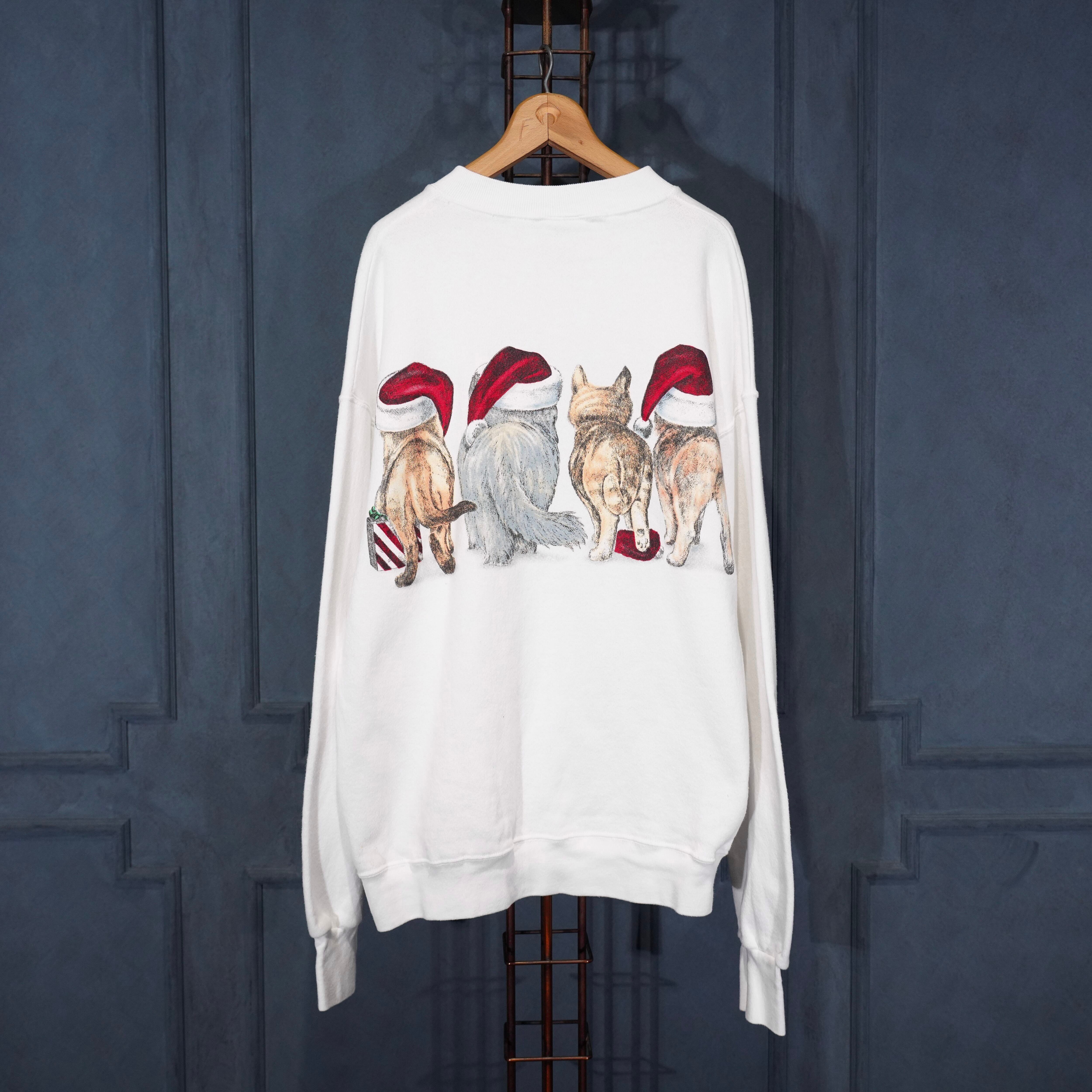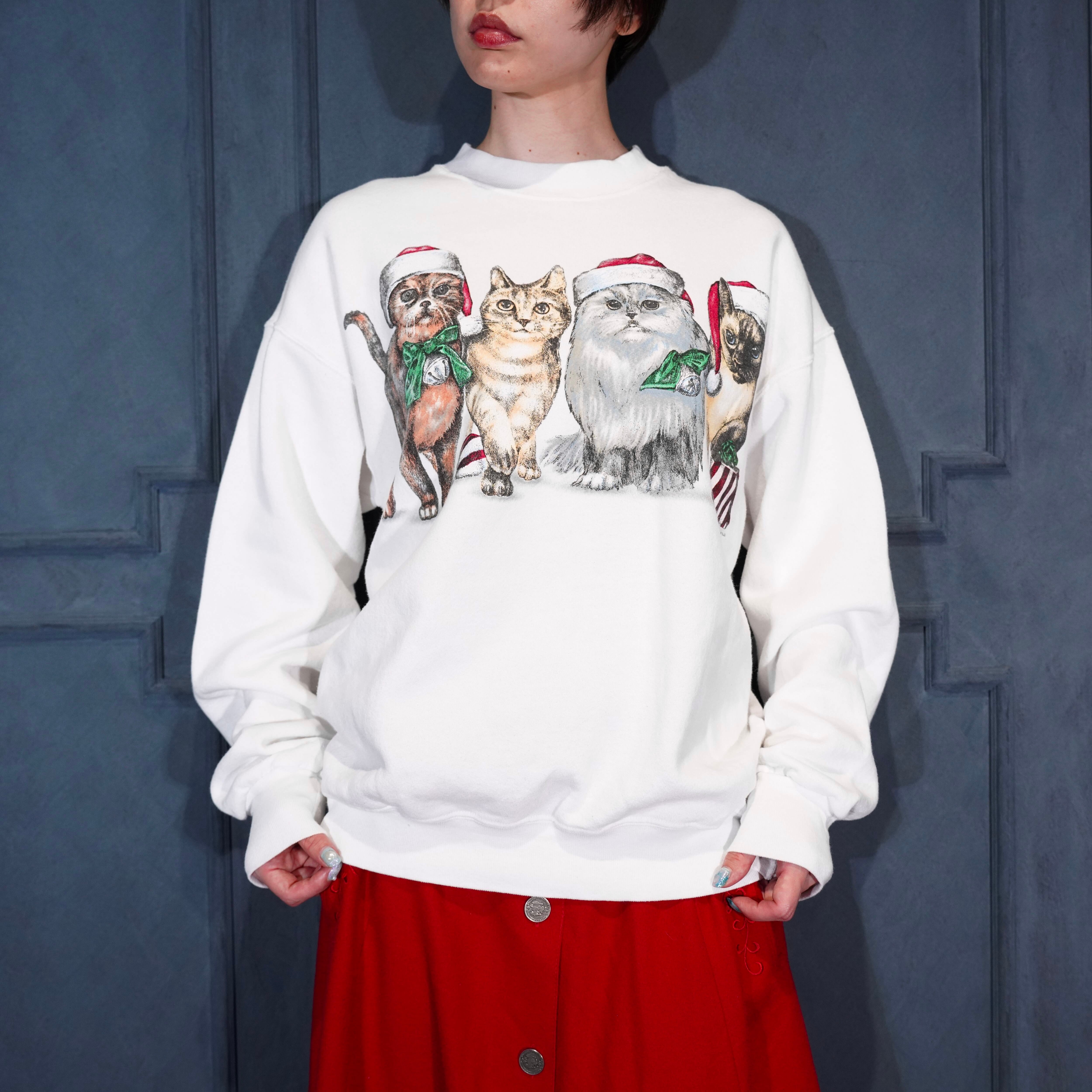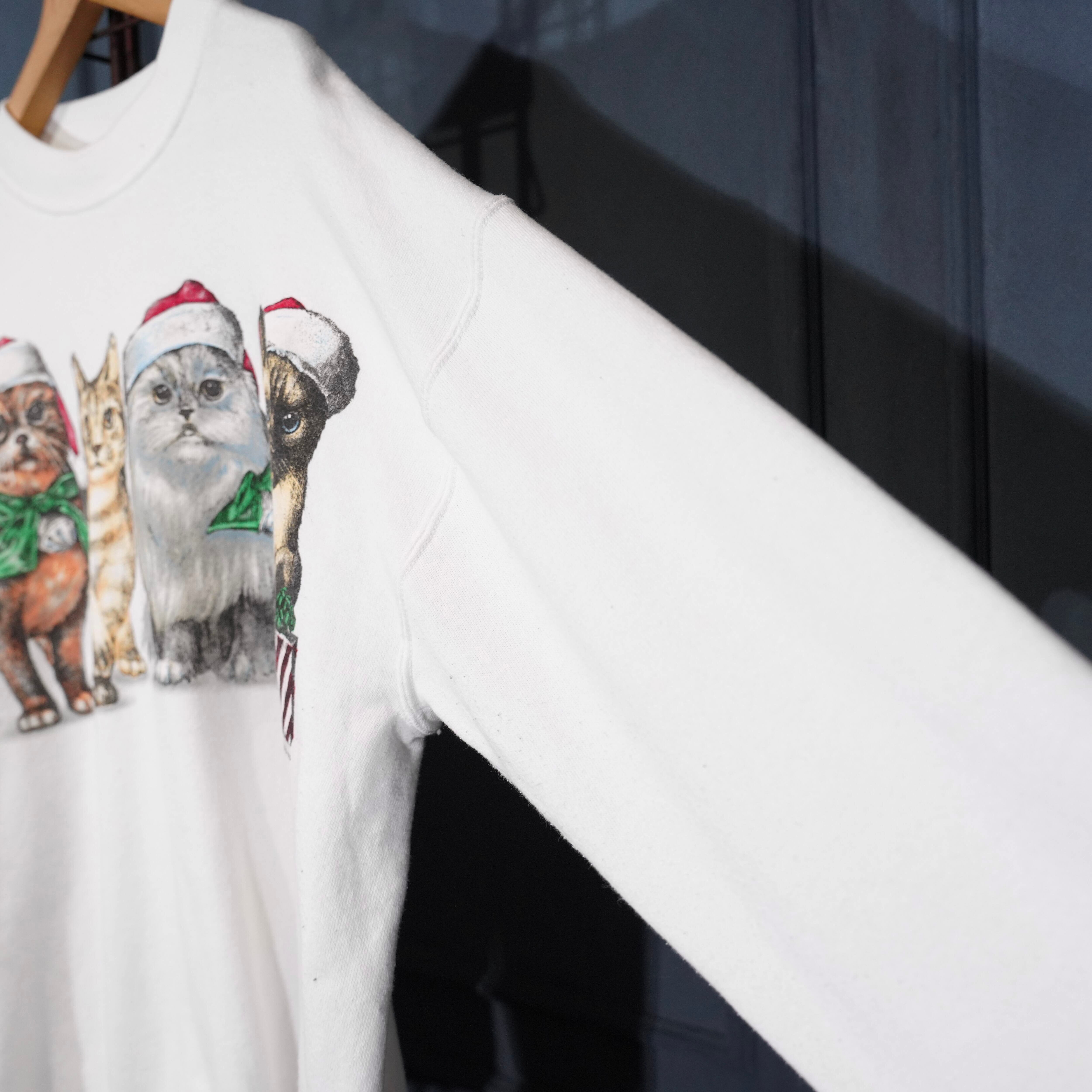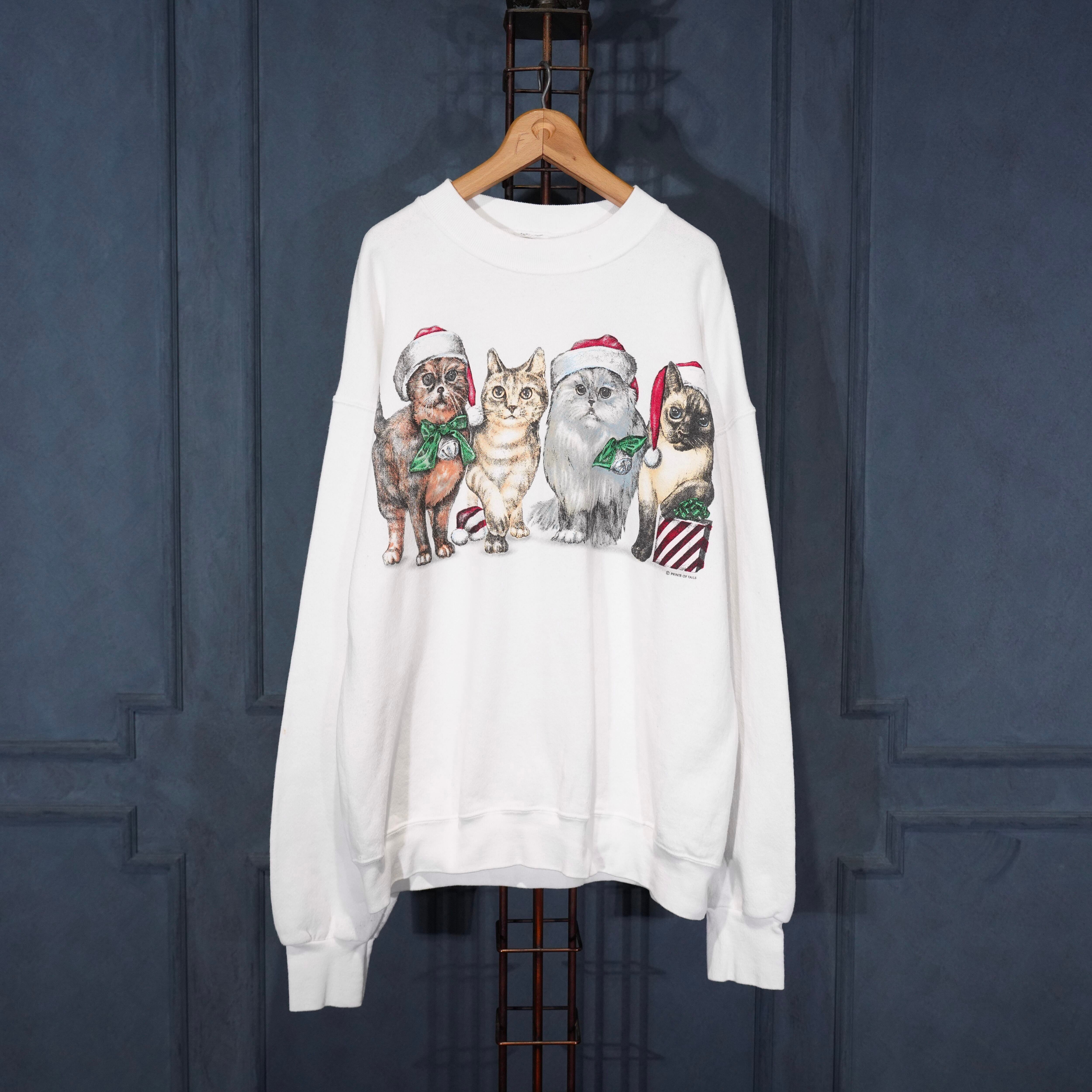 *SPECIAL ITEM* 90's USA VINTAGE FRUIT OF THE LOOM BEST XMAS CAT DOUBLE SIDED PRINT DESIGN SWEAT SHIRT/90年代アメリカ古着クリスマスにゃんこ両面プリントデザインスウェット