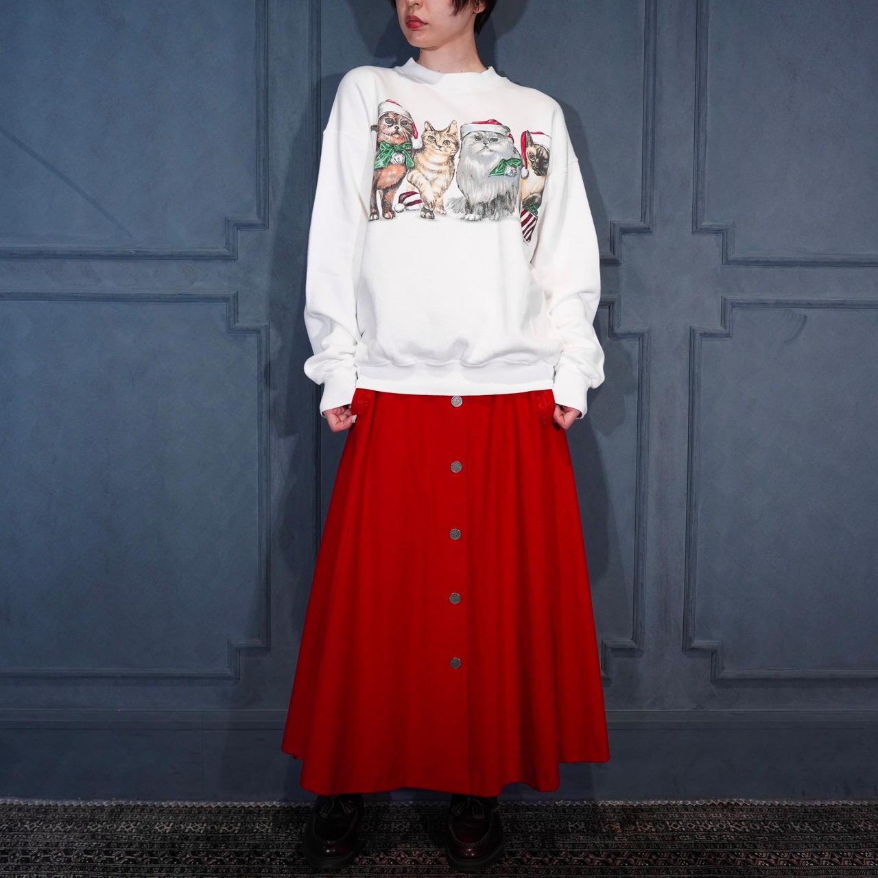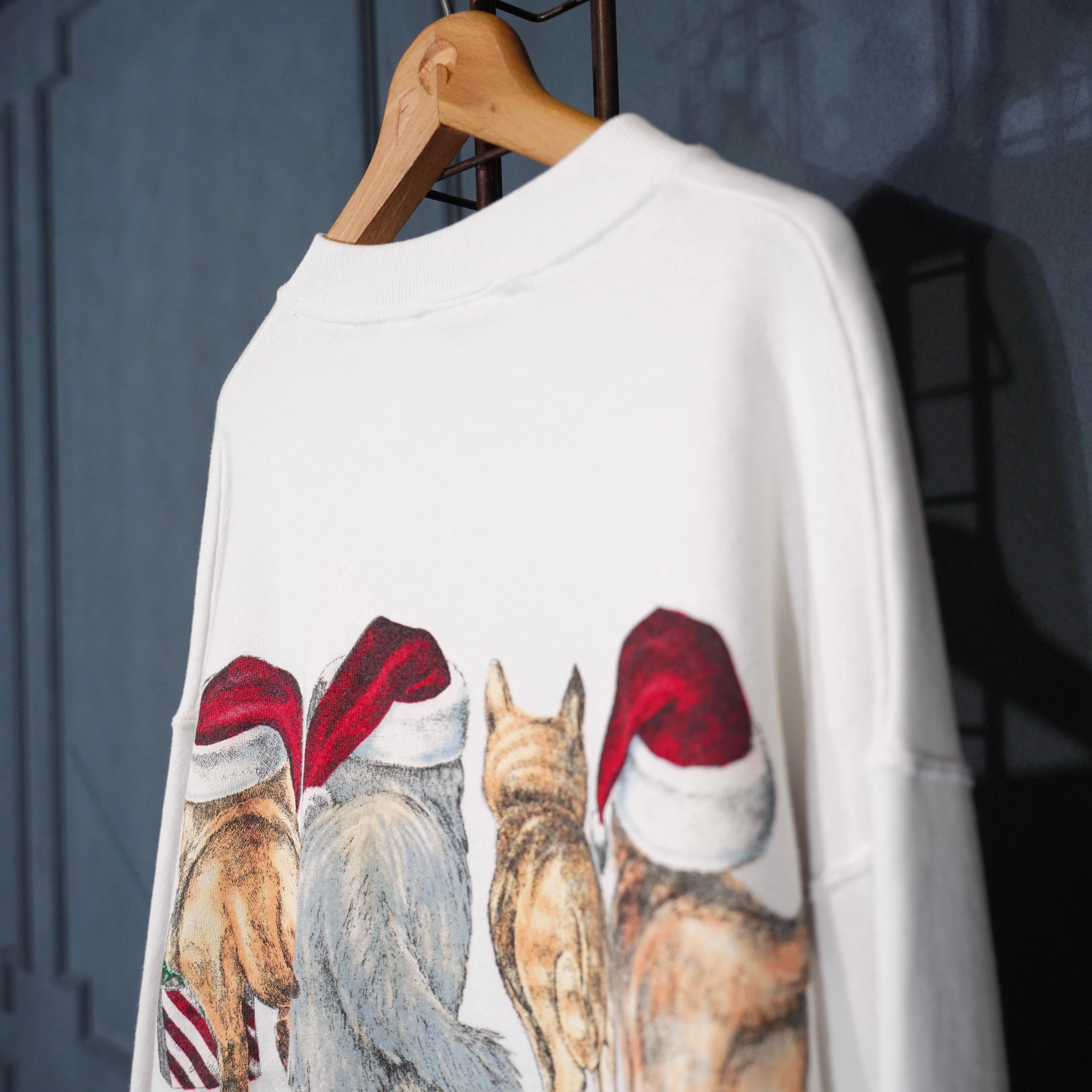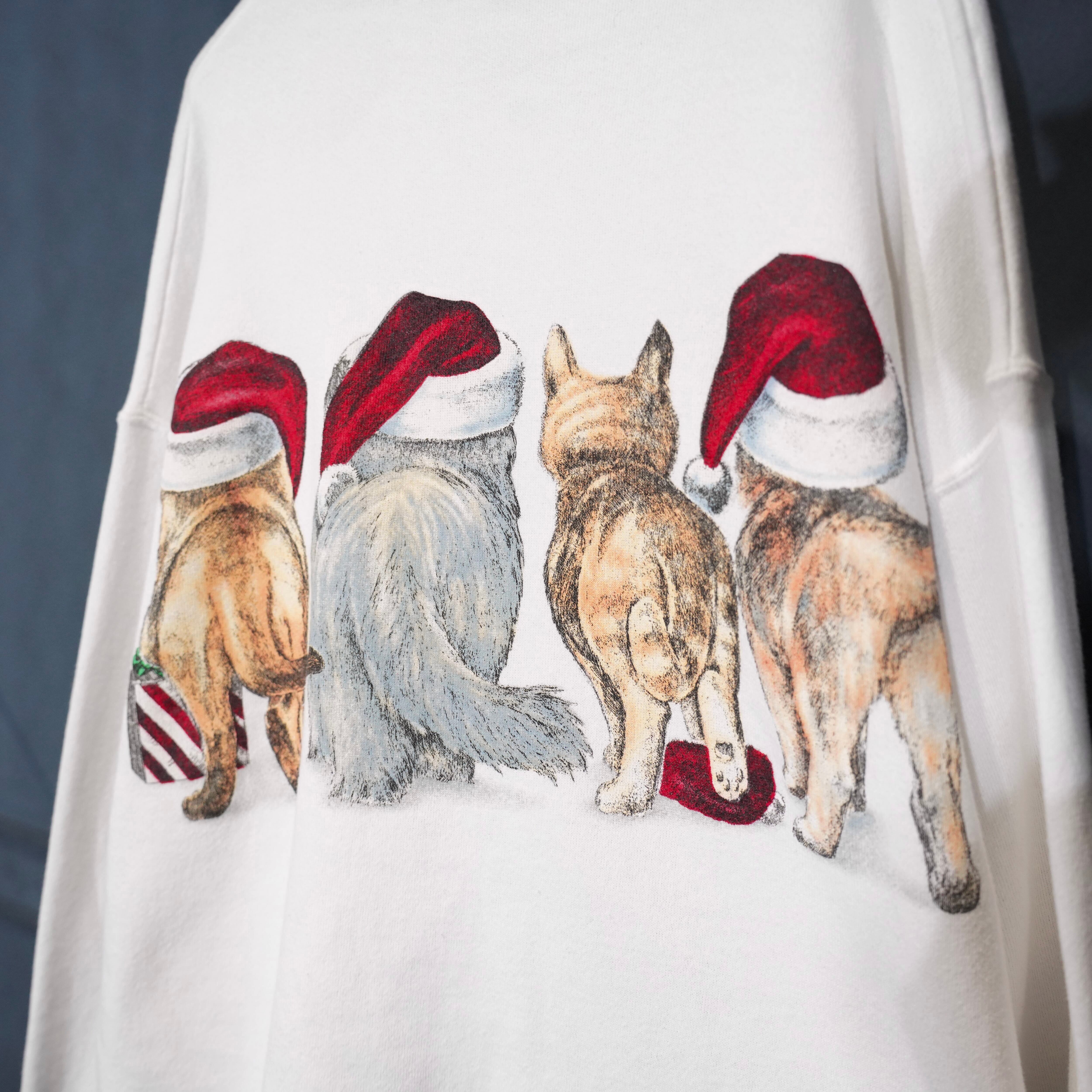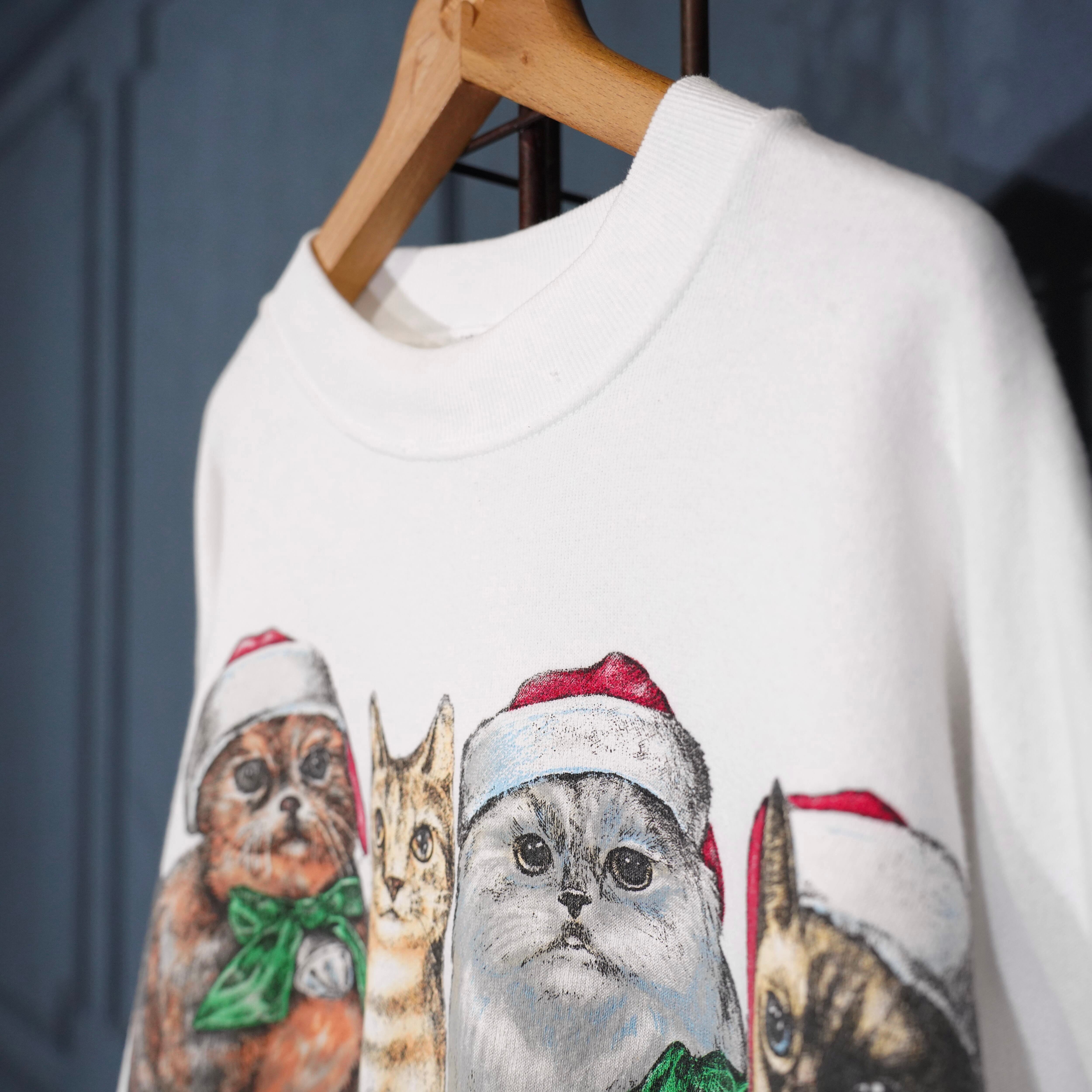 *SPECIAL ITEM* 90's USA VINTAGE FRUIT OF THE LOOM BEST XMAS CAT DOUBLE SIDED PRINT DESIGN SWEAT SHIRT/90年代アメリカ古着クリスマスにゃんこ両面プリントデザインスウェット