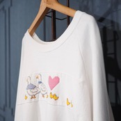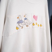 90's USA VINTAGE FRUIT OF THE LOOM DUCK EMBROIDERY CROSS STITCH DESIGN SWEAT SHIRT/90年代アメリカ古着あひるクロスステッチ刺繍デザインスウェット