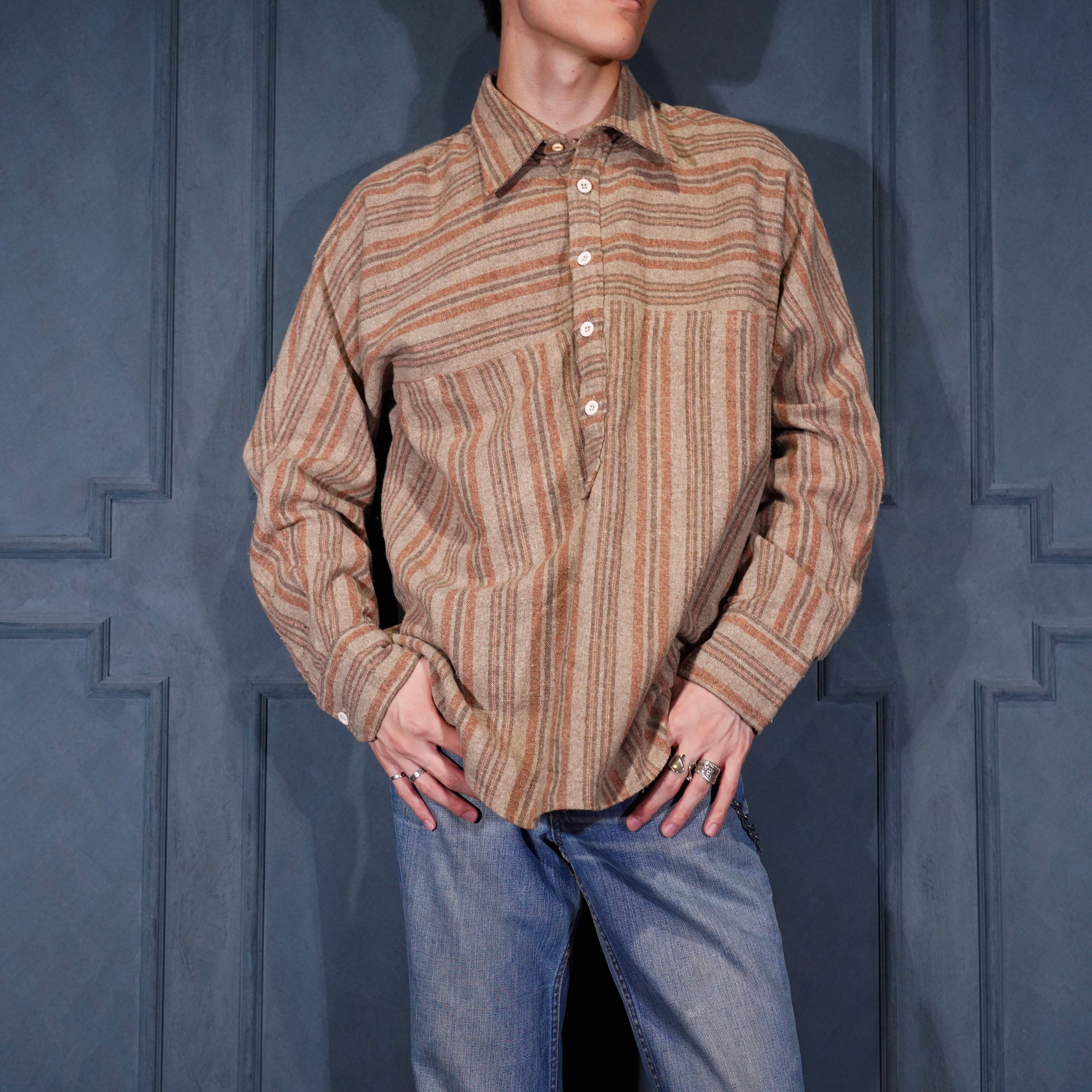 70’s〜80’s USA VINTAGE Wrangler STRIPE BORDER PATTERNED PULL OVER SHIRT/70年代〜80年代アメリカ古着ラングラーストライプポーダー柄プルオーバーシャツ