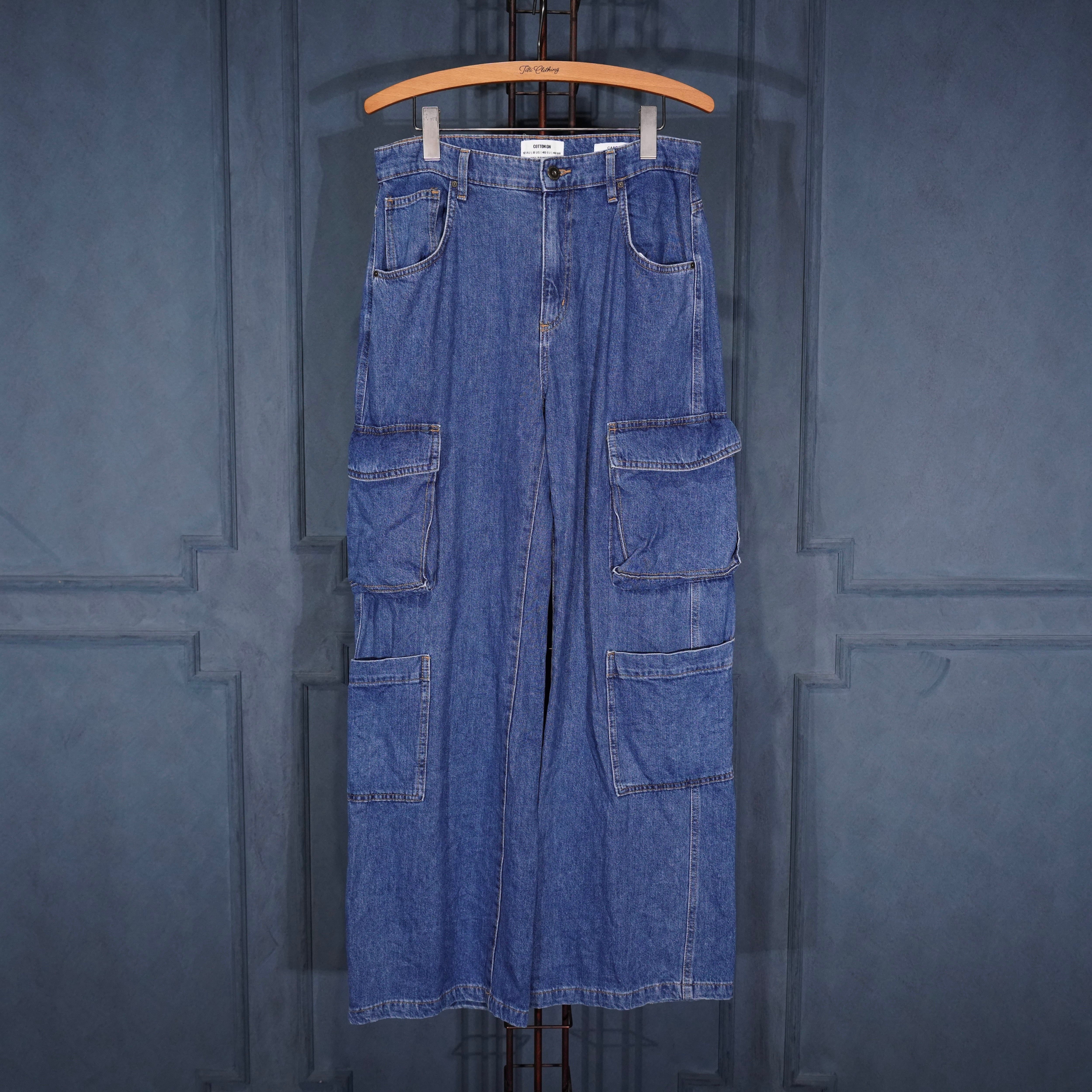 USA VINTAGE POCKET DESIGN WIDE DENIM CARGO PANTS/アメリカ古着ポケットデザインワイドデニムカーゴパンツ
